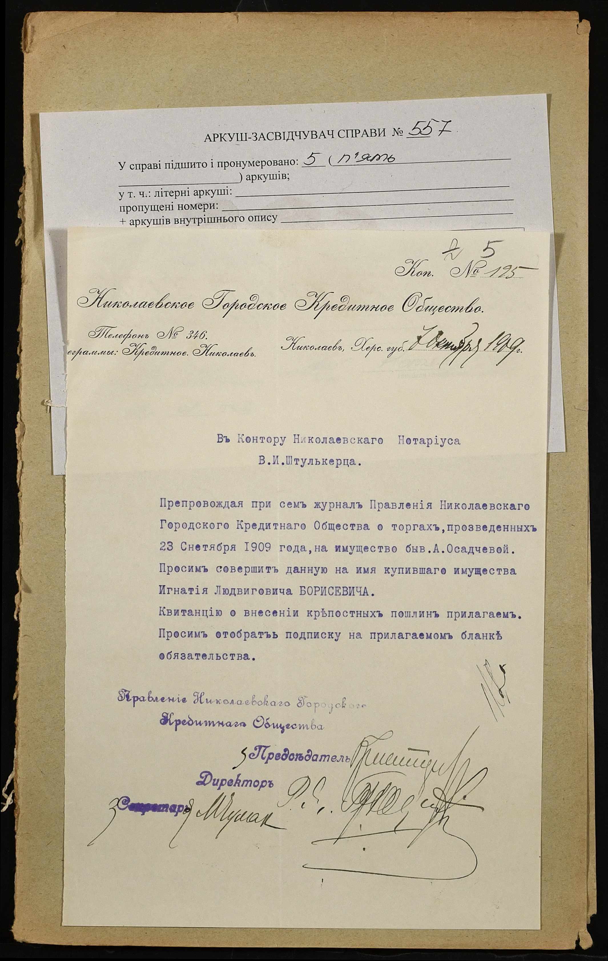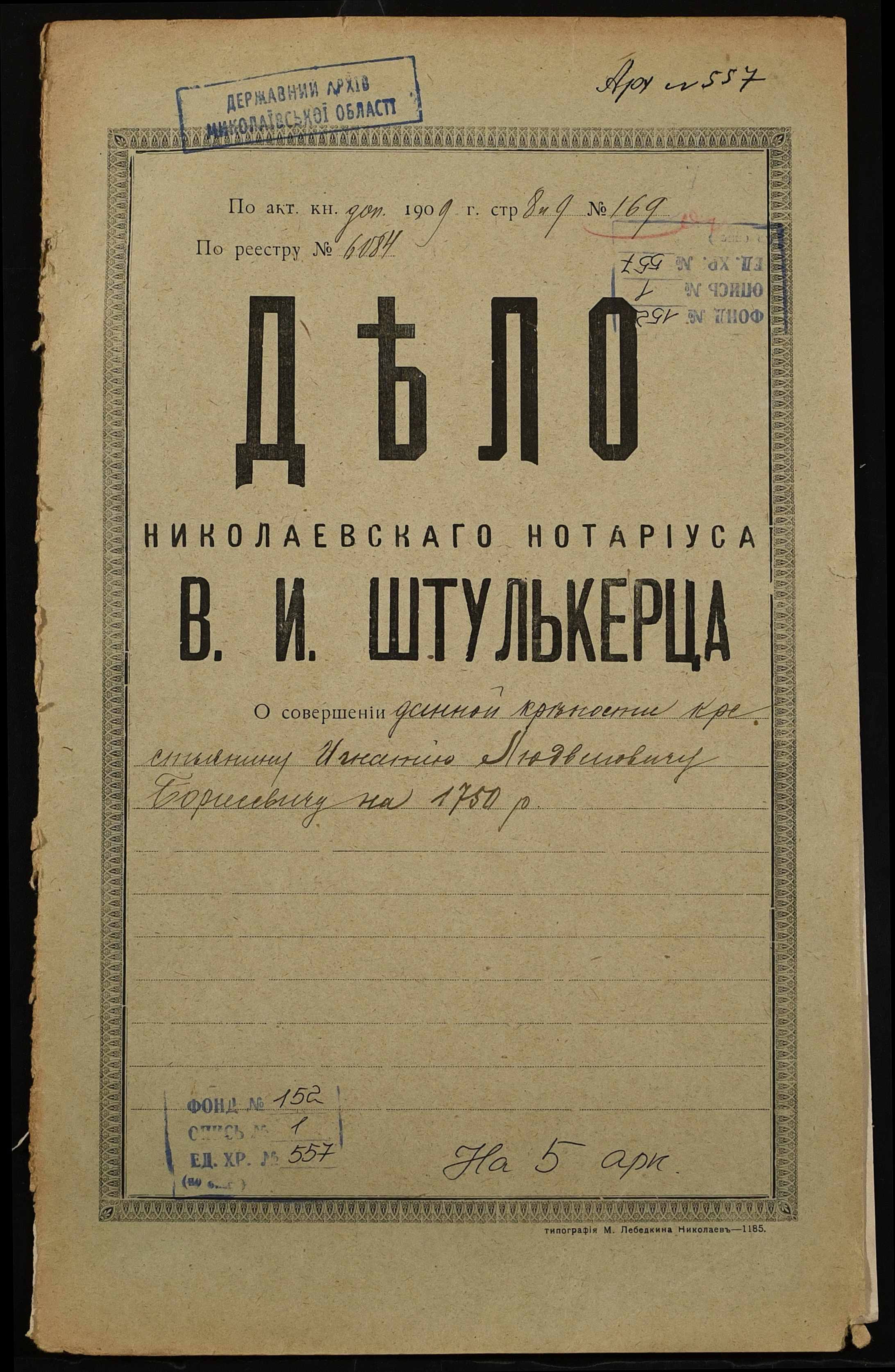 Фонд 152 / Опис 1 / Справа 0557