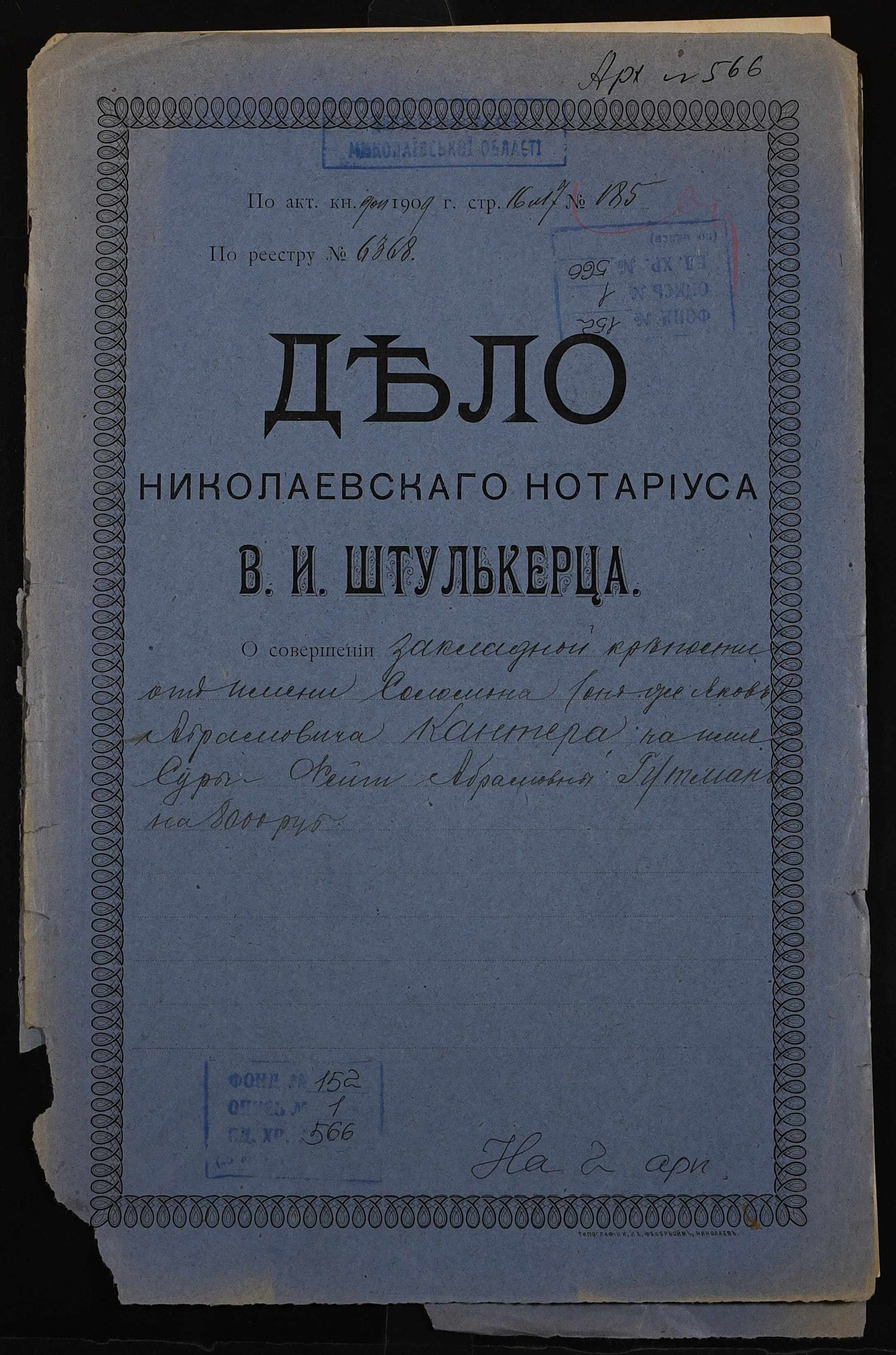Фонд 152 / Опис 1 / Справа 0566