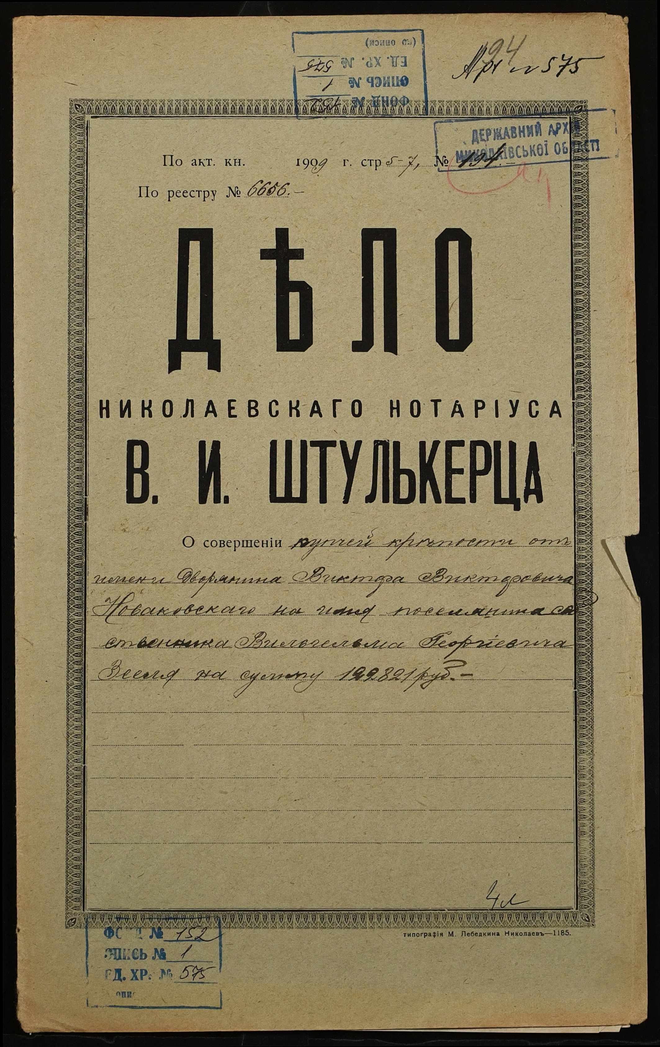 Фонд 152 / Опис 1 / Справа 0575