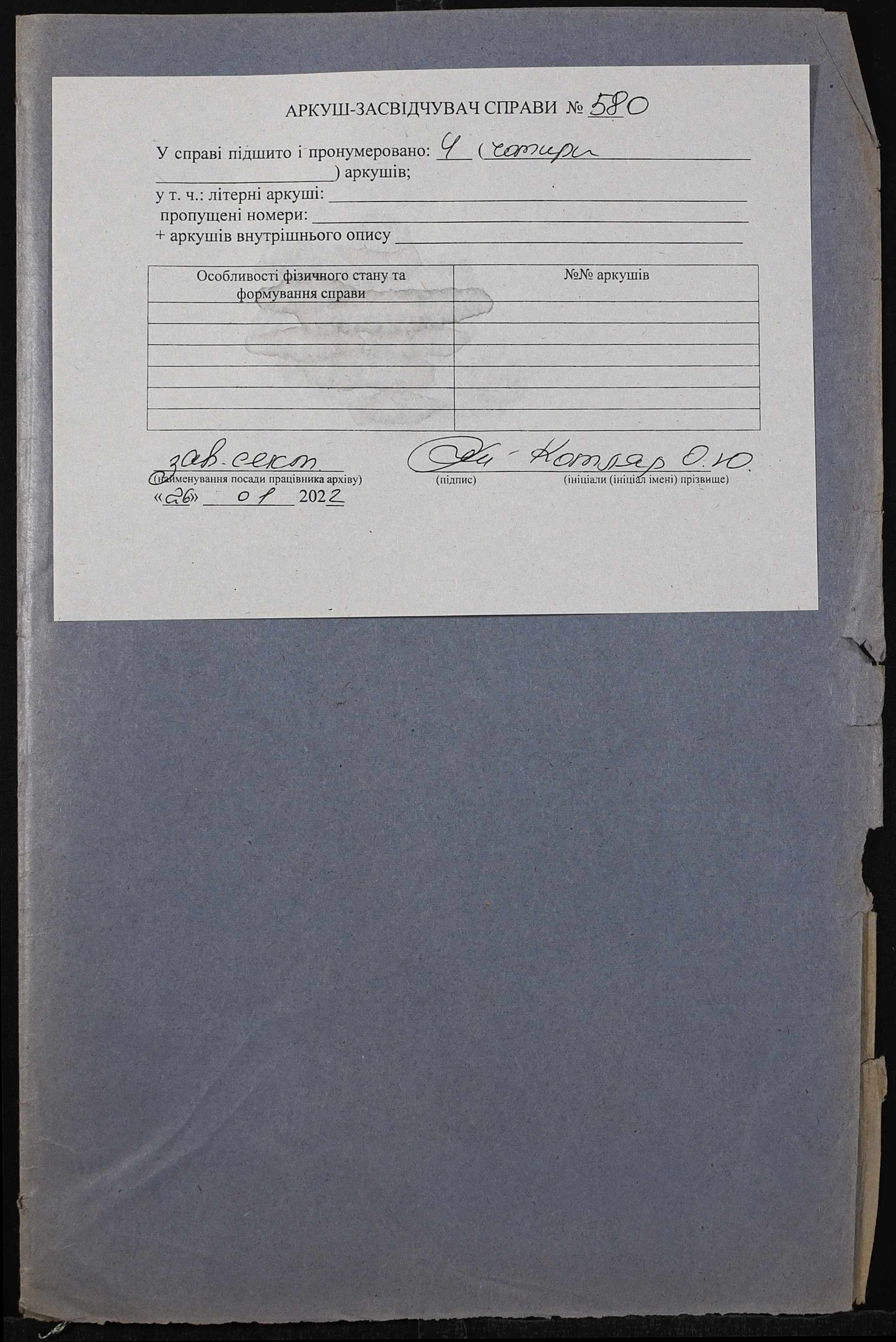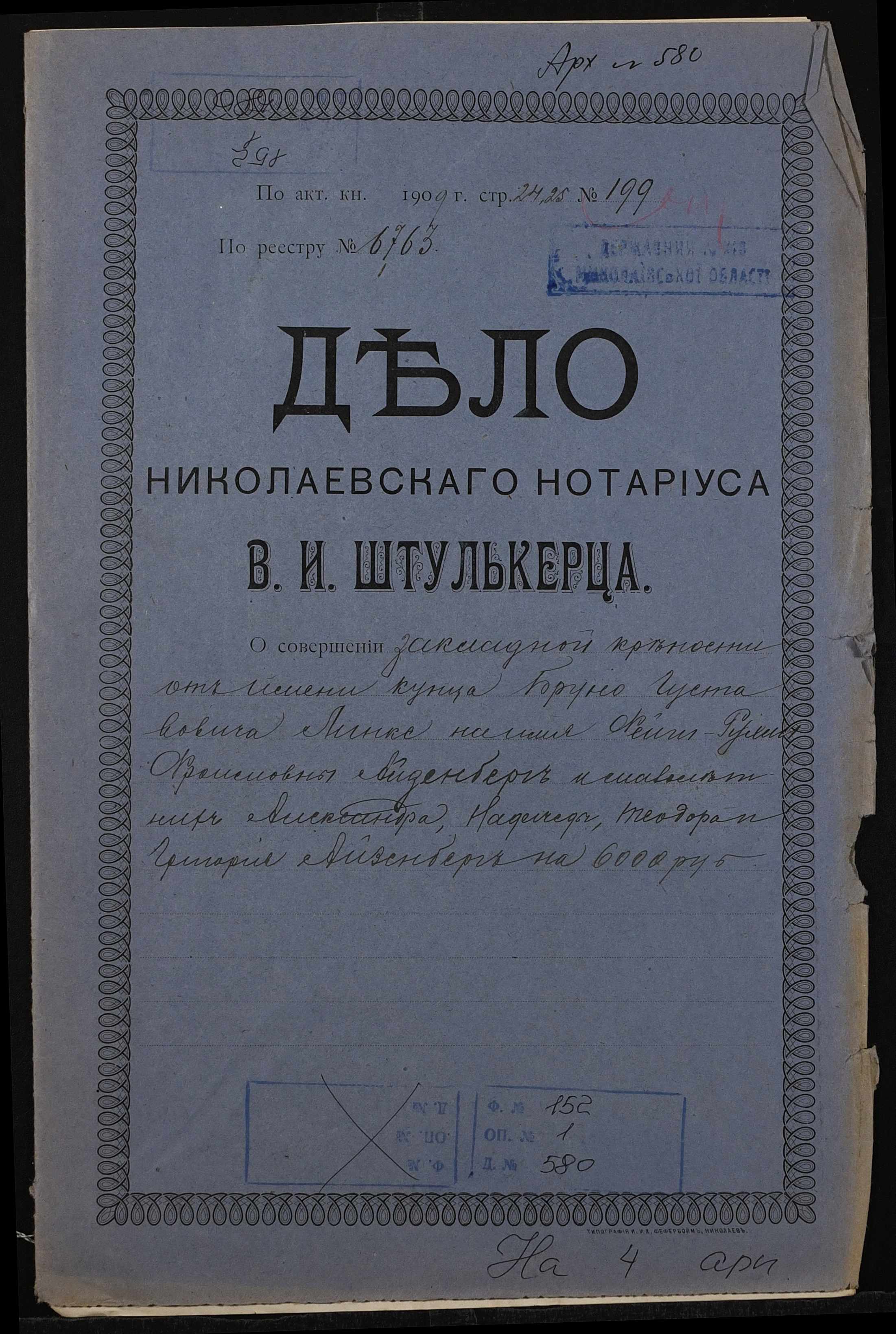 Фонд 152 / Опис 1 / Справа 0580