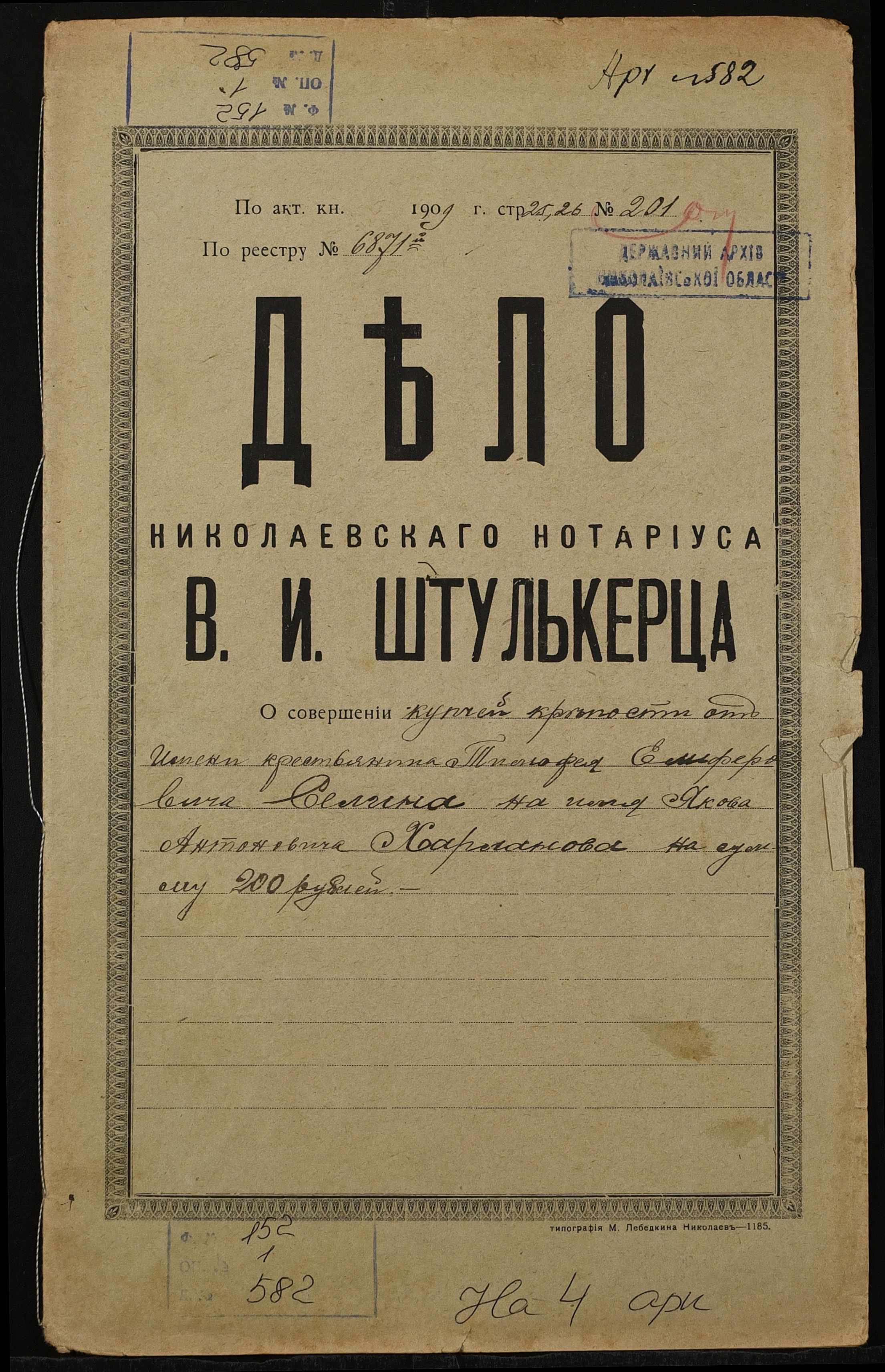Фонд 152 / Опис 1 / Справа 0582