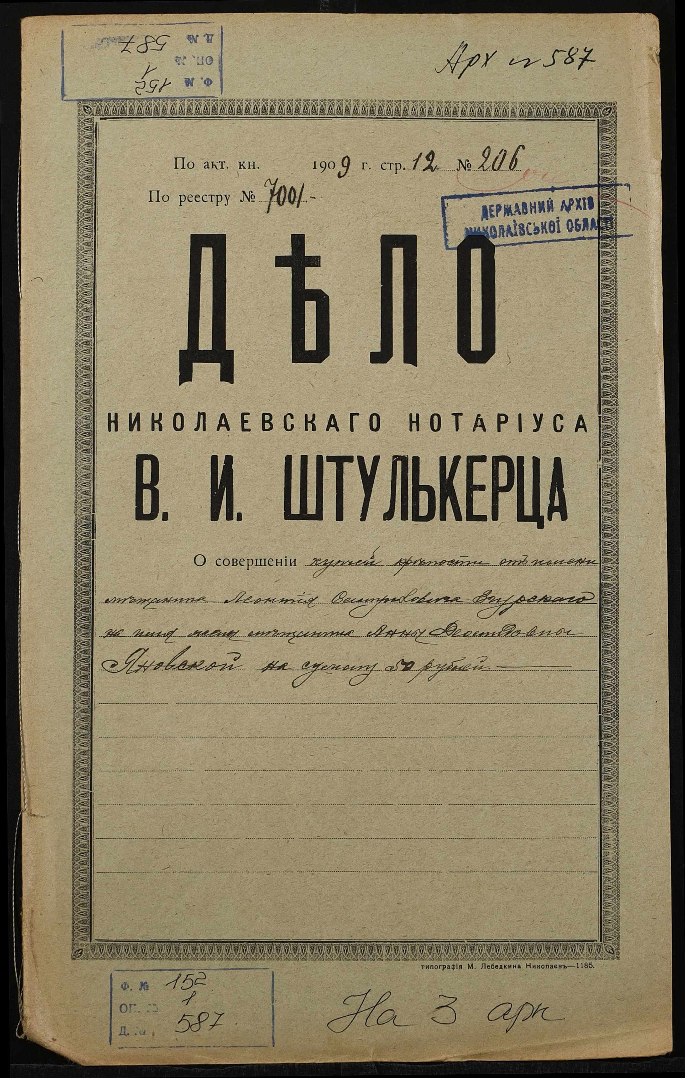 Фонд 152 / Опис 1 / Справа 0587
