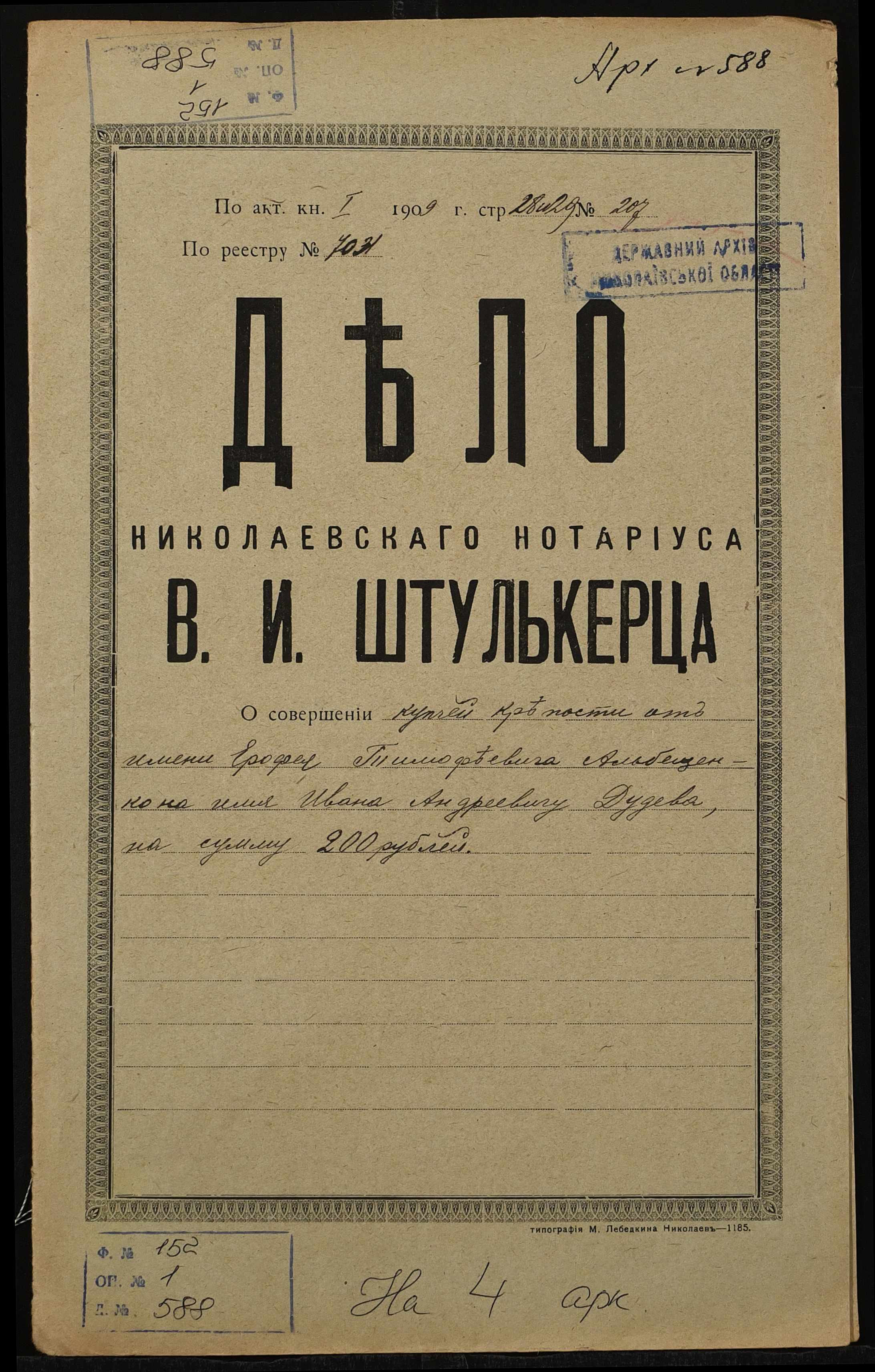 Фонд 152 / Опис 1 / Справа 0588