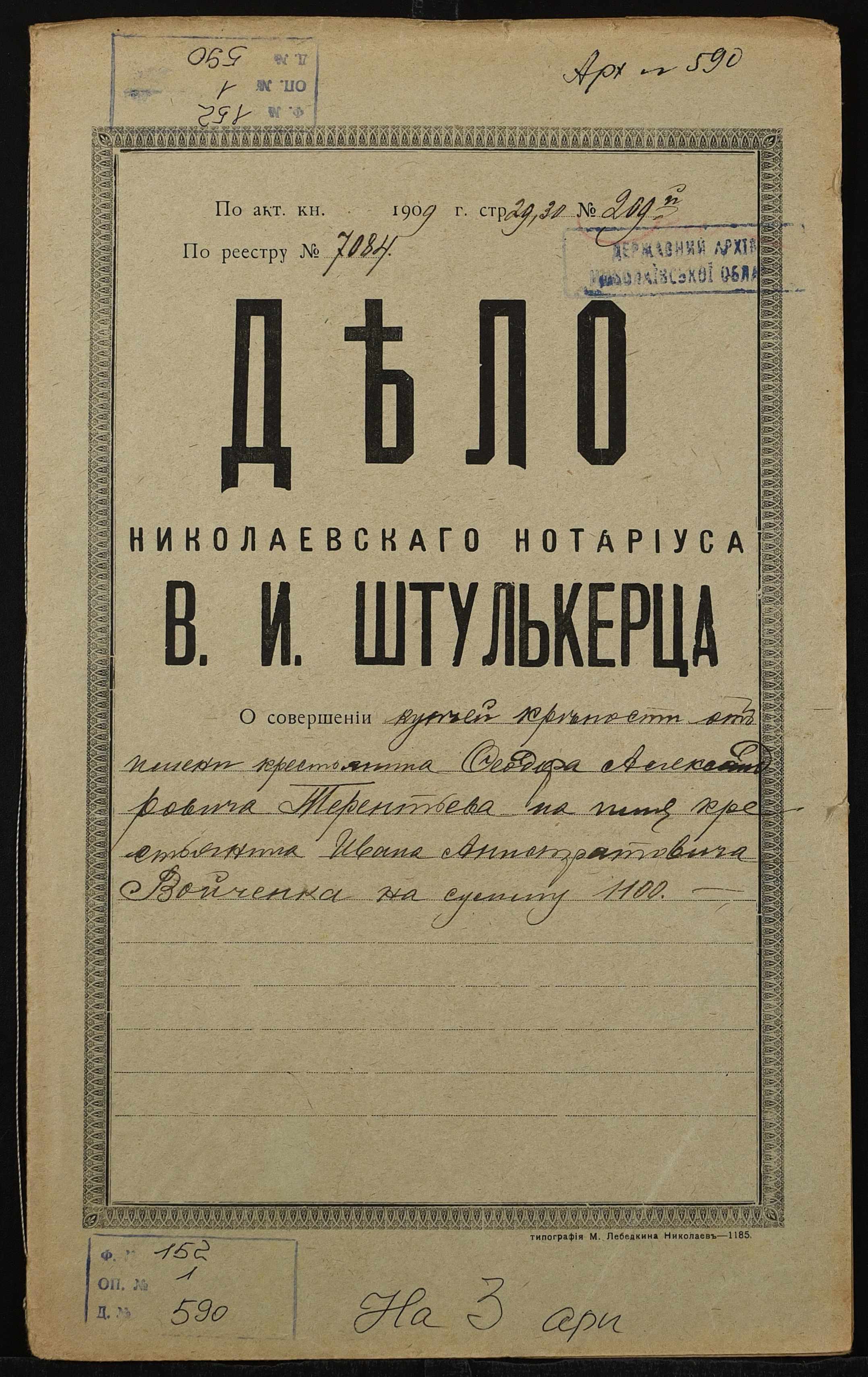 Фонд 152 / Опис 1 / Справа 0590