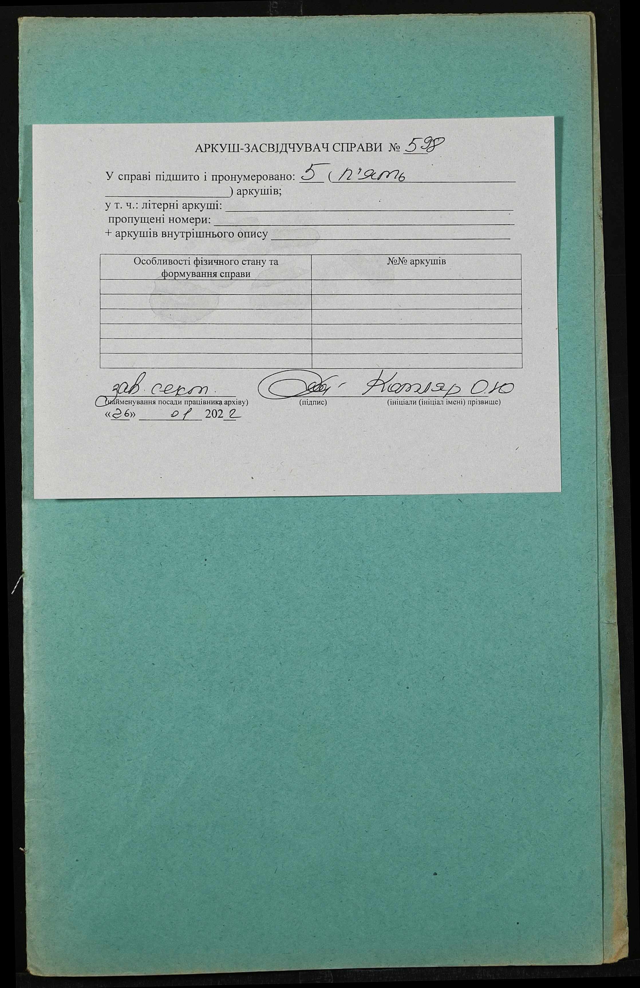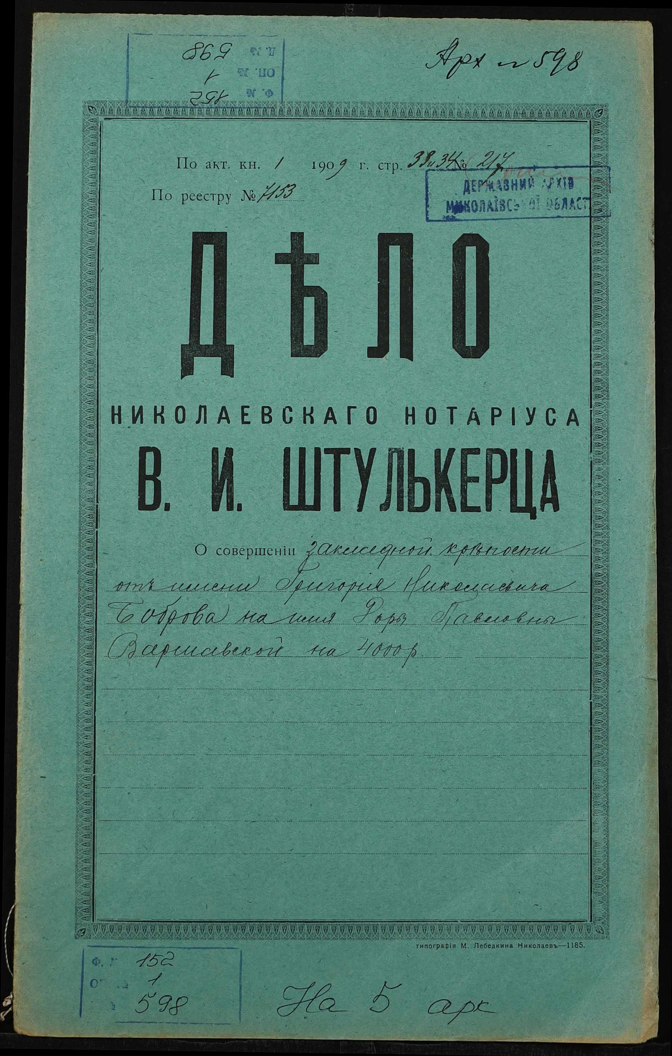 Фонд 152 / Опис 1 / Справа 0598