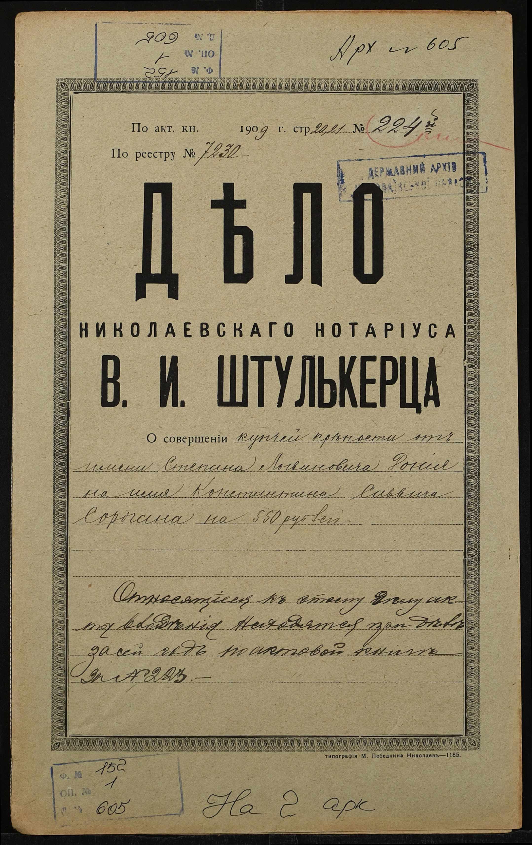 Фонд 152 / Опис 1 / Справа 0605