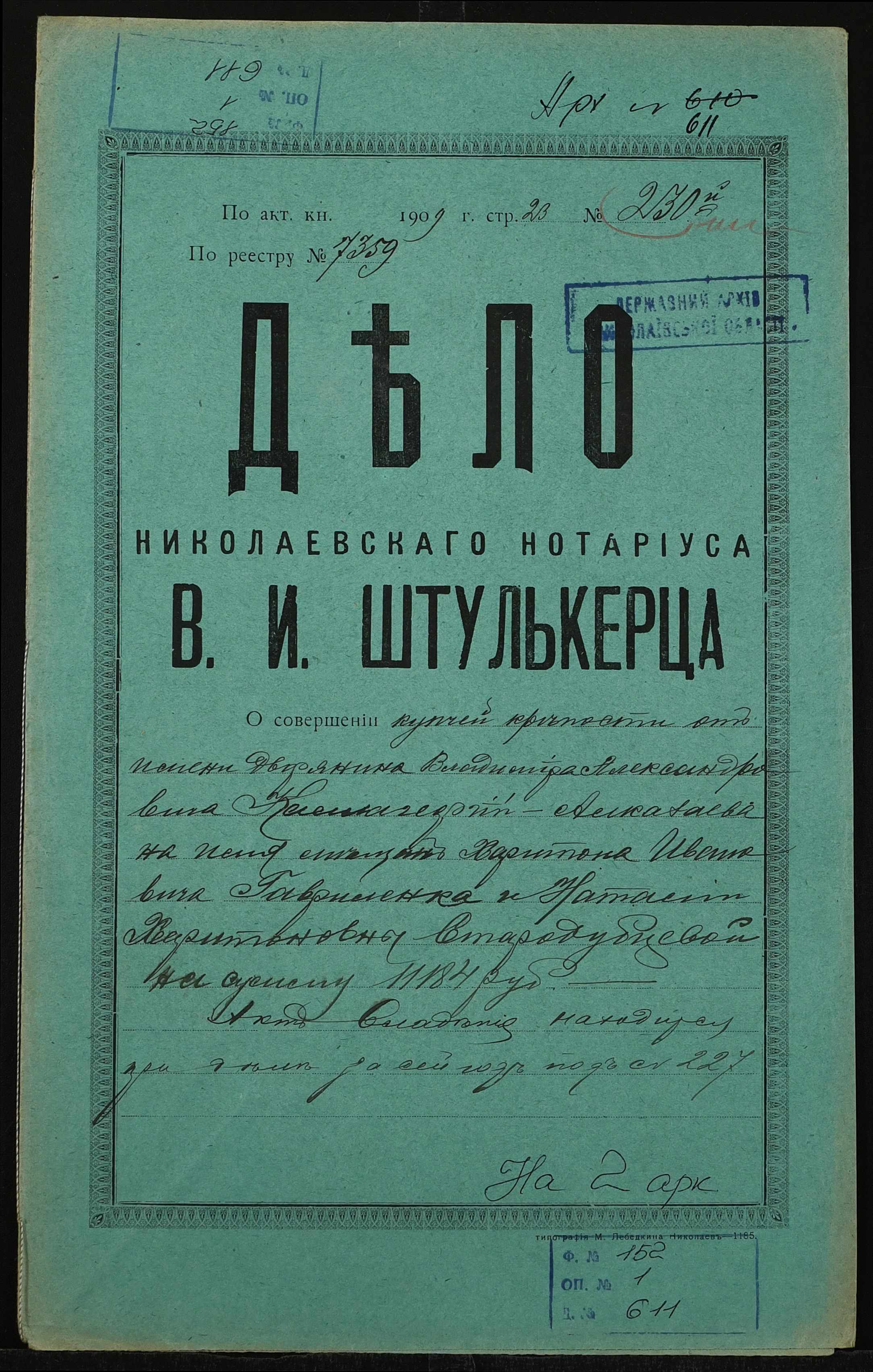Фонд 152 / Опис 1 / Справа 0611