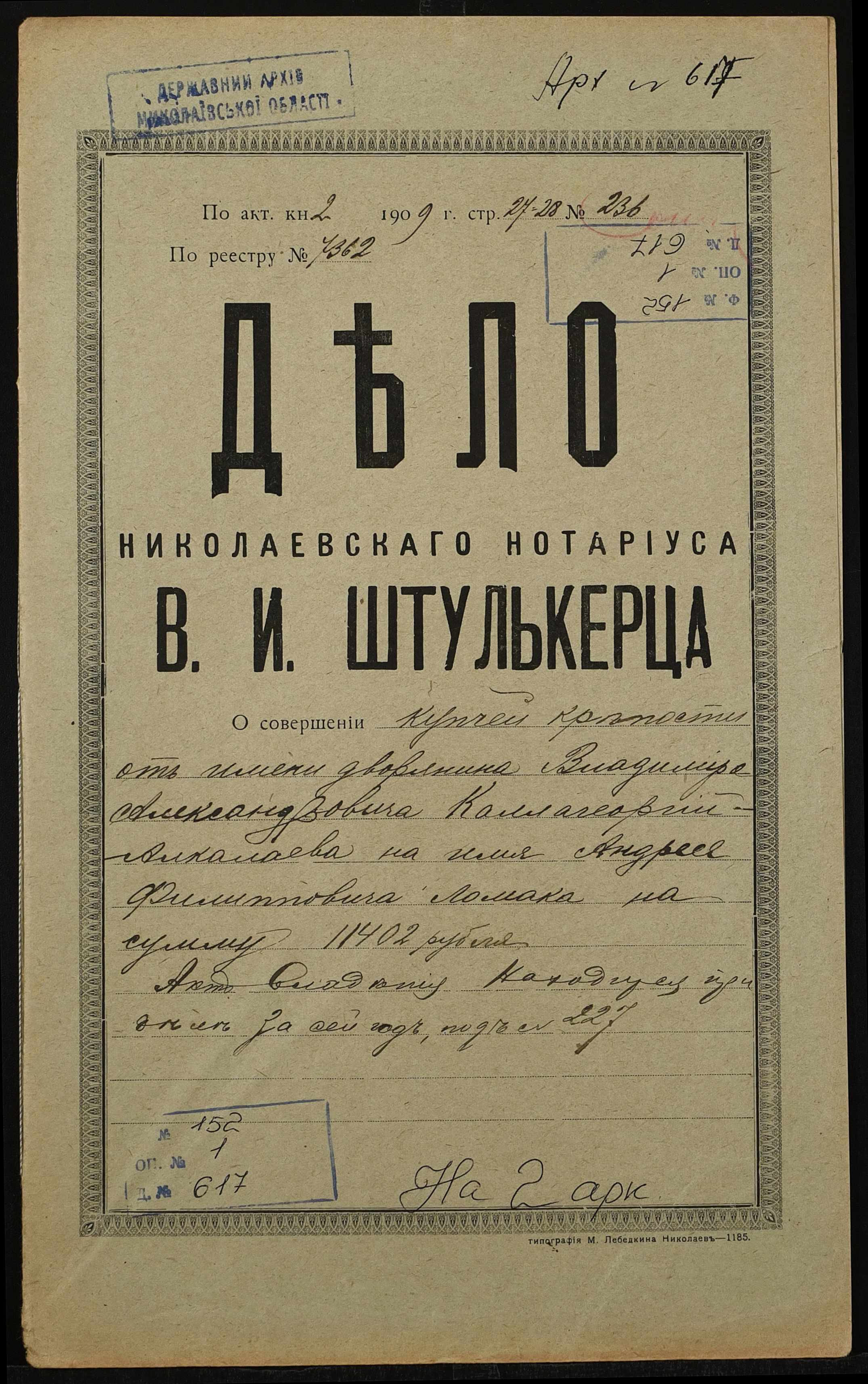 Фонд 152 / Опис 1 / Справа 0617