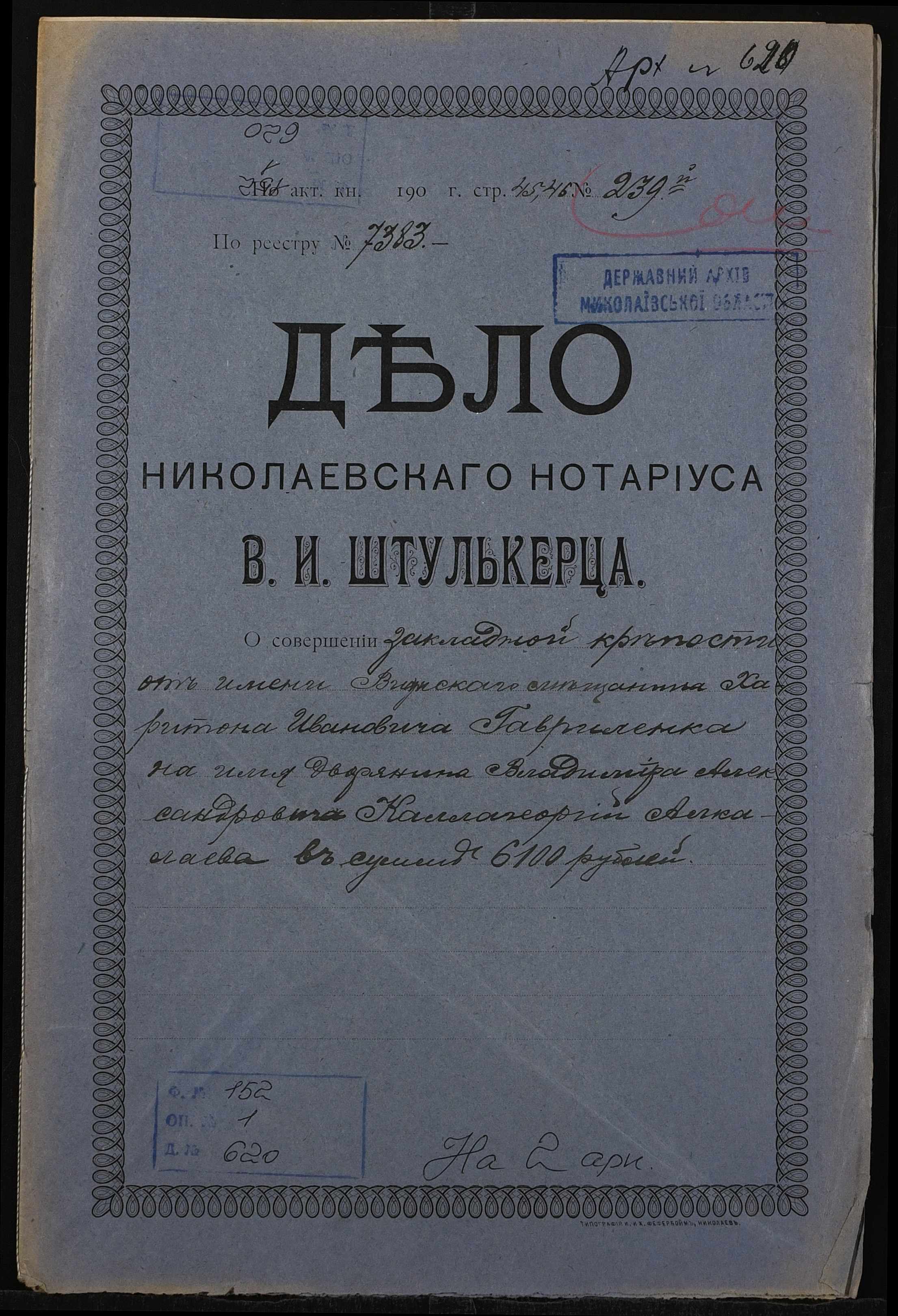 Фонд 152 / Опис 1 / Справа 0620
