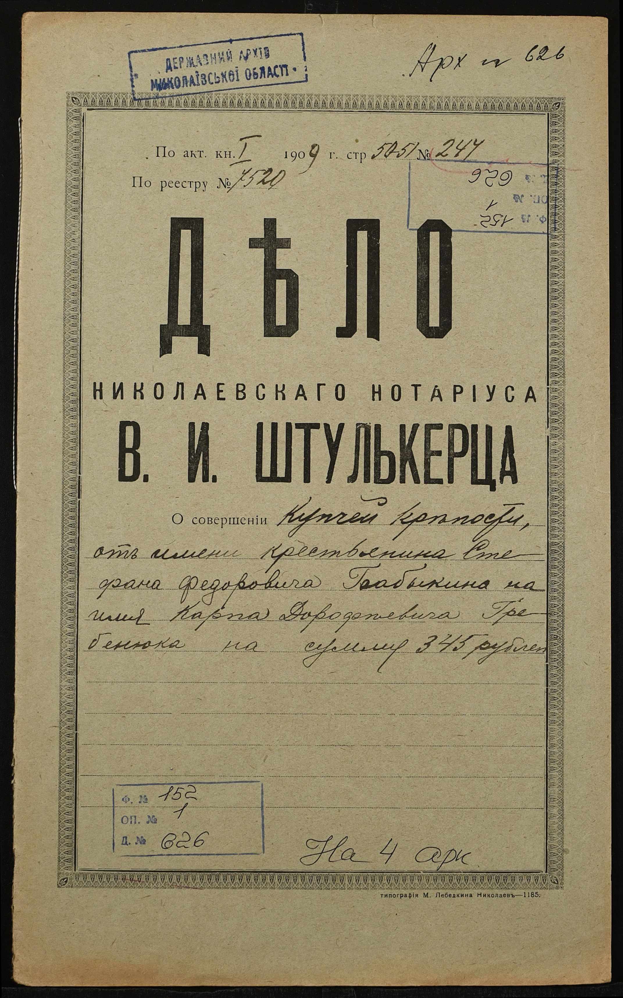 Фонд 152 / Опис 1 / Справа 0626