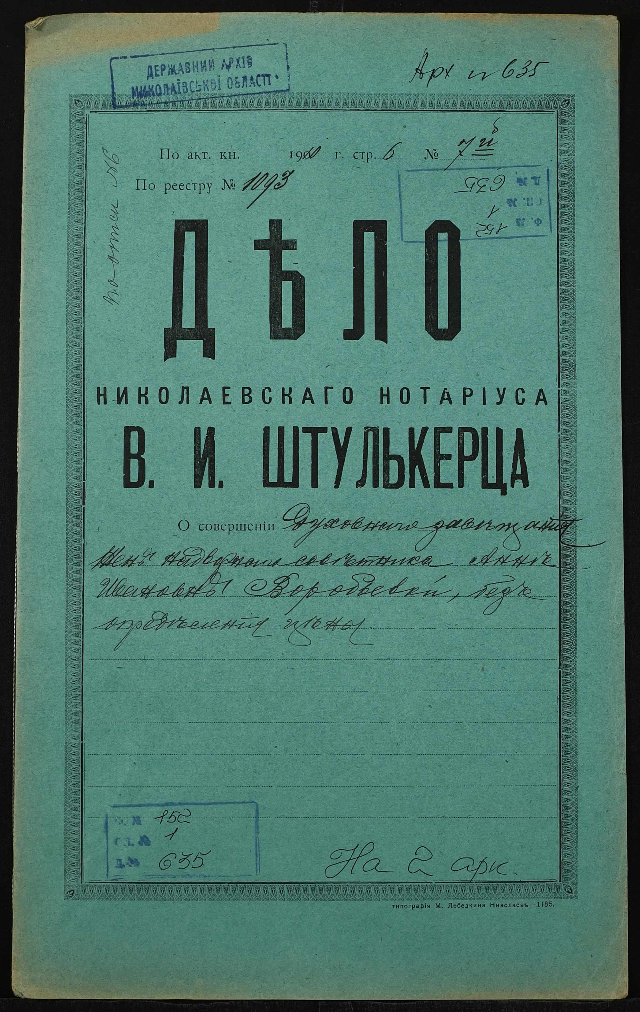 Фонд 152 / Опис 1 / Справа 0635