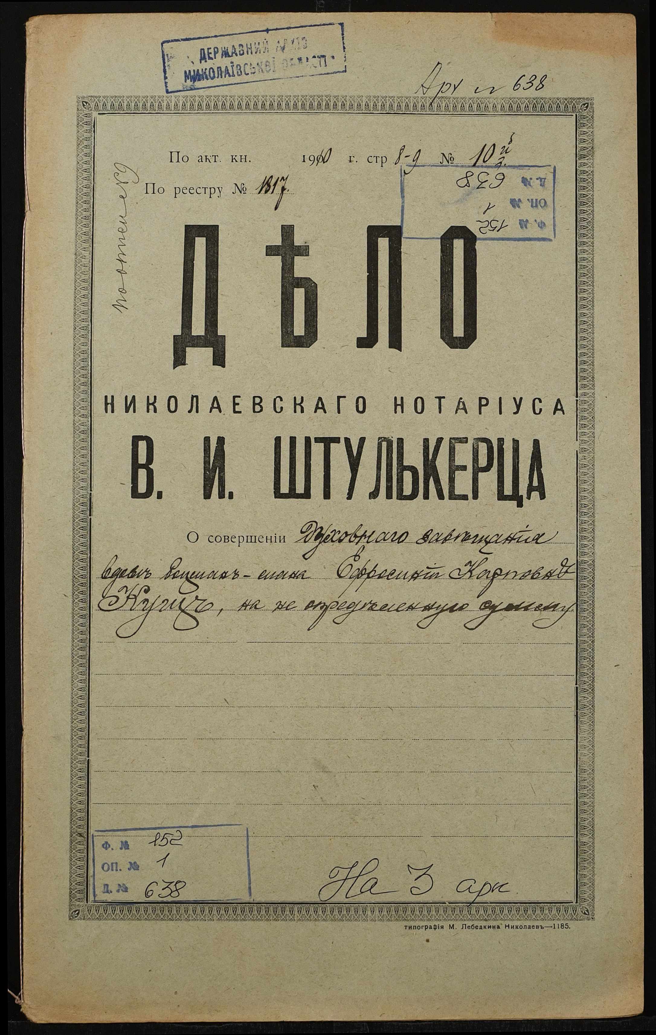 Фонд 152 / Опис 1 / Справа 0638