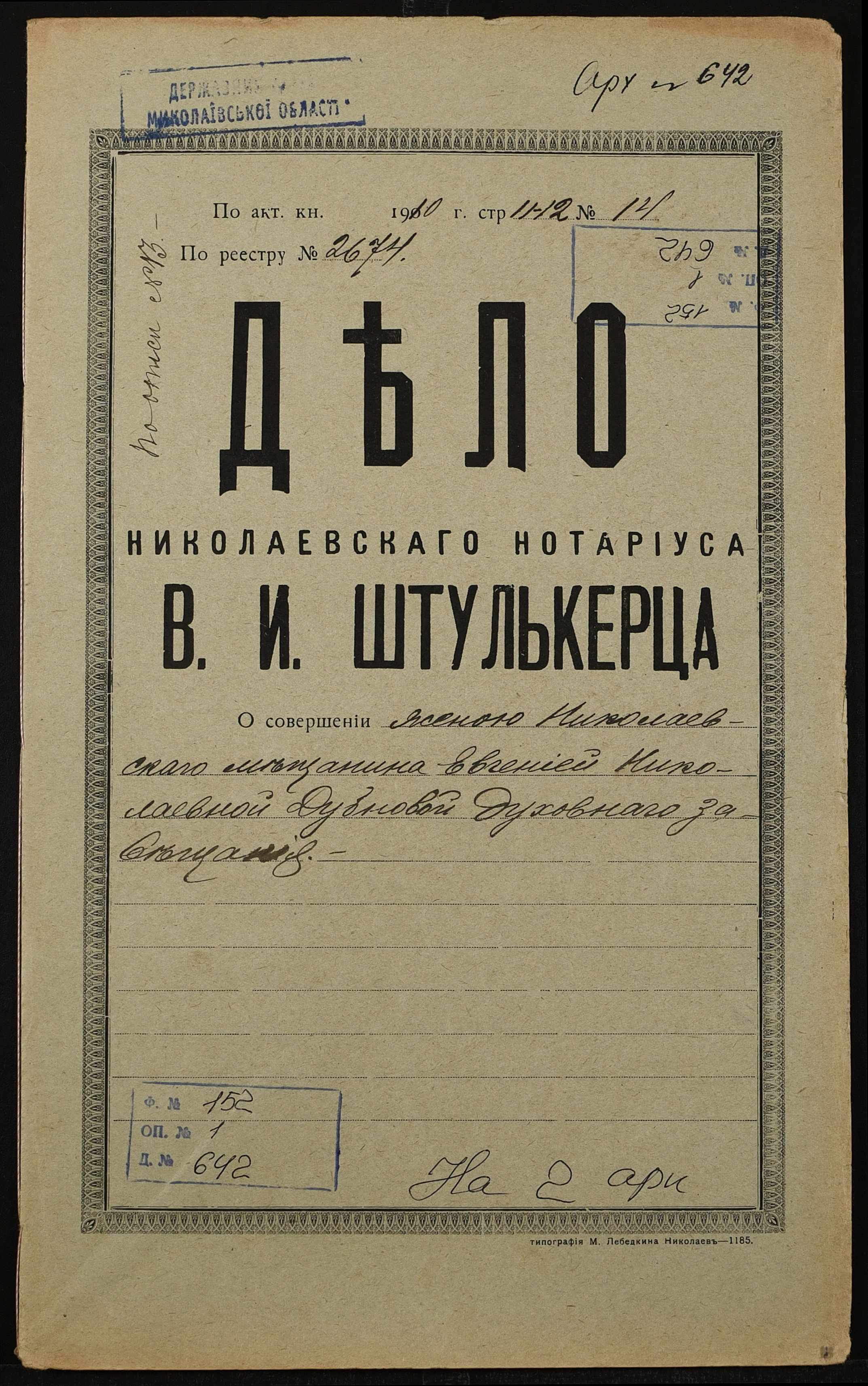 Фонд 152 / Опис 1 / Справа 0642