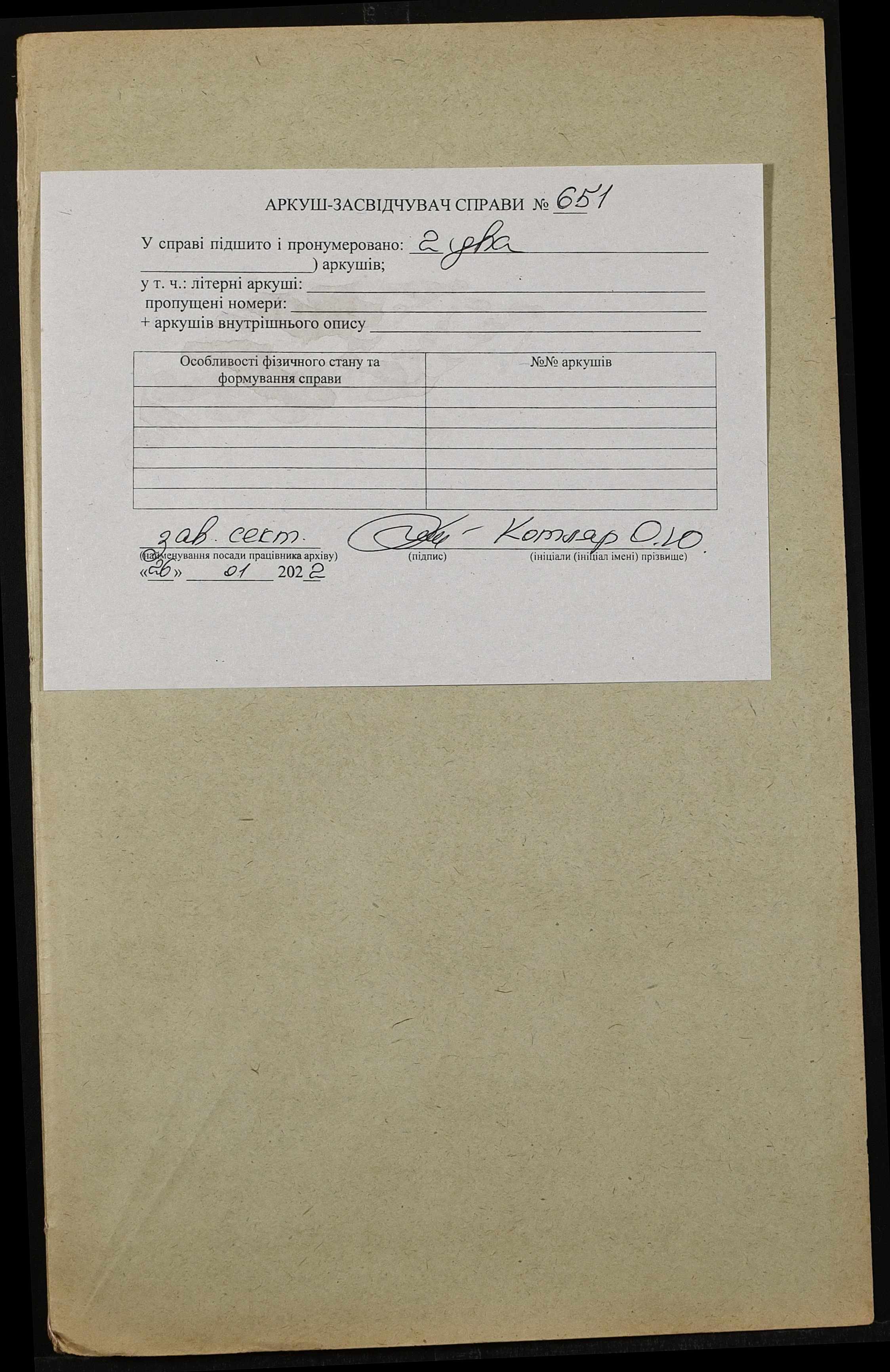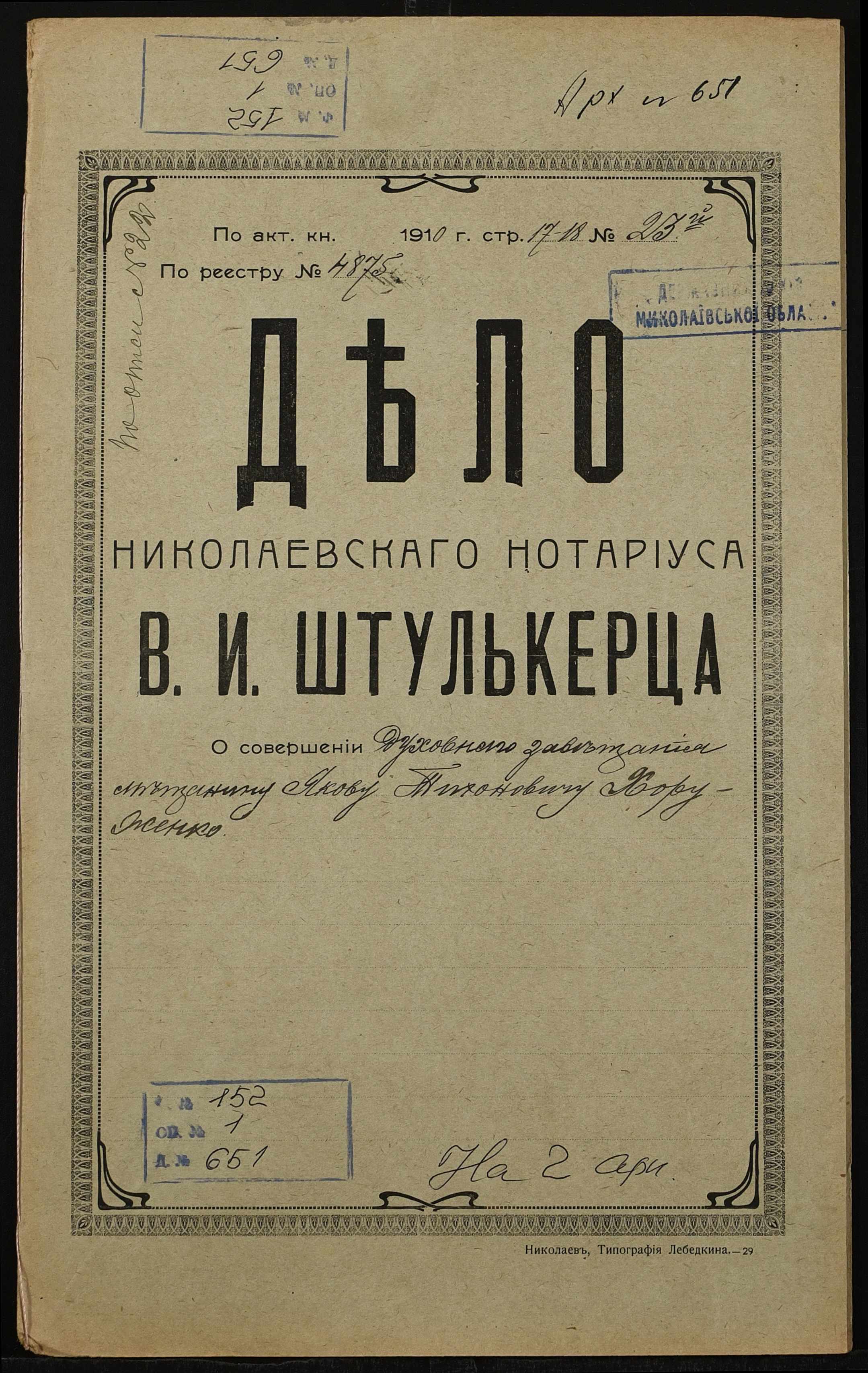Фонд 152 / Опис 1 / Справа 0651