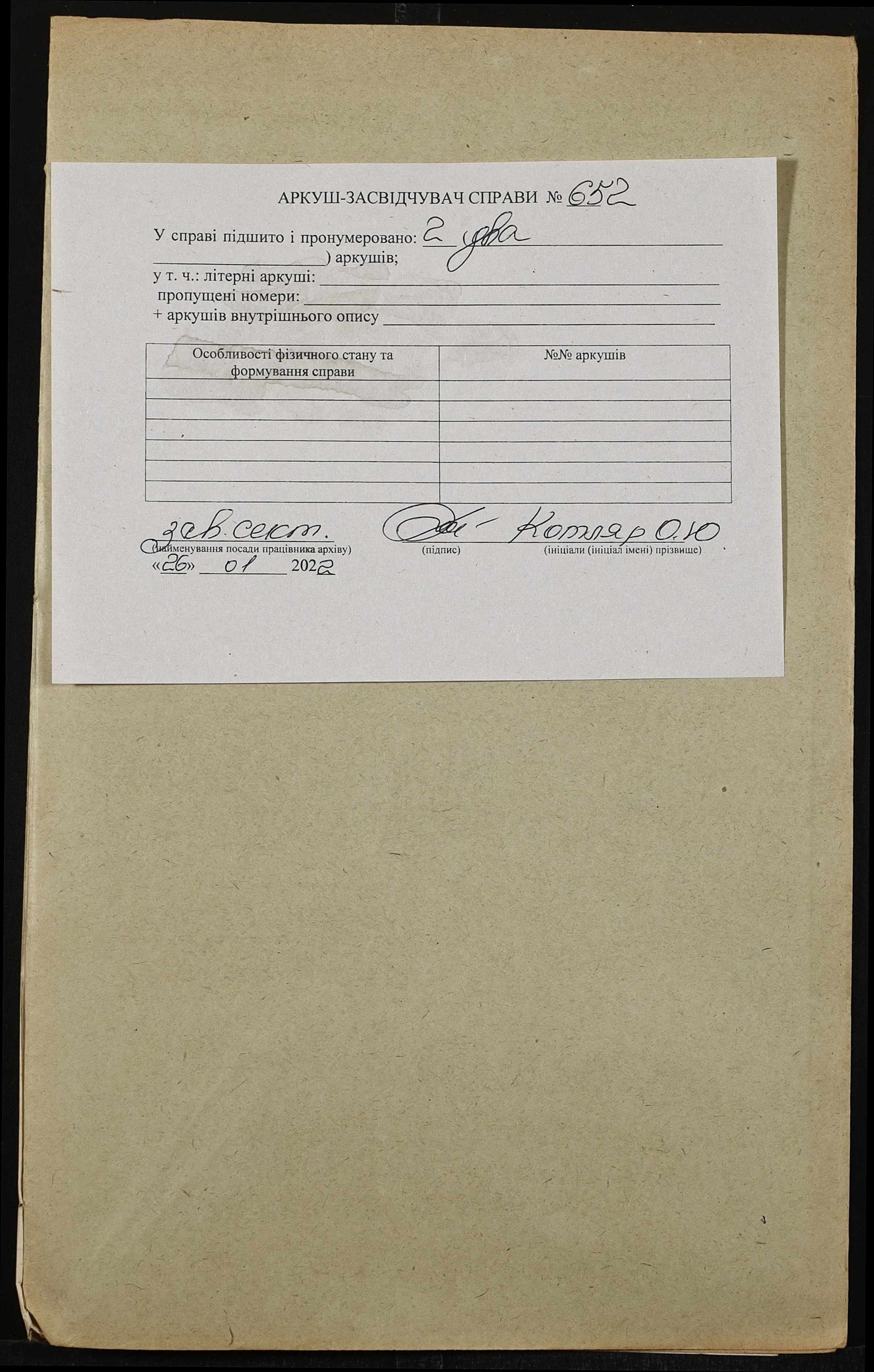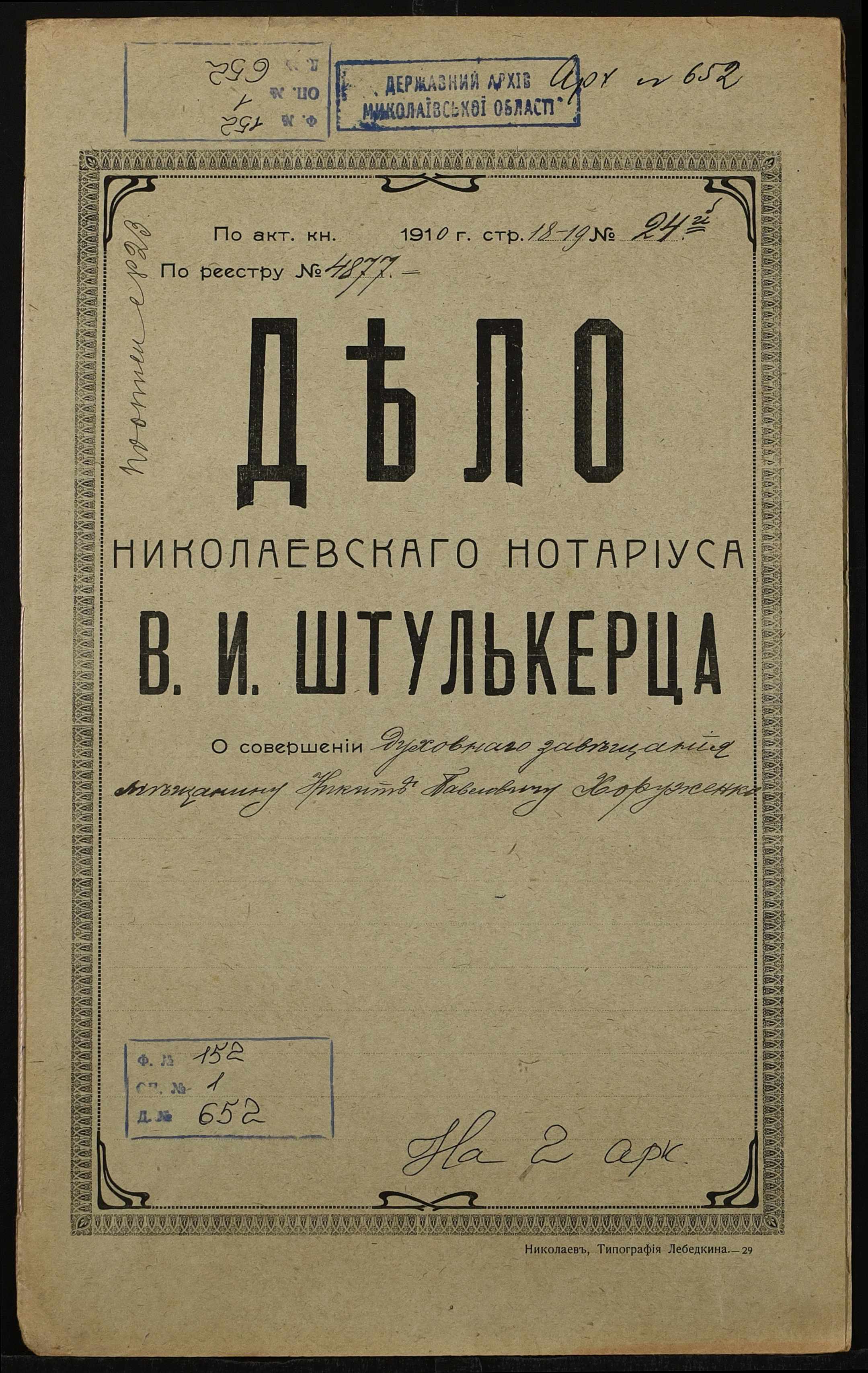 Фонд 152 / Опис 1 / Справа 0652