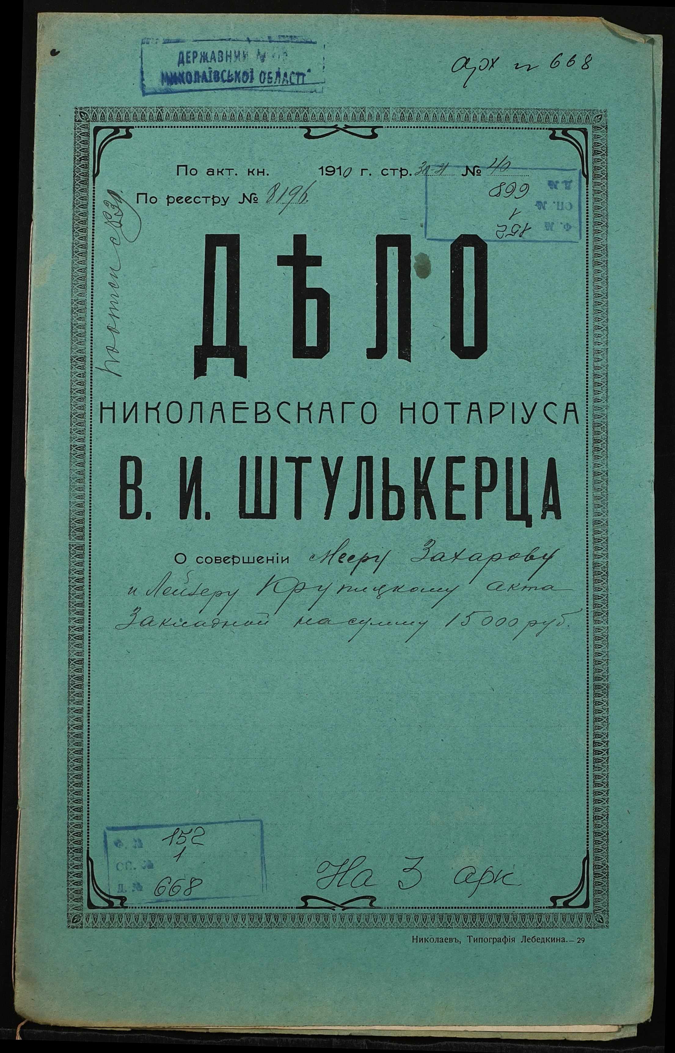 Фонд 152 / Опис 1 / Справа 0668