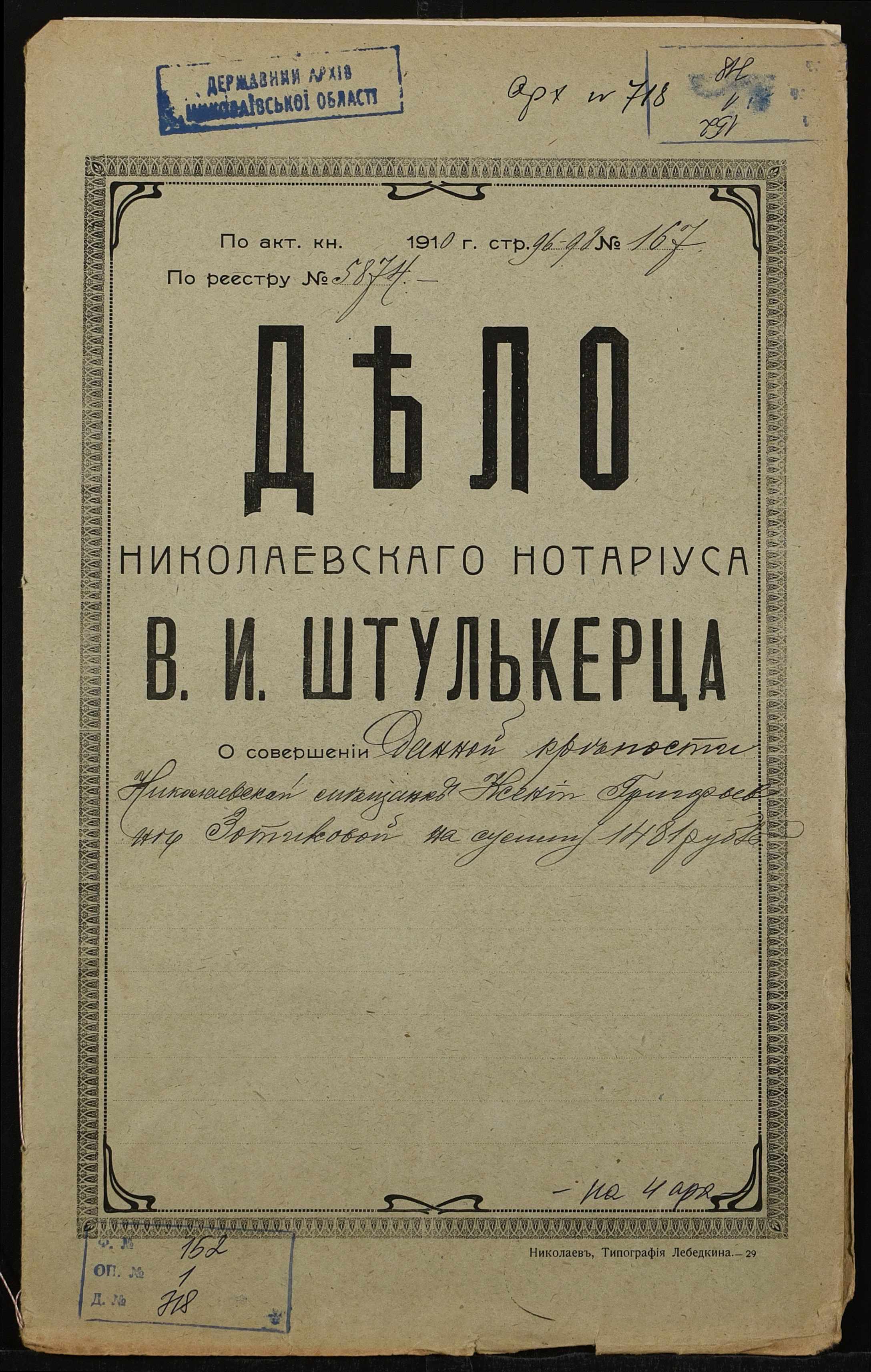 Фонд 152 / Опис 1 / Справа 0718