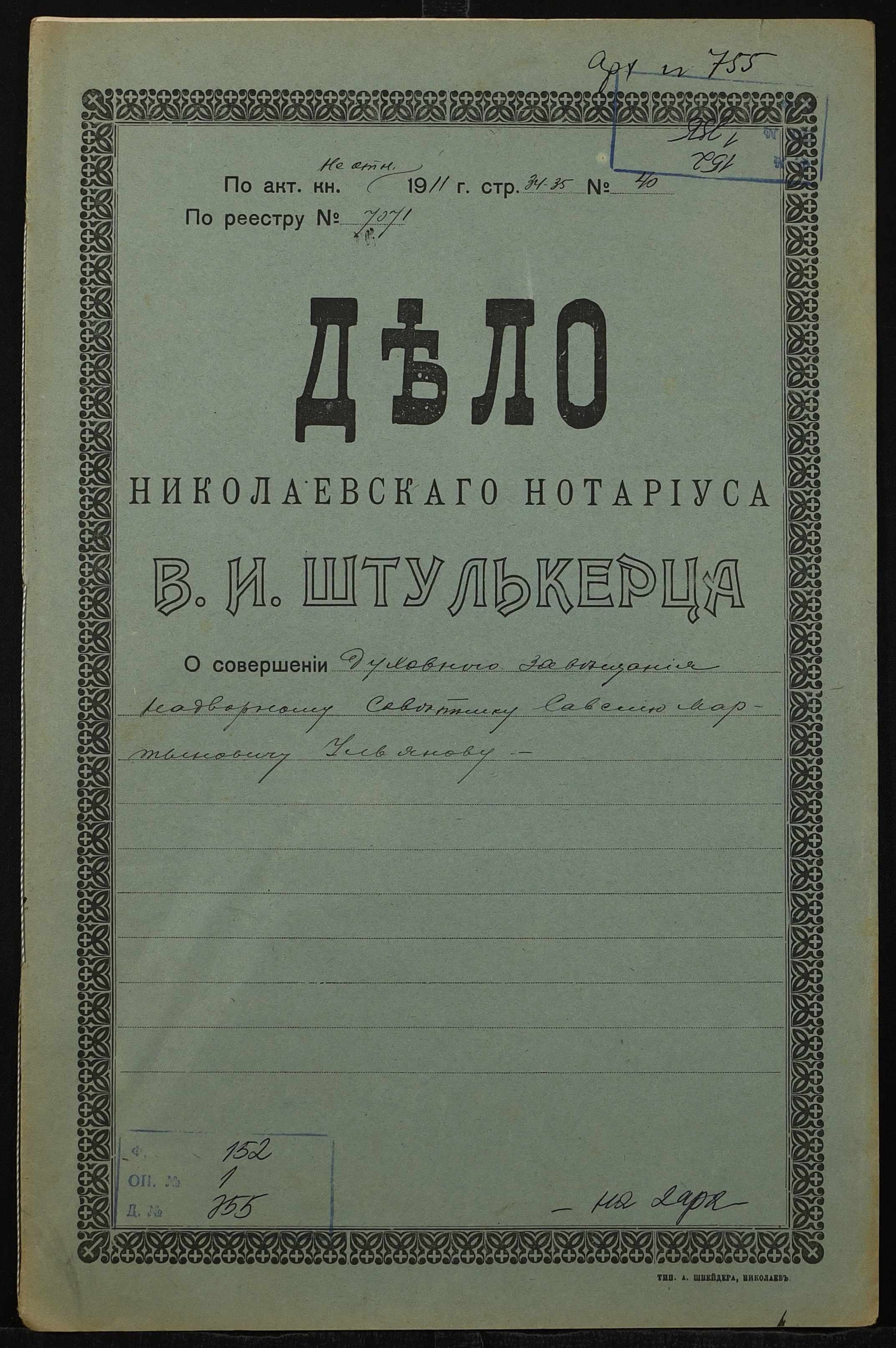 Фонд 152 / Опис 1 / Справа 0755