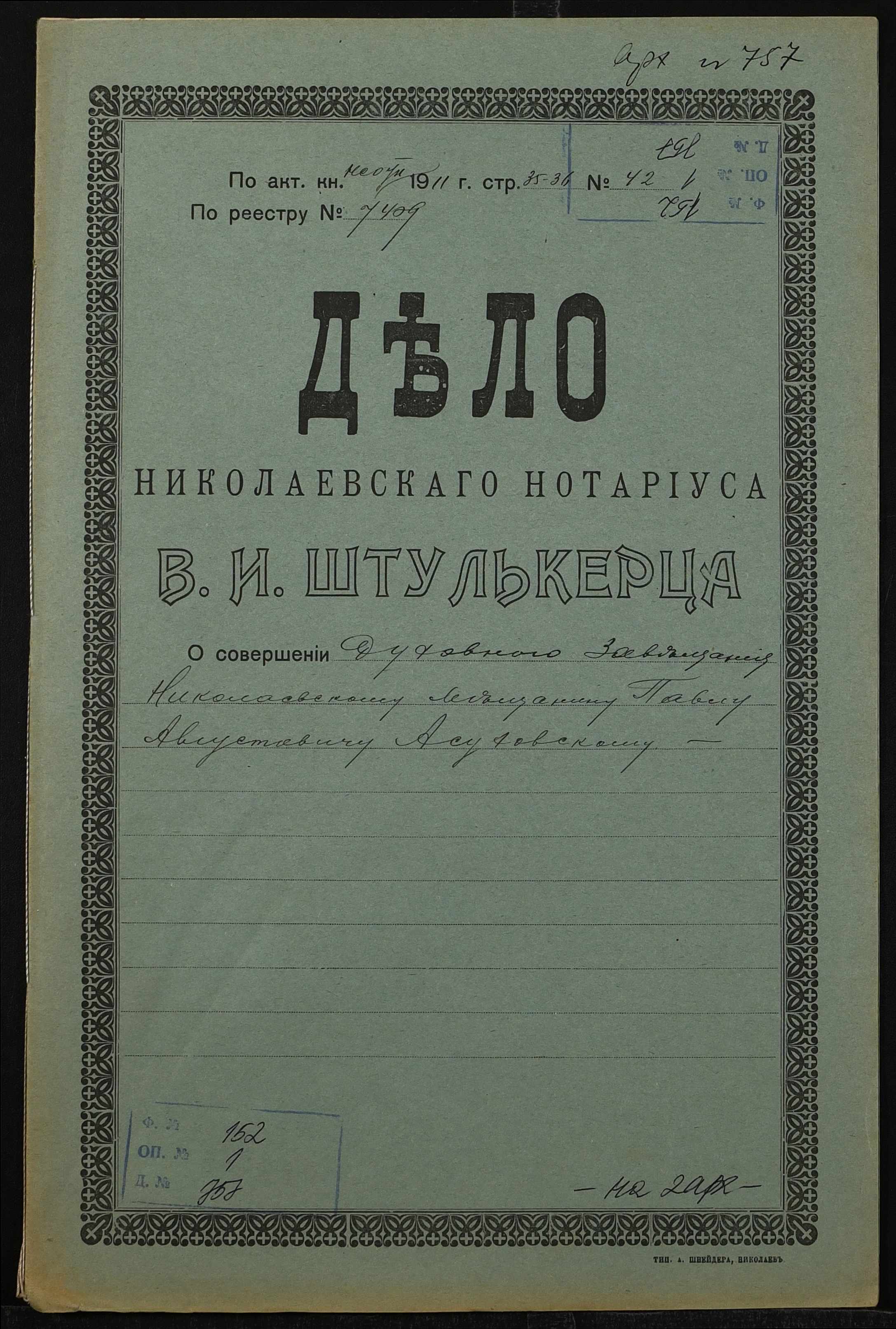 Фонд 152 / Опис 1 / Справа 0757