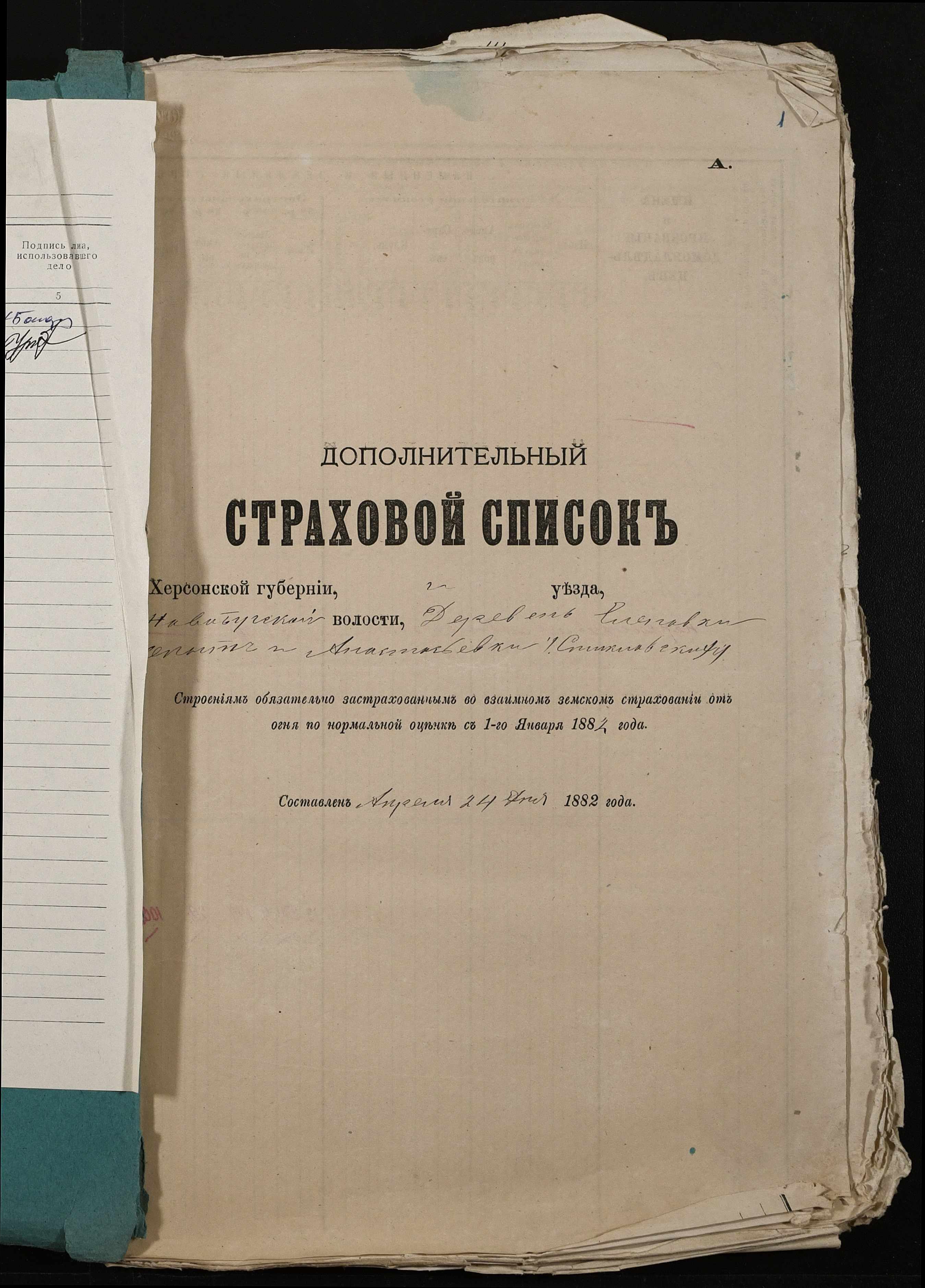 • • • • Справа № 3 “Додатковий страховий список сіл Єленівки, Опит та Анастасьєвки”