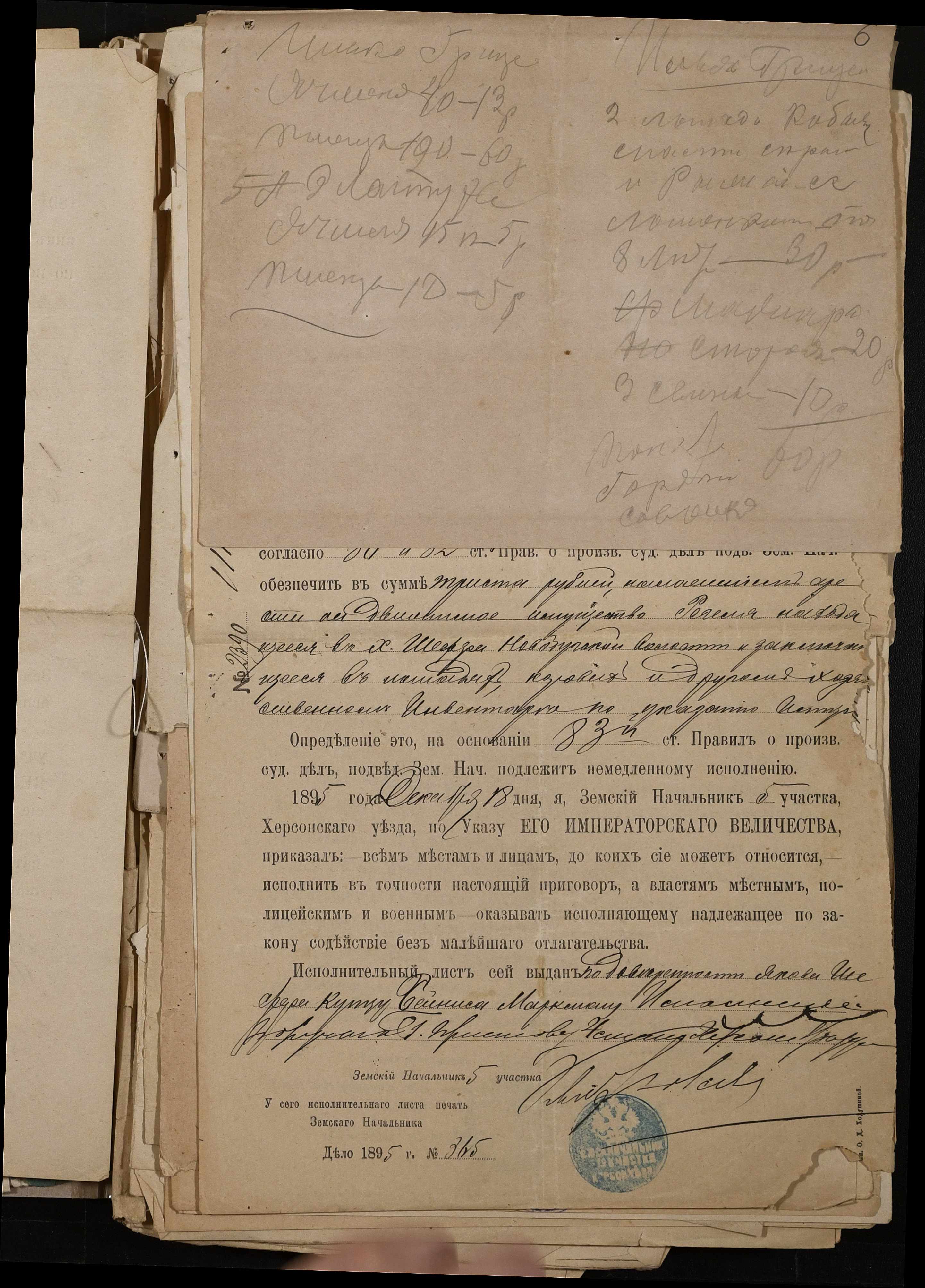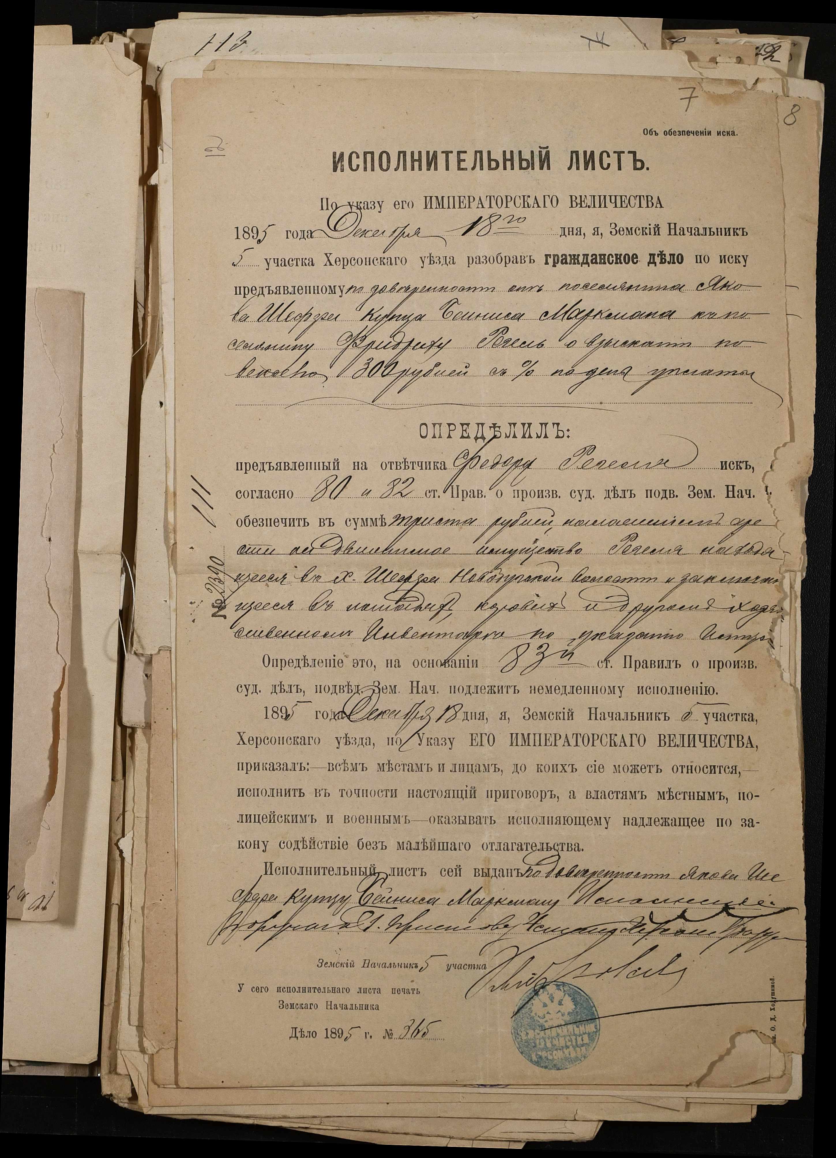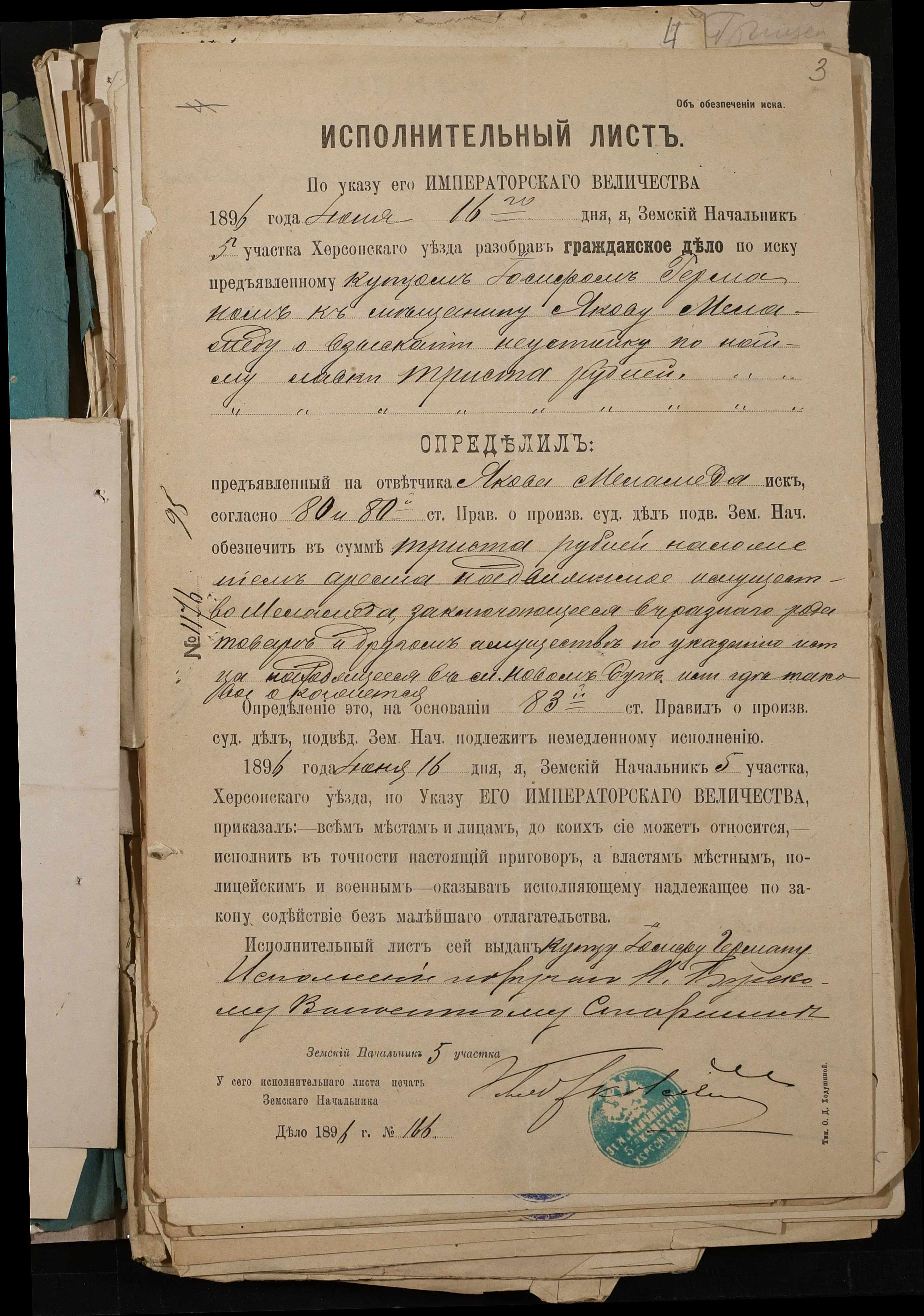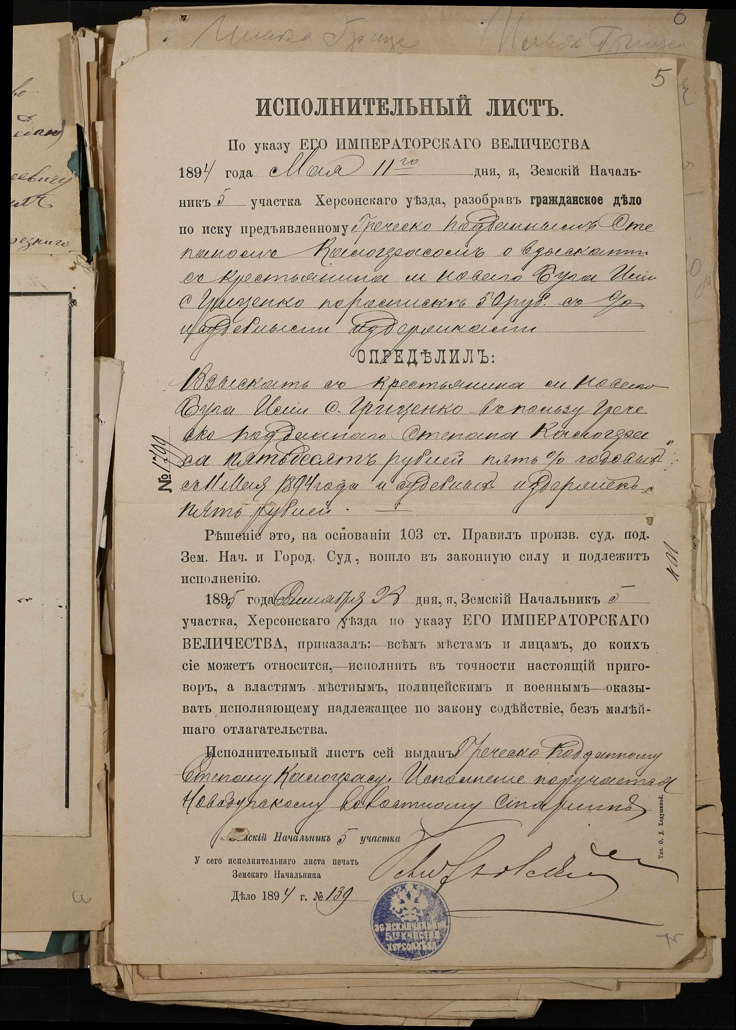 • • • • Справа № 10 “Виконавчі листи у цивільних справах та описи майна селян”