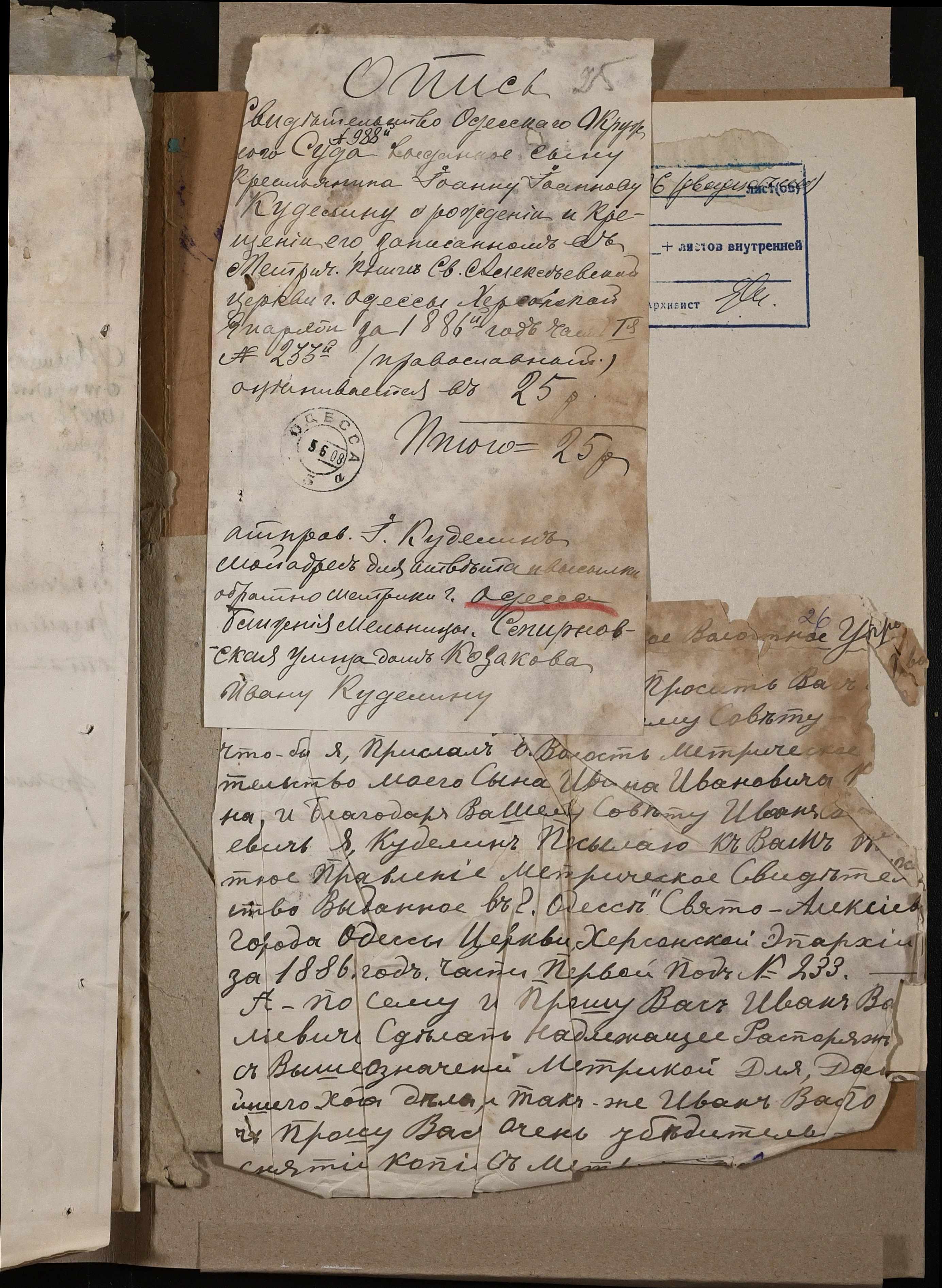◦ ◦ ◦ Опис № 1 справ постійного зберігання за 1858, 1883-1919 рр.