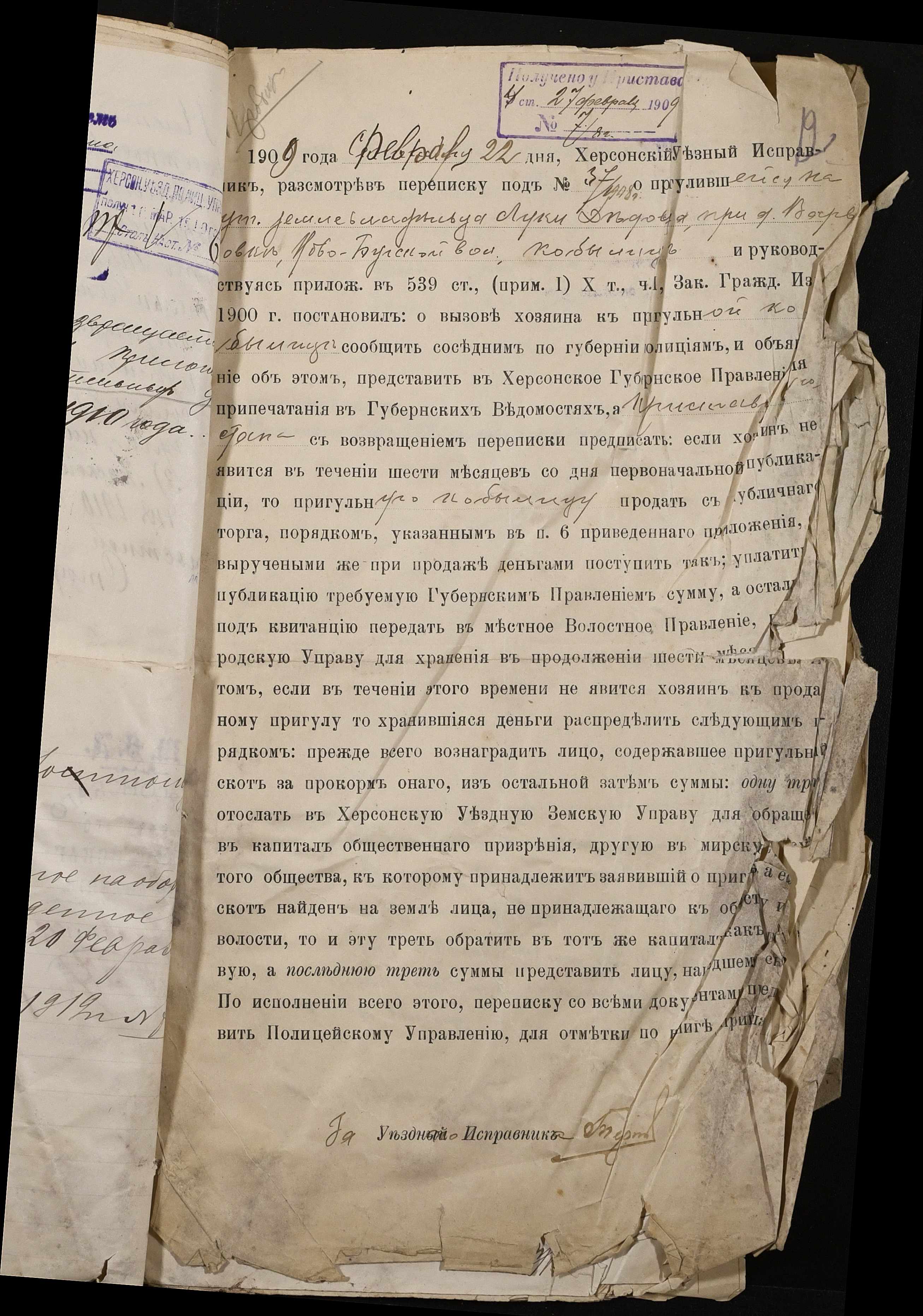 • • • • Справа № 26 “Справа за цивільними позовами про повернення пригульної худоби її власникам”