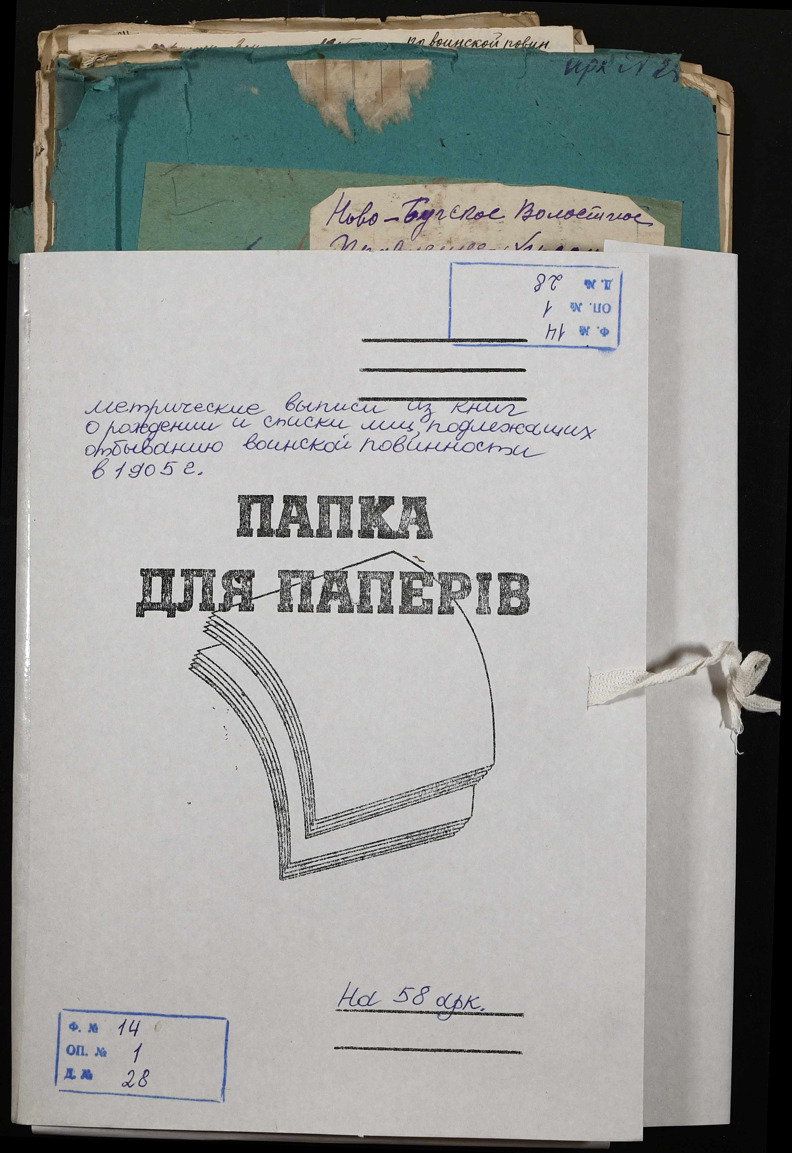 • • • • Справа № 28 “Витяги з метричних книг про народження та списки осіб, які підлягають до відбування військової повинності у 1905 році”