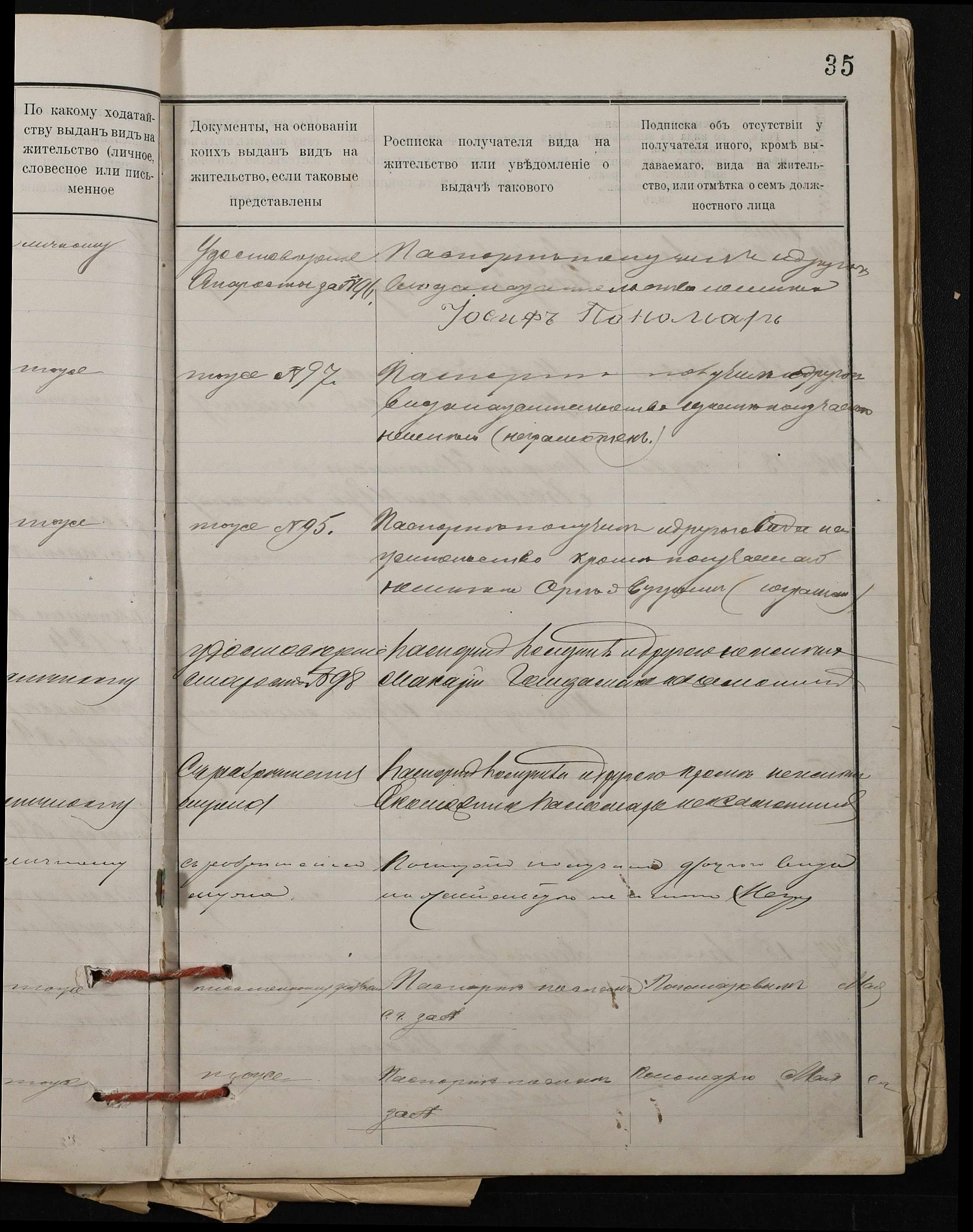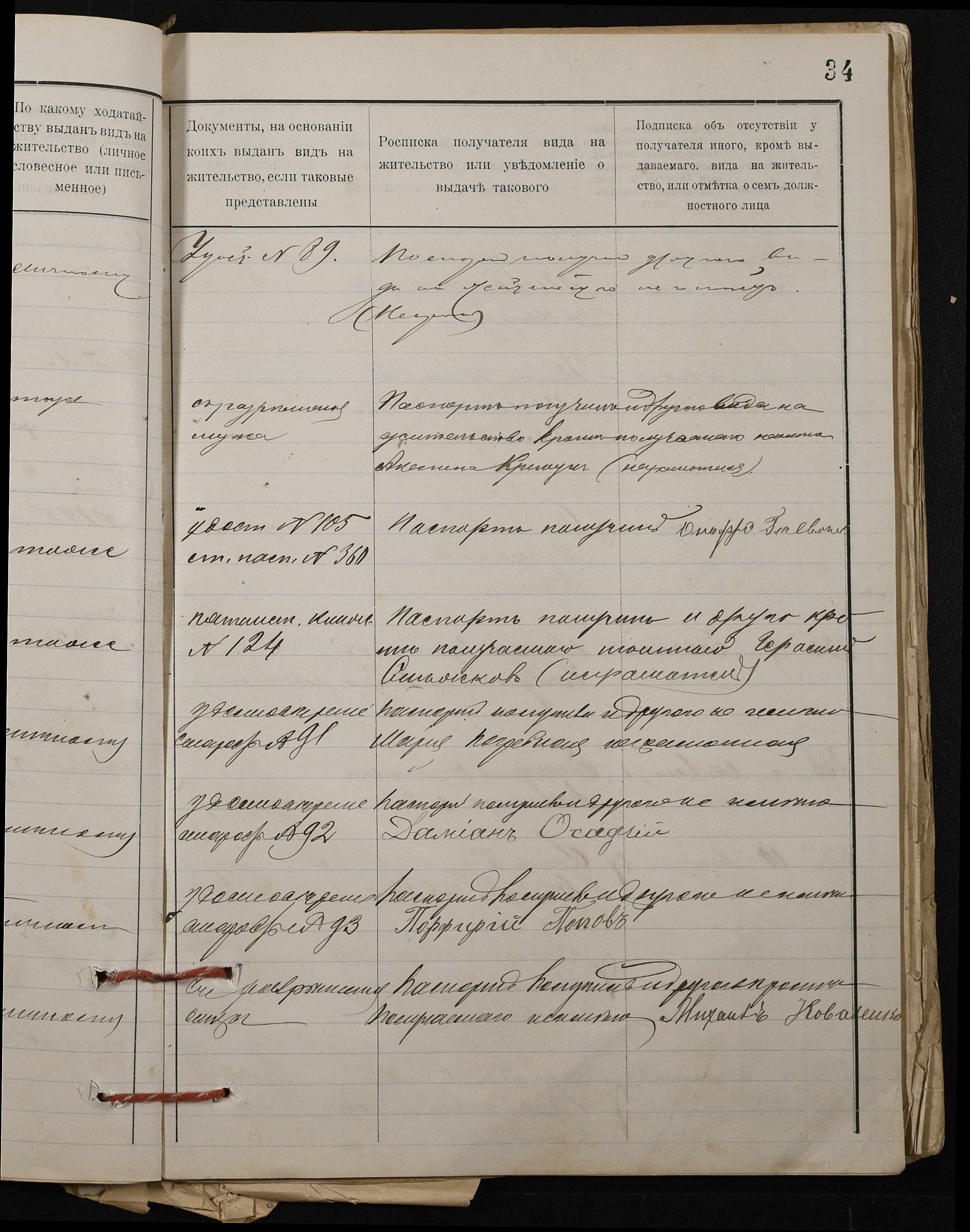 • • • • Справа № 37 “Настільний паспортний реєстр на осіб, які отримали паспорти”