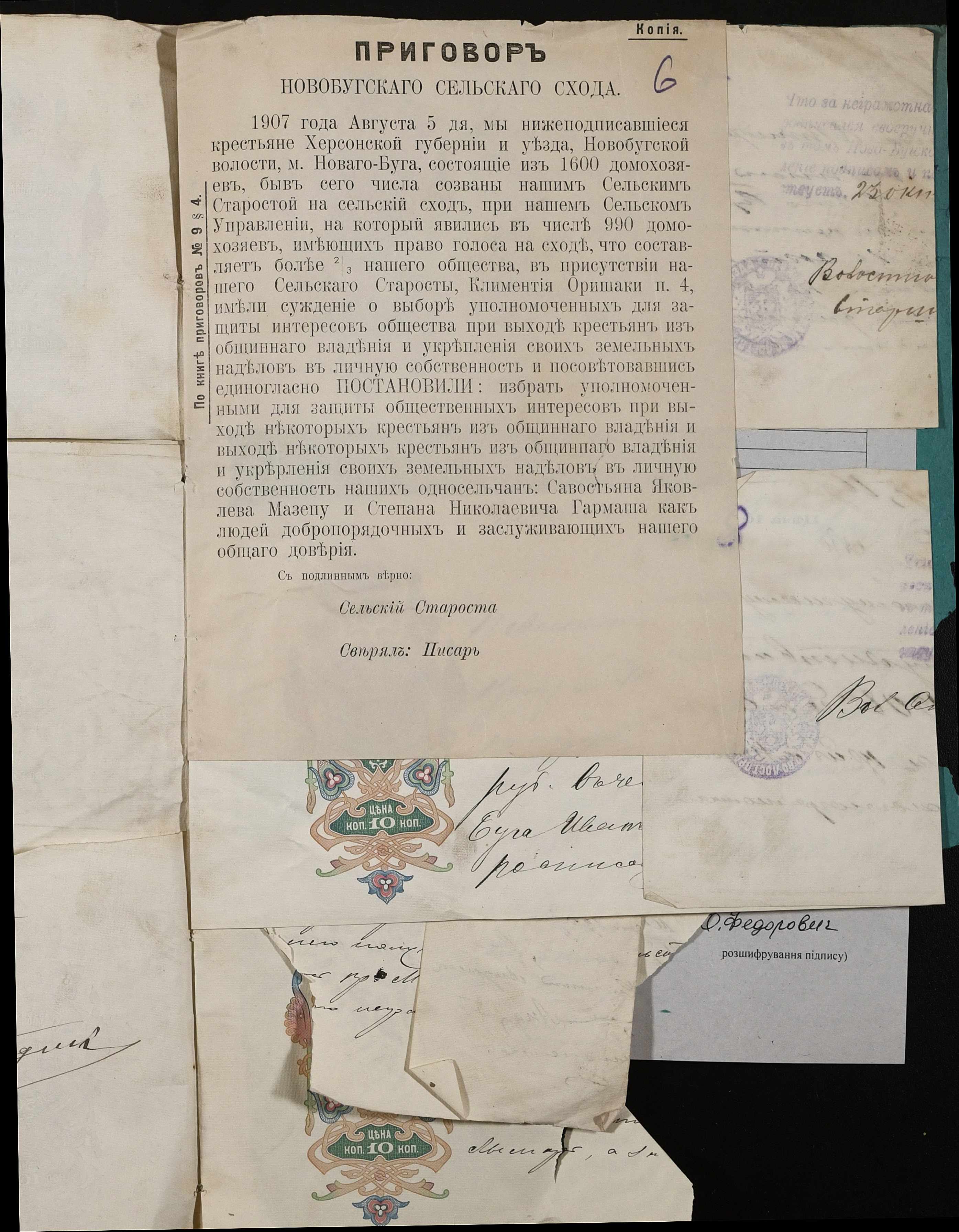 • • • • Справа № 39 “Запродажний акт на особисте нерухоме майно селянина Шаповалова та платіжні векселі”