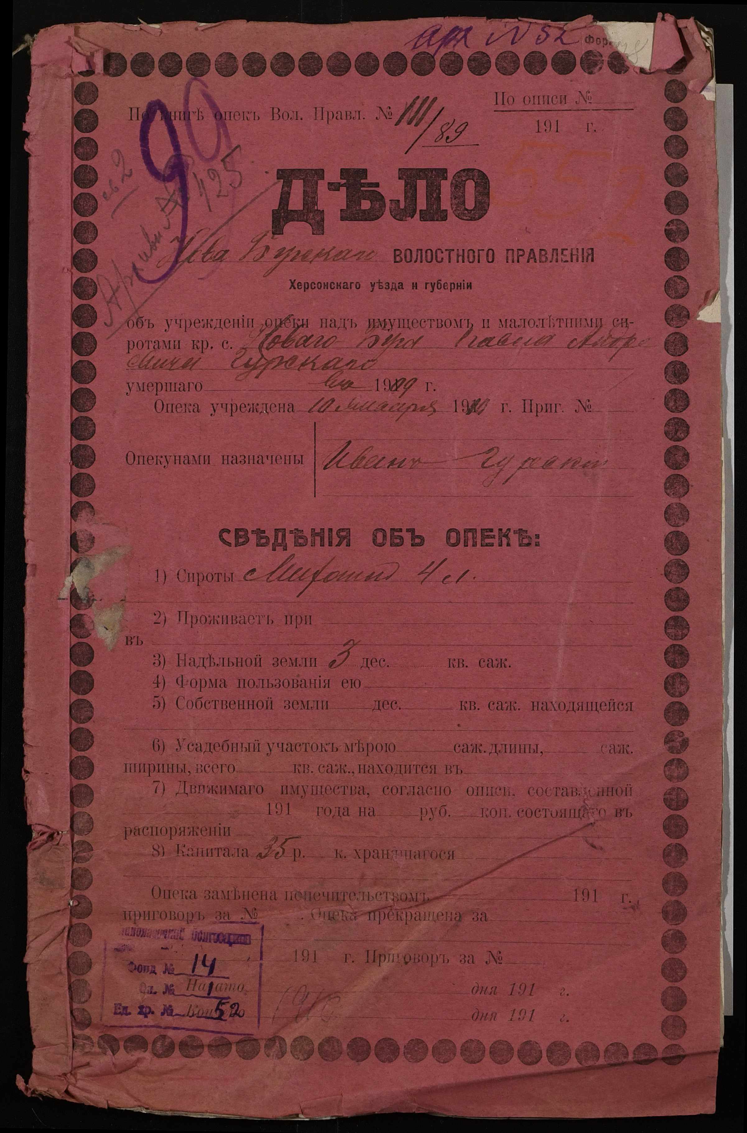 • • • • Справа № 52 “Справа про встановлення опіки над майном та сиротами Гурського П.А.”
