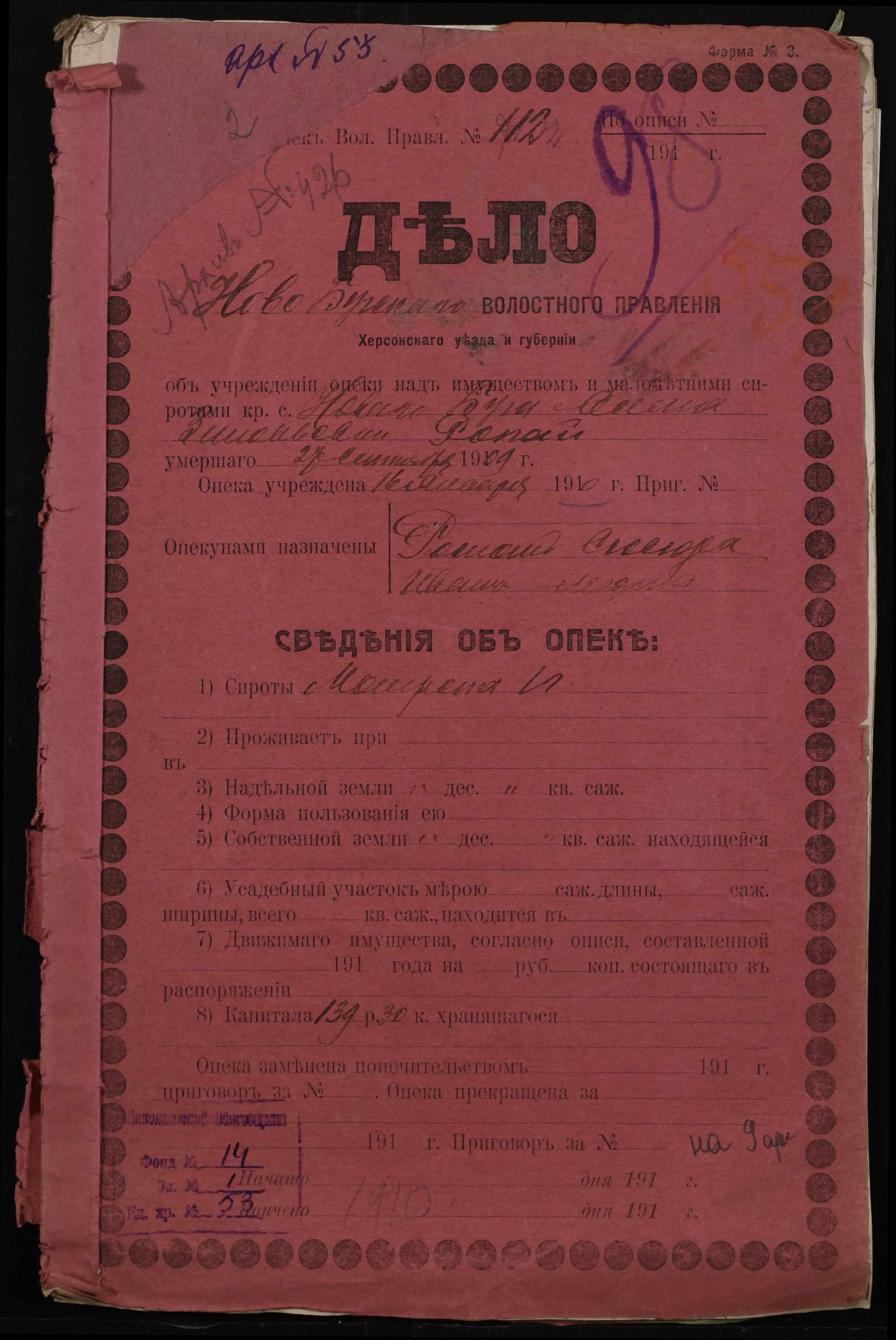 ◦ ◦ Фонд № 14 “Новобузьке волосне правління”