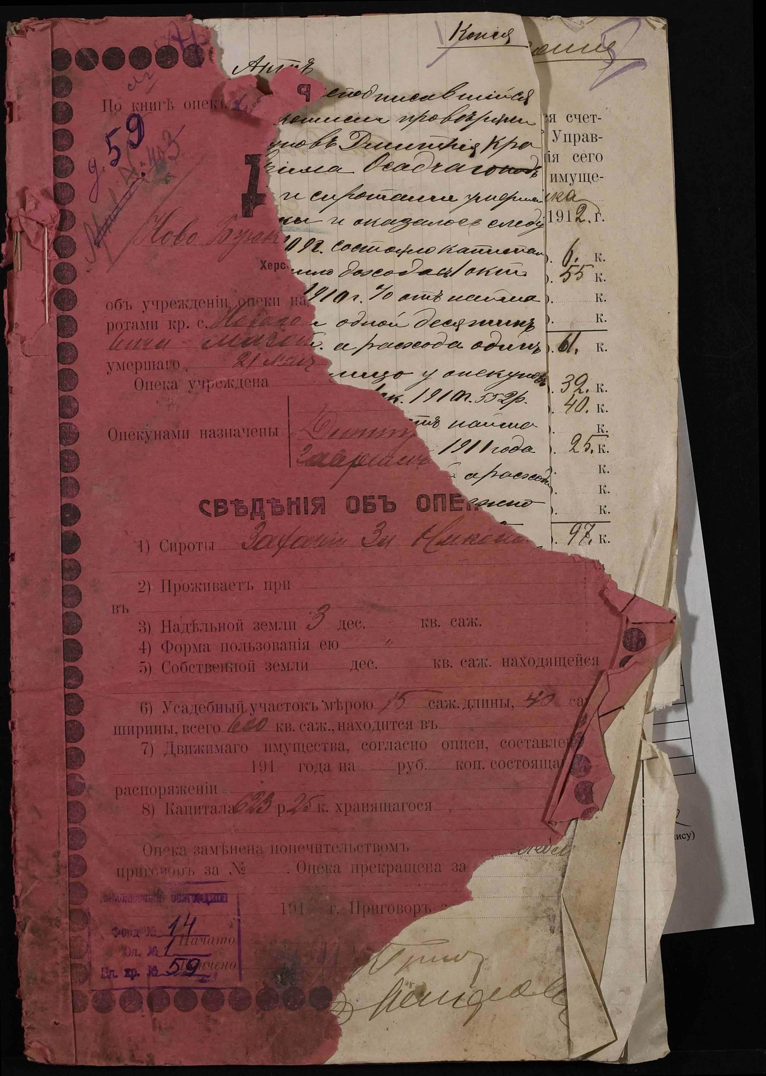 • • • • Справа № 59 “Справа про встановлення опіки над майном та сиротами Мазанки Луки”