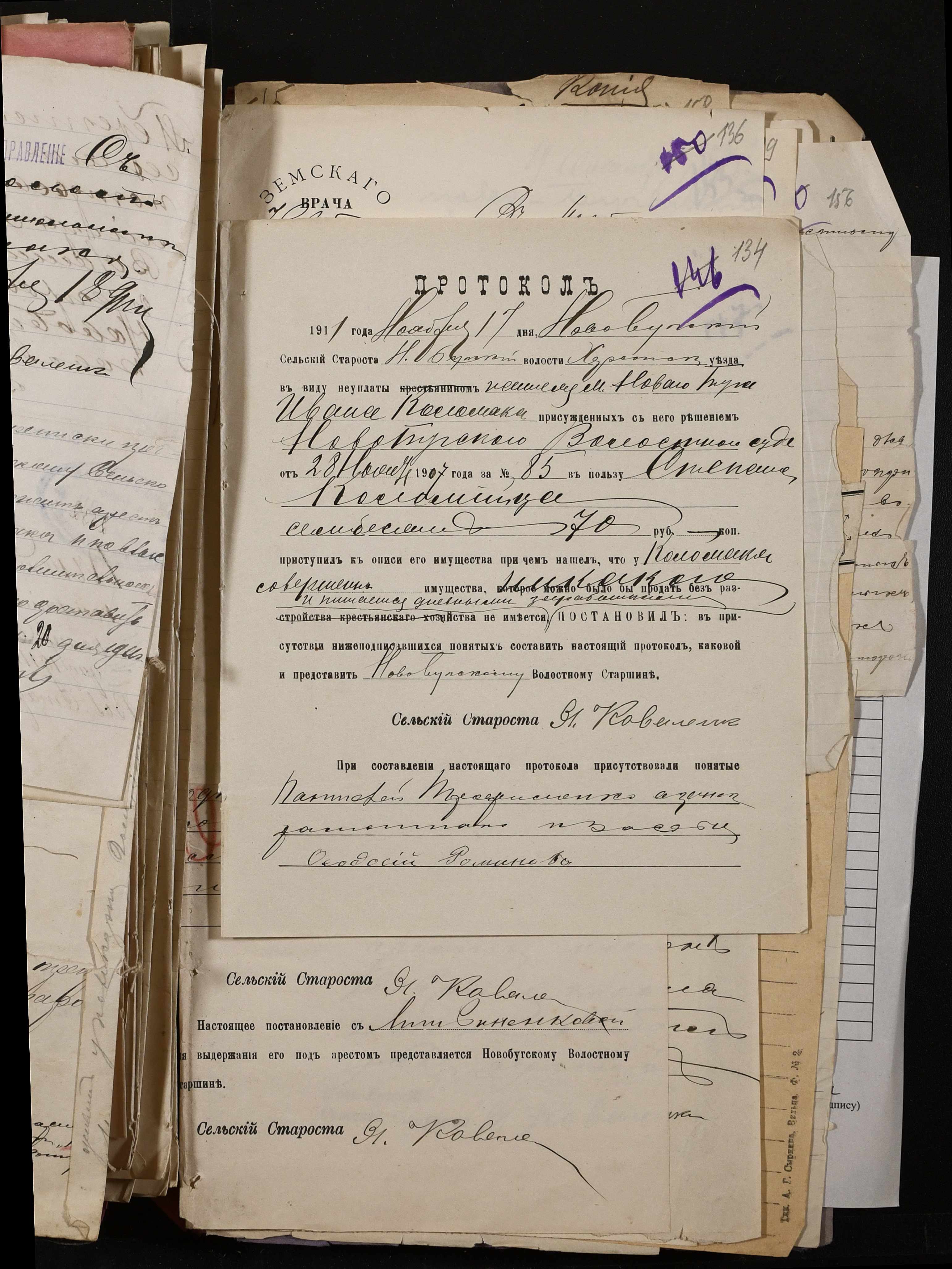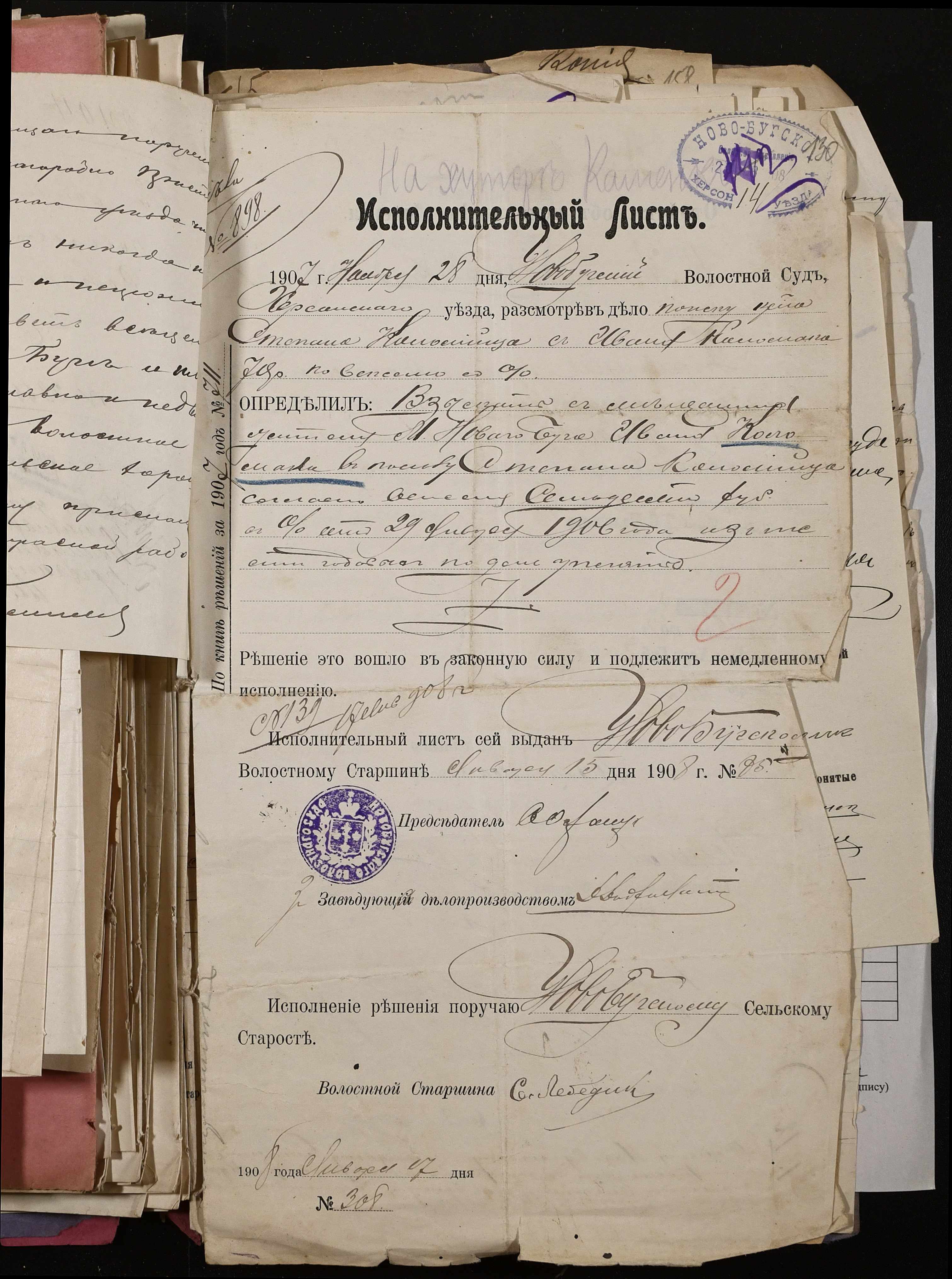 • • • • Справа № 70 “Листування з сільськими старостами про виконання вироків волосного суду та стягненнях за виконавчими листами”