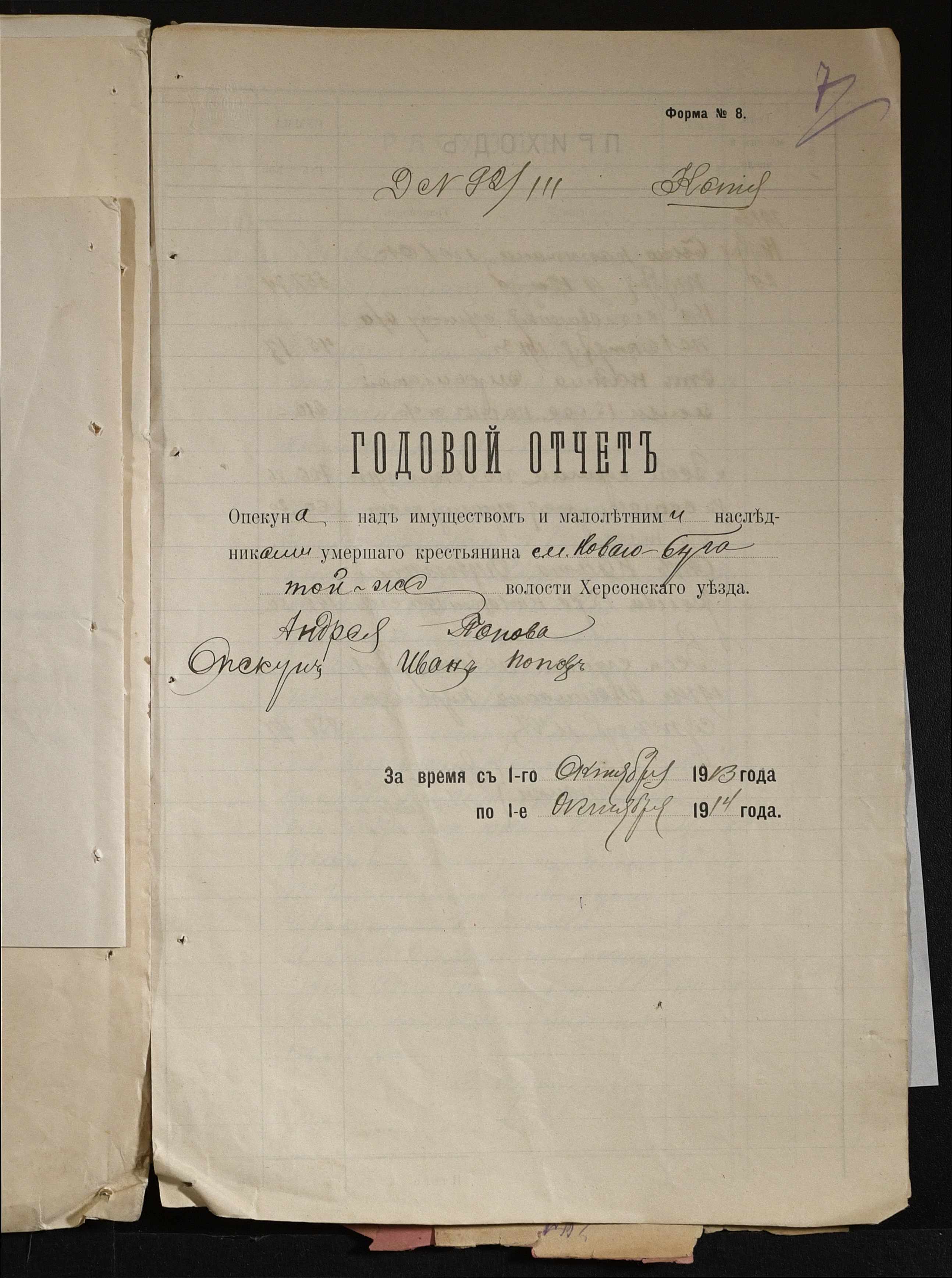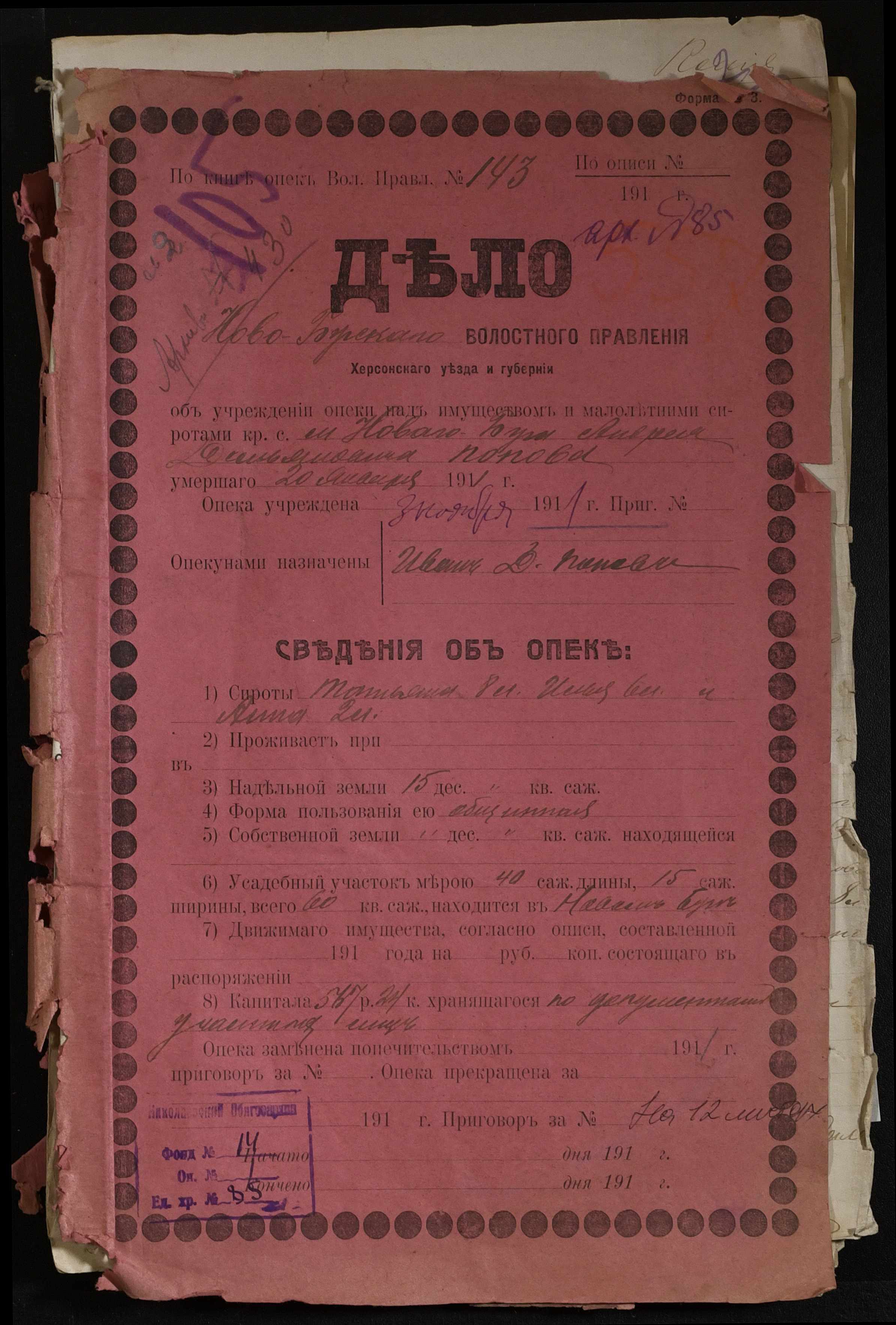 • • • • Справа № 85 “Справа про встановлення опіки над майном та сиротами Попова А.Д.”