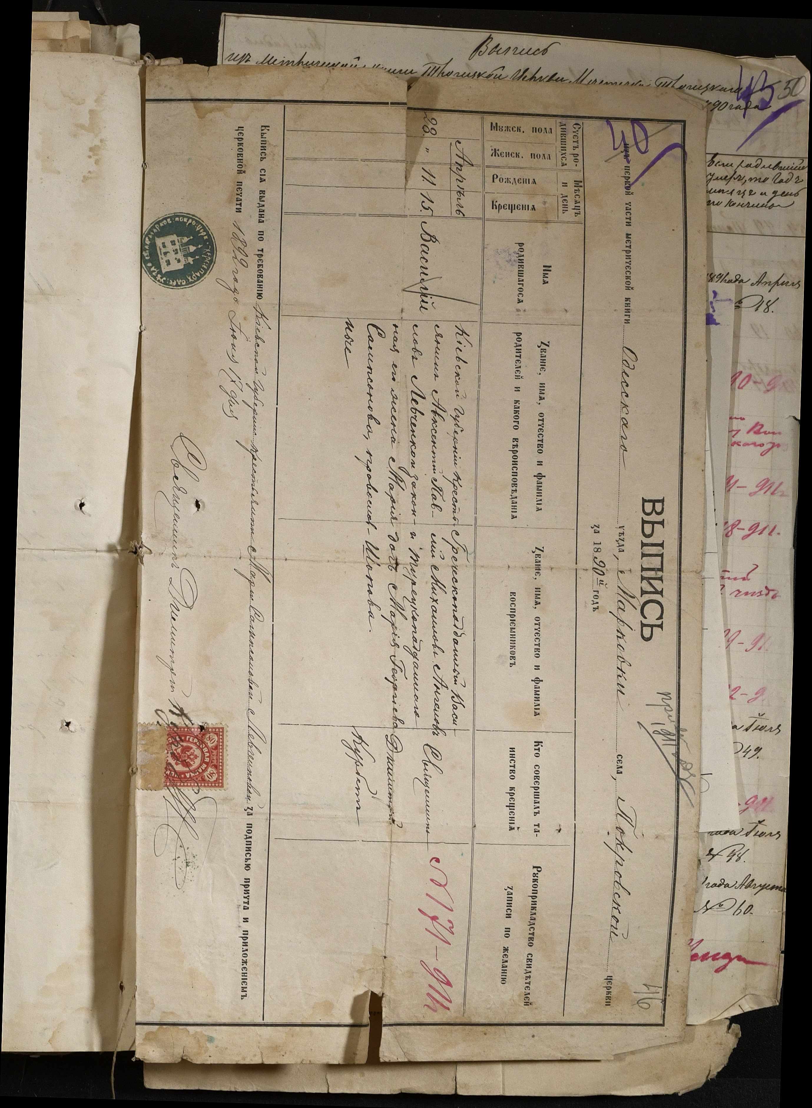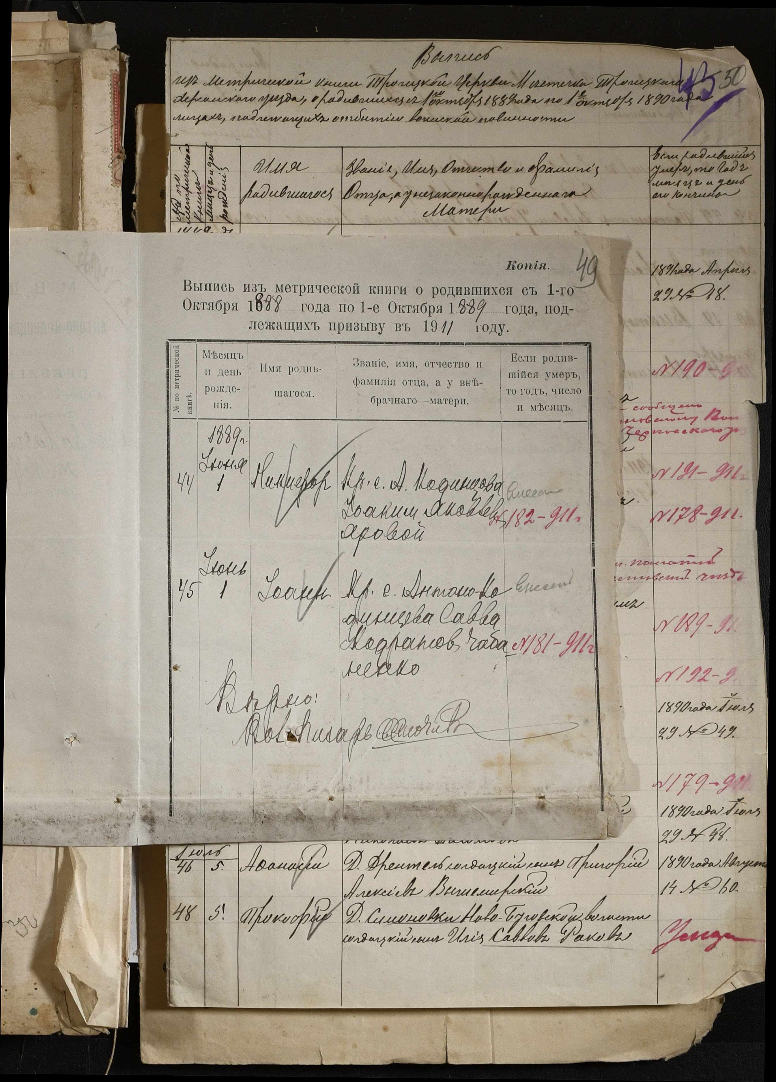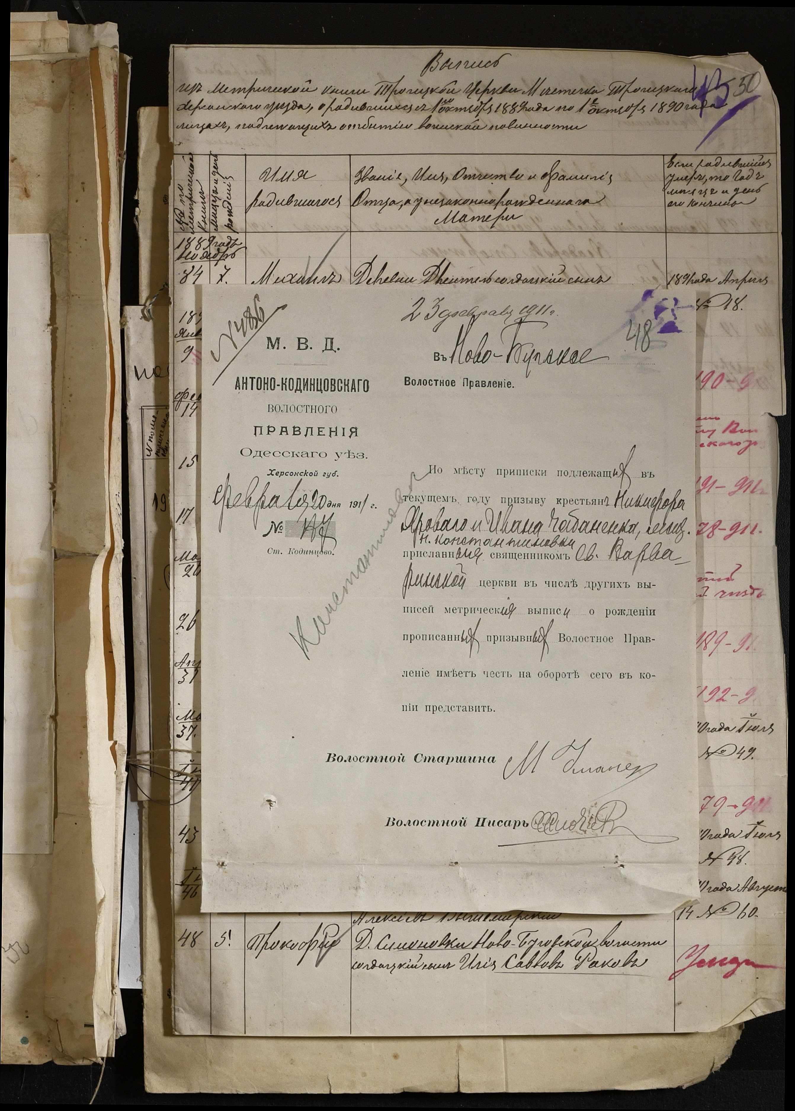 • • • • Справа № 88 “Витяги з метричної книги про народження та списки осіб, які підлягають до відбування військової повинності”
