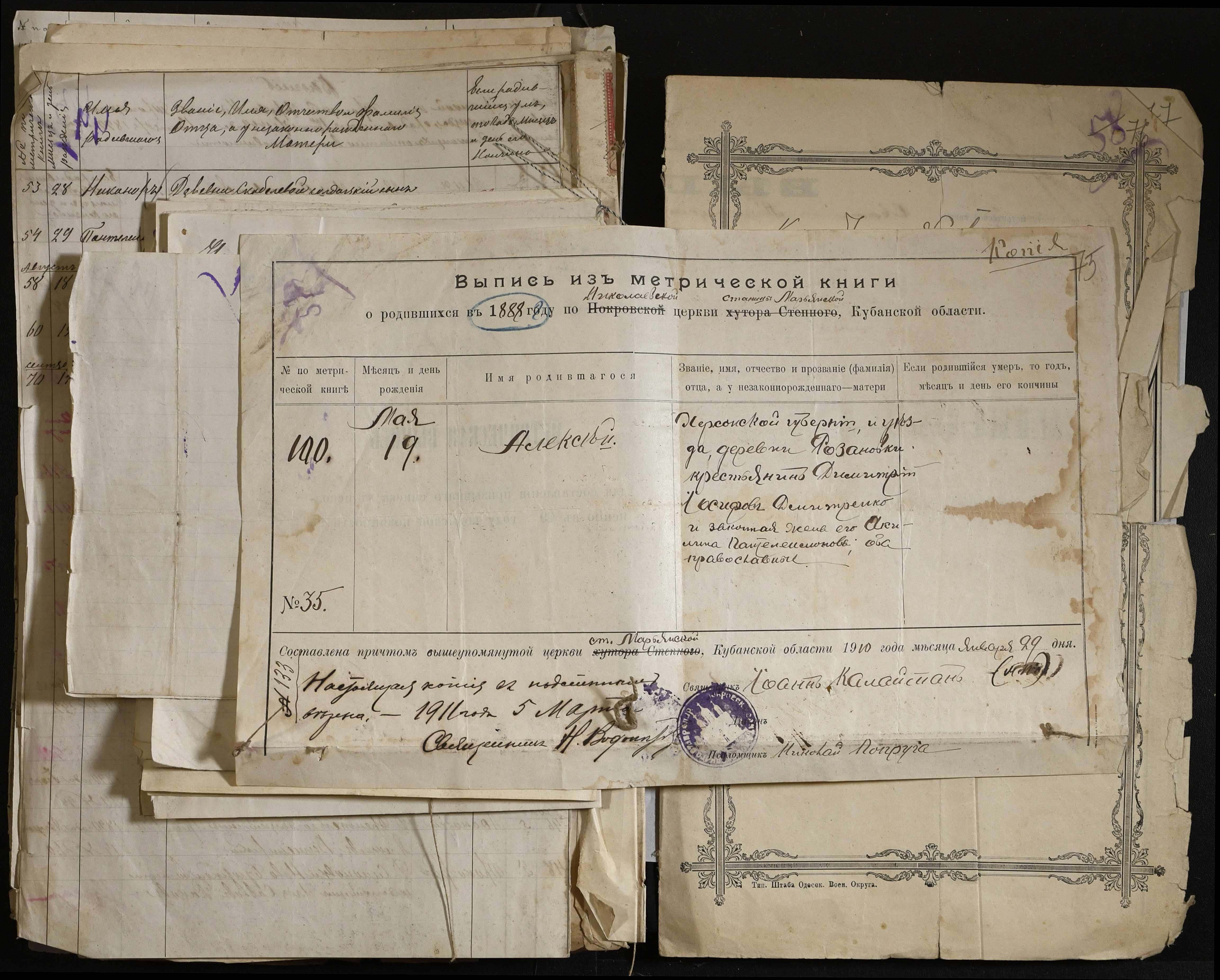 • • • • Справа № 88 “Витяги з метричної книги про народження та списки осіб, які підлягають до відбування військової повинності”