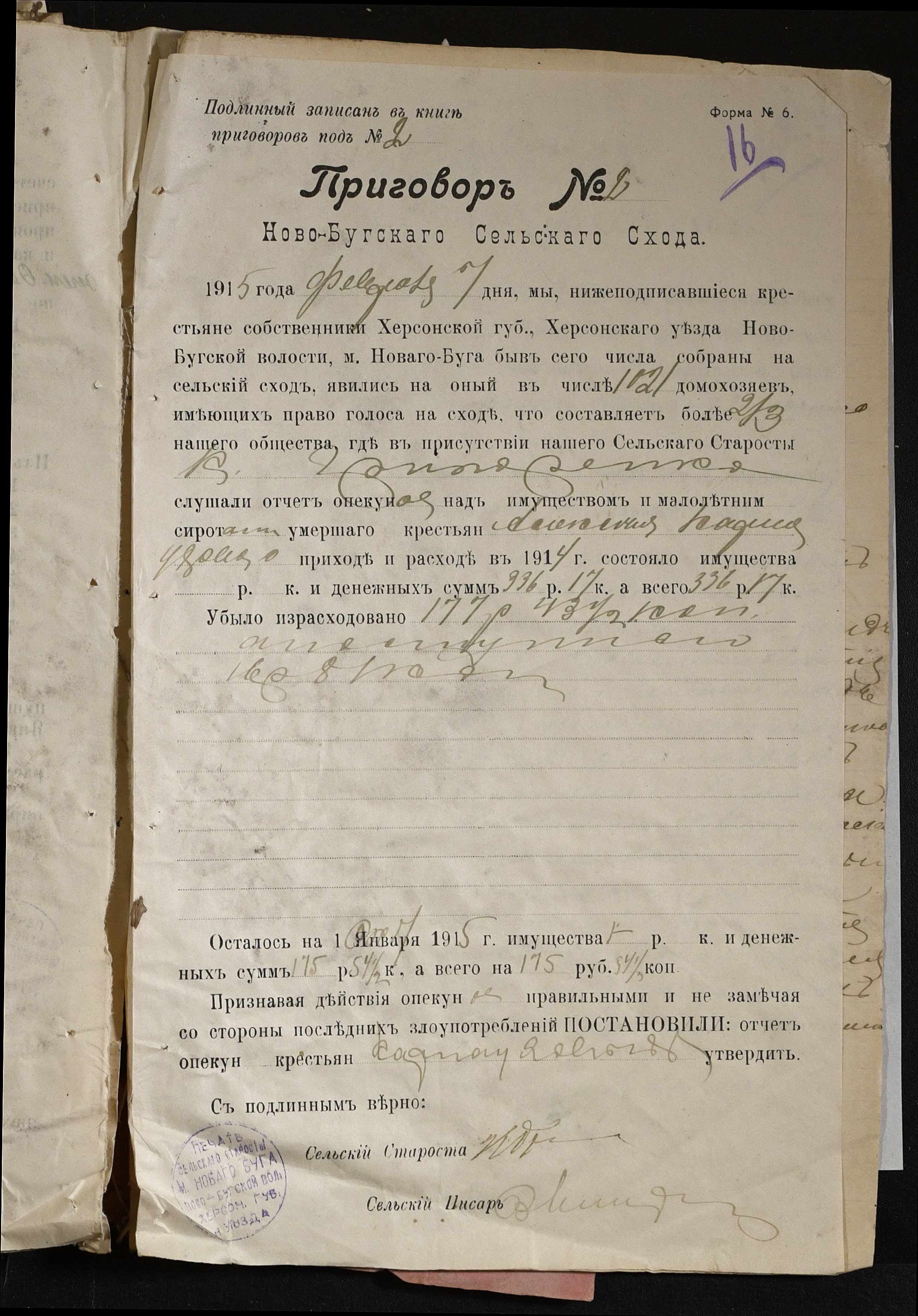 ◦ ◦ Фонд № 14 “Новобузьке волосне правління”