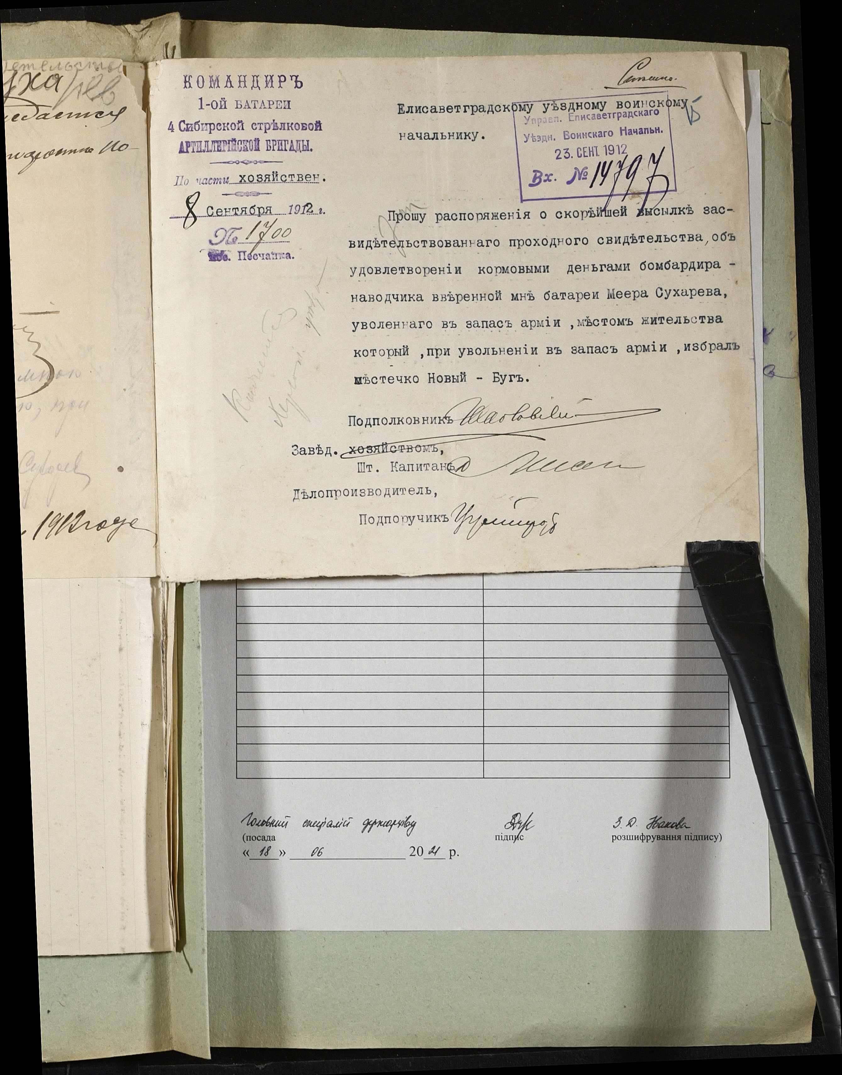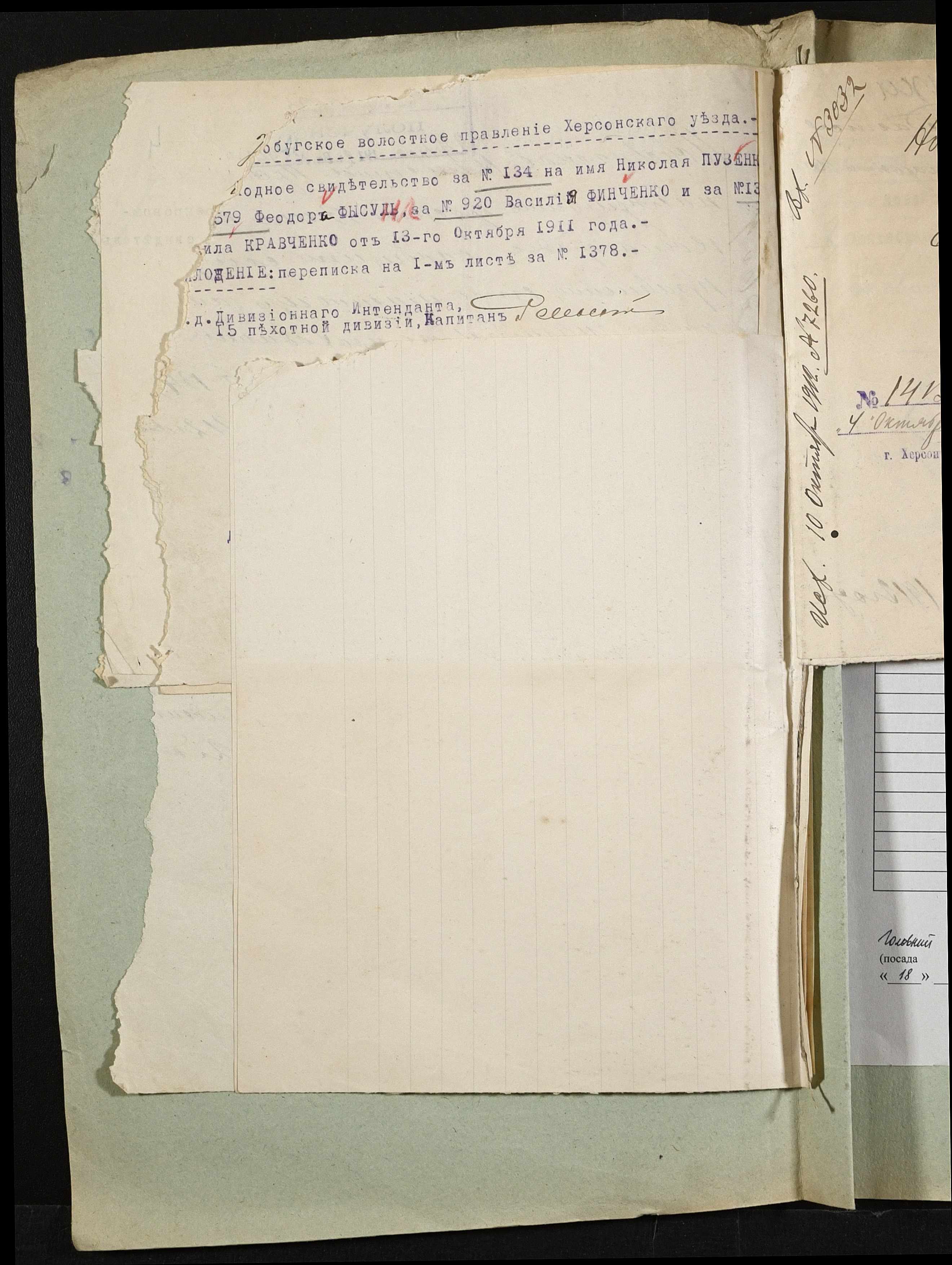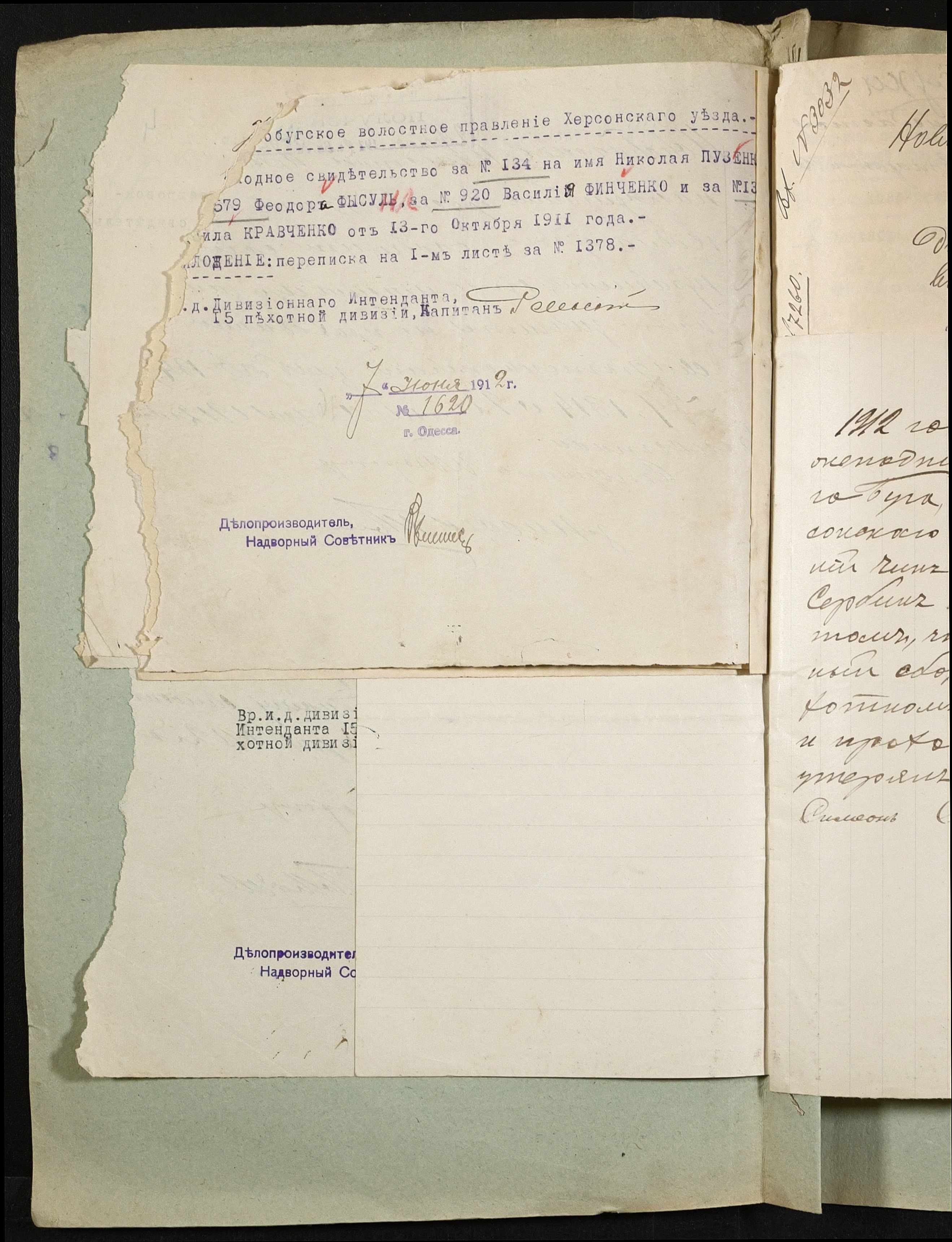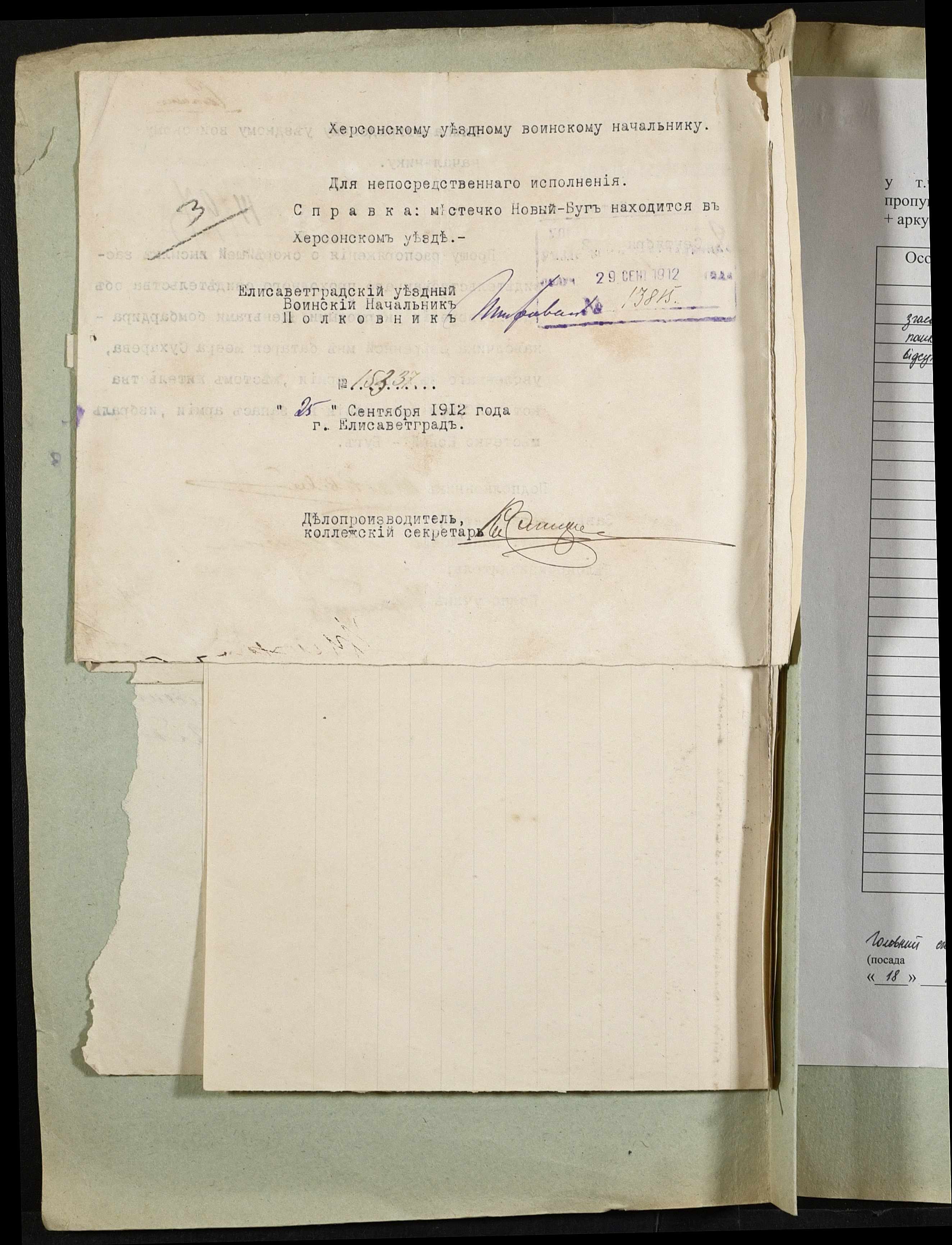 • • • • Справа № 125 “Листування з Херсонським повітовим військовим начальником про облік та звітність за наданими військово-зобов’язаним прохідним свідоцтвам”
