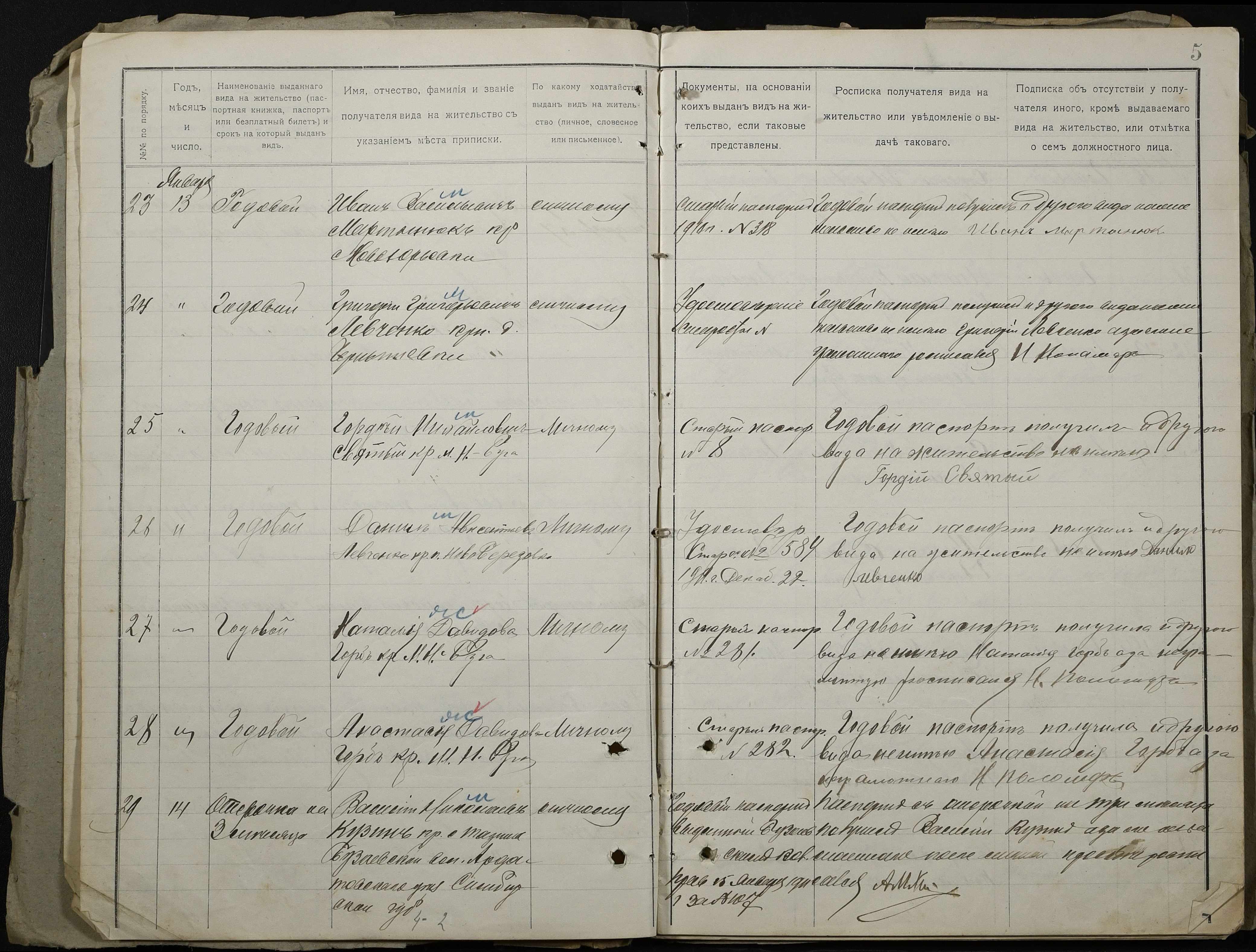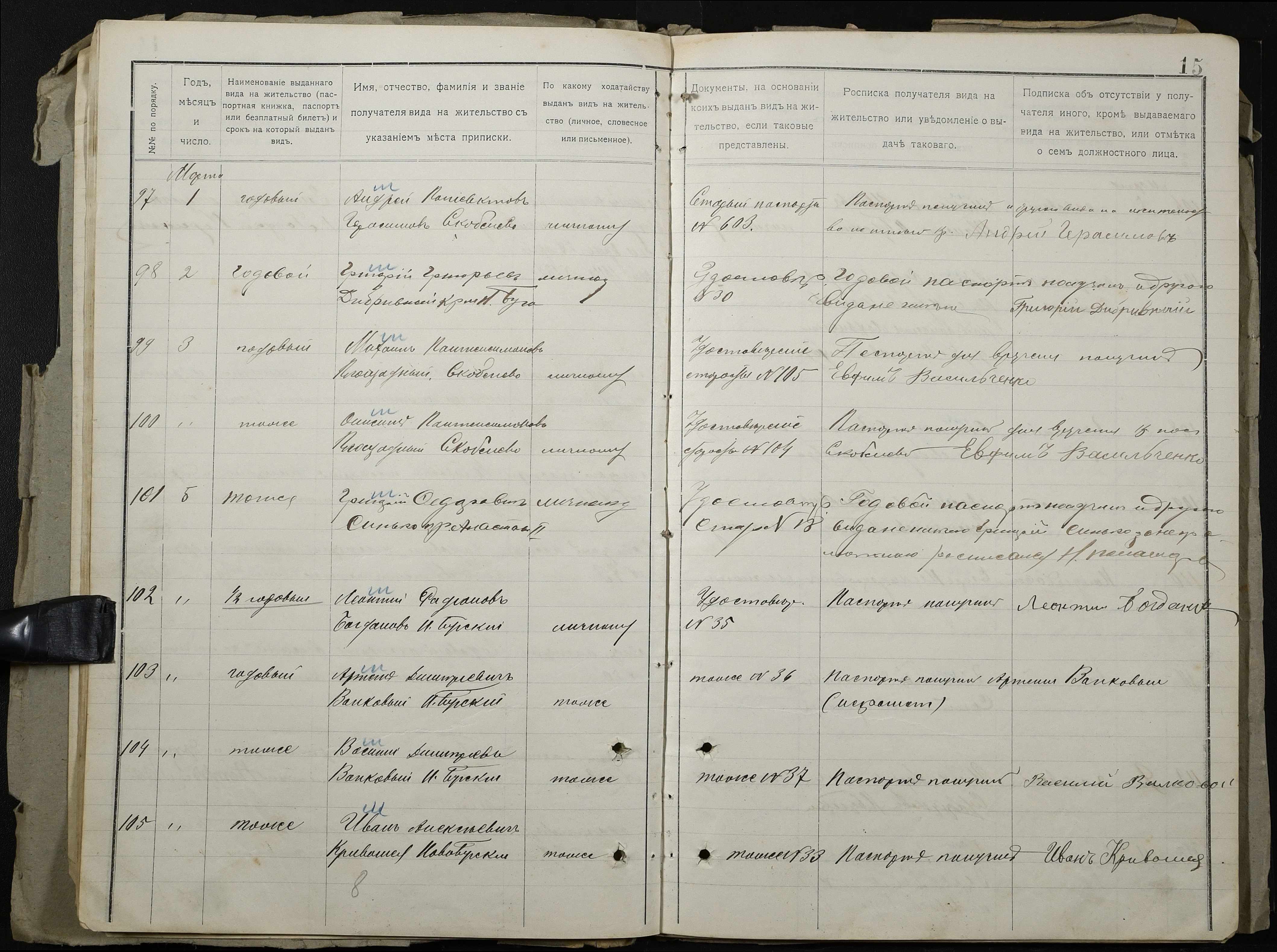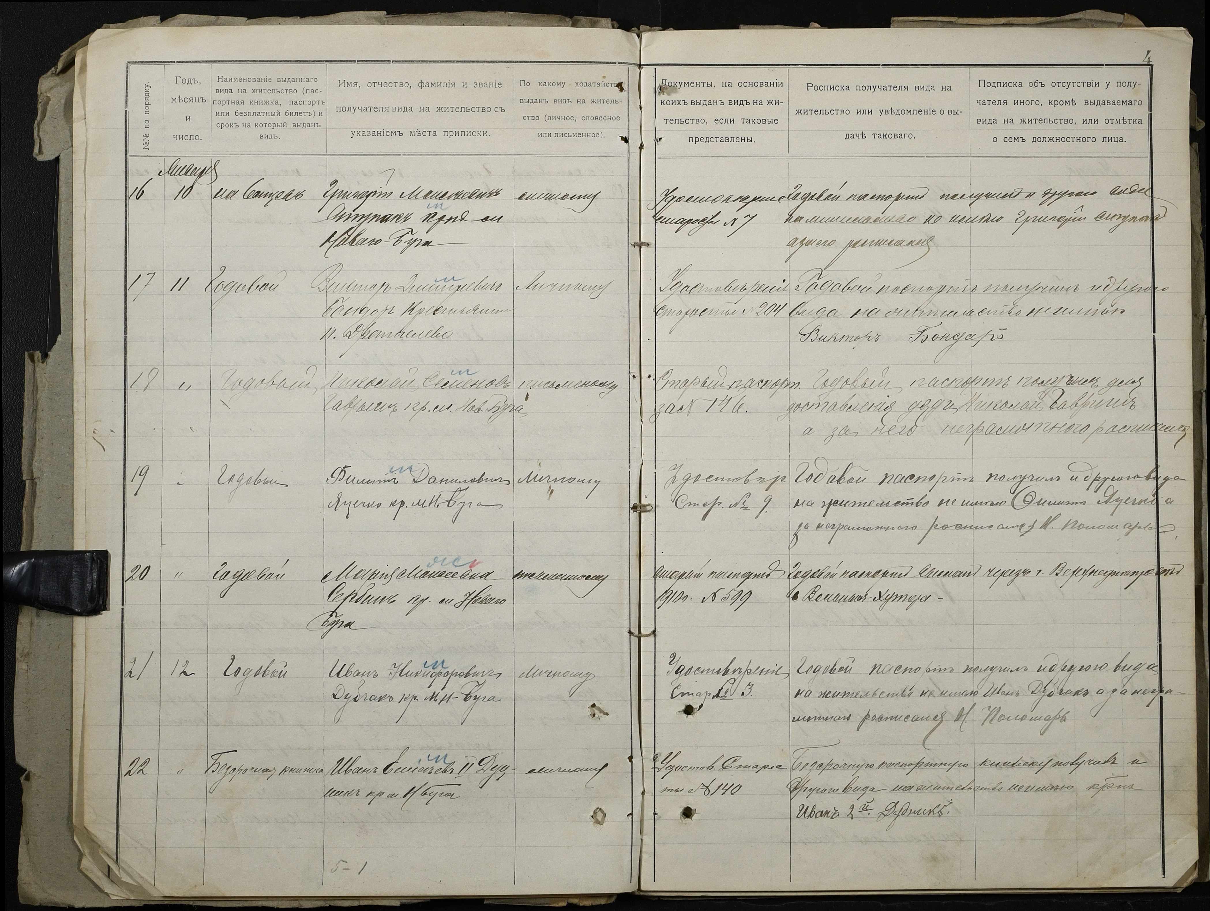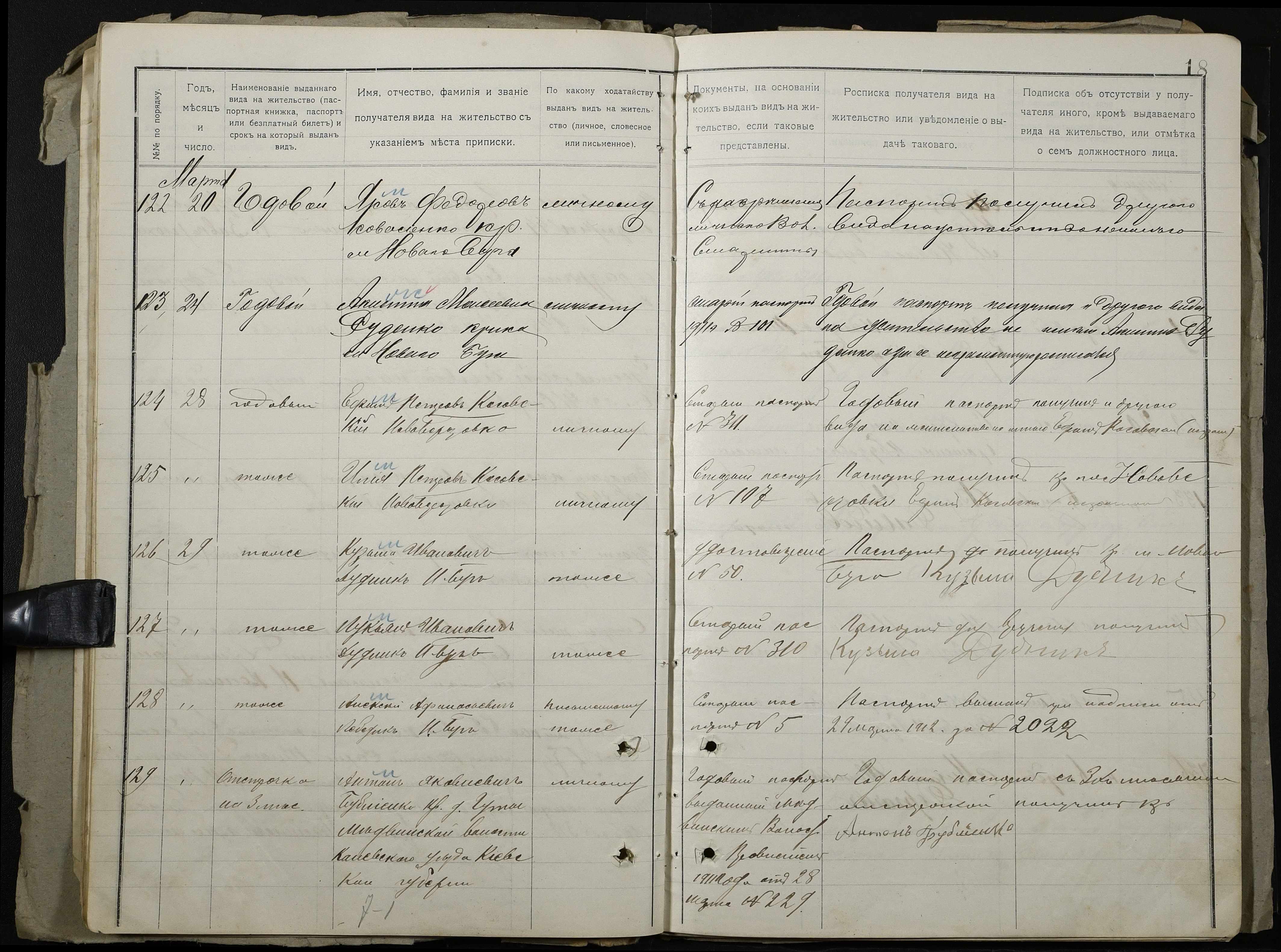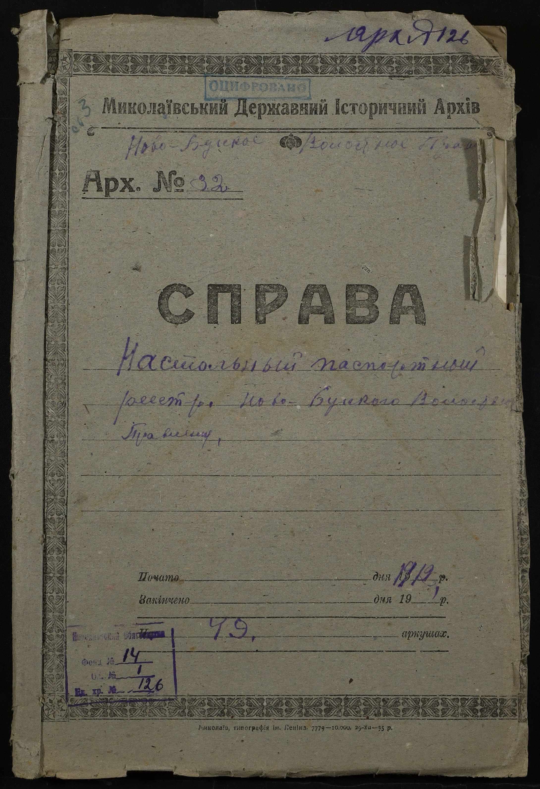 • • • • Справа № 126 “Настільний паспортний реєстр волосного правління”