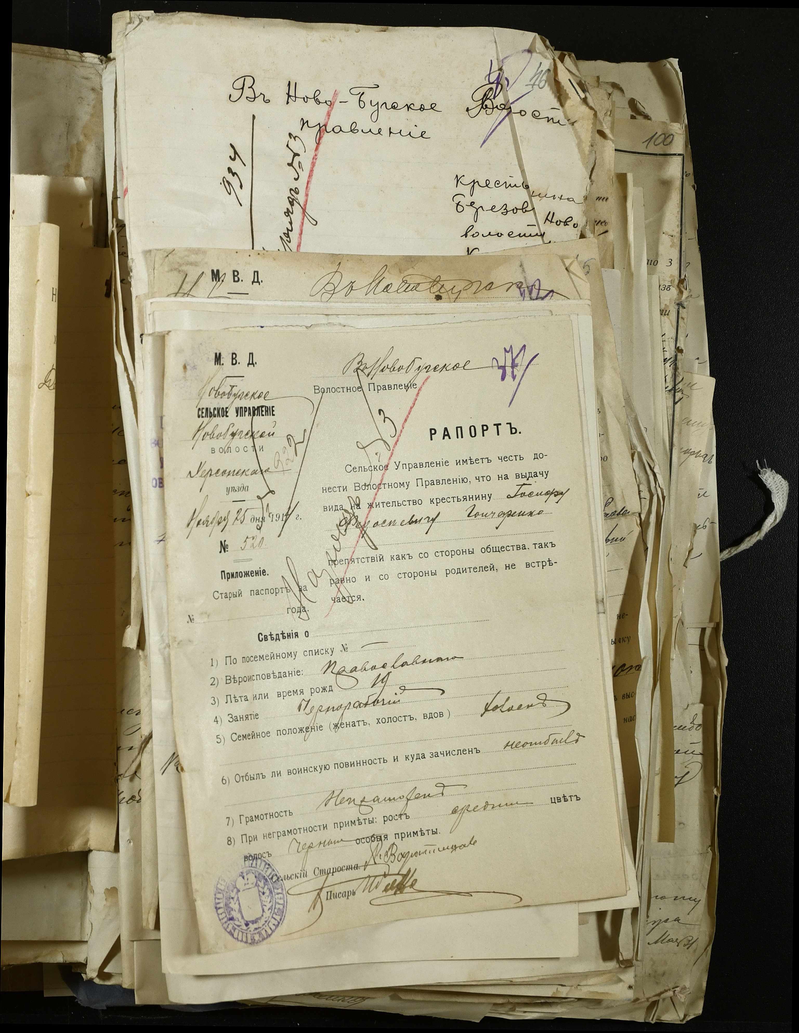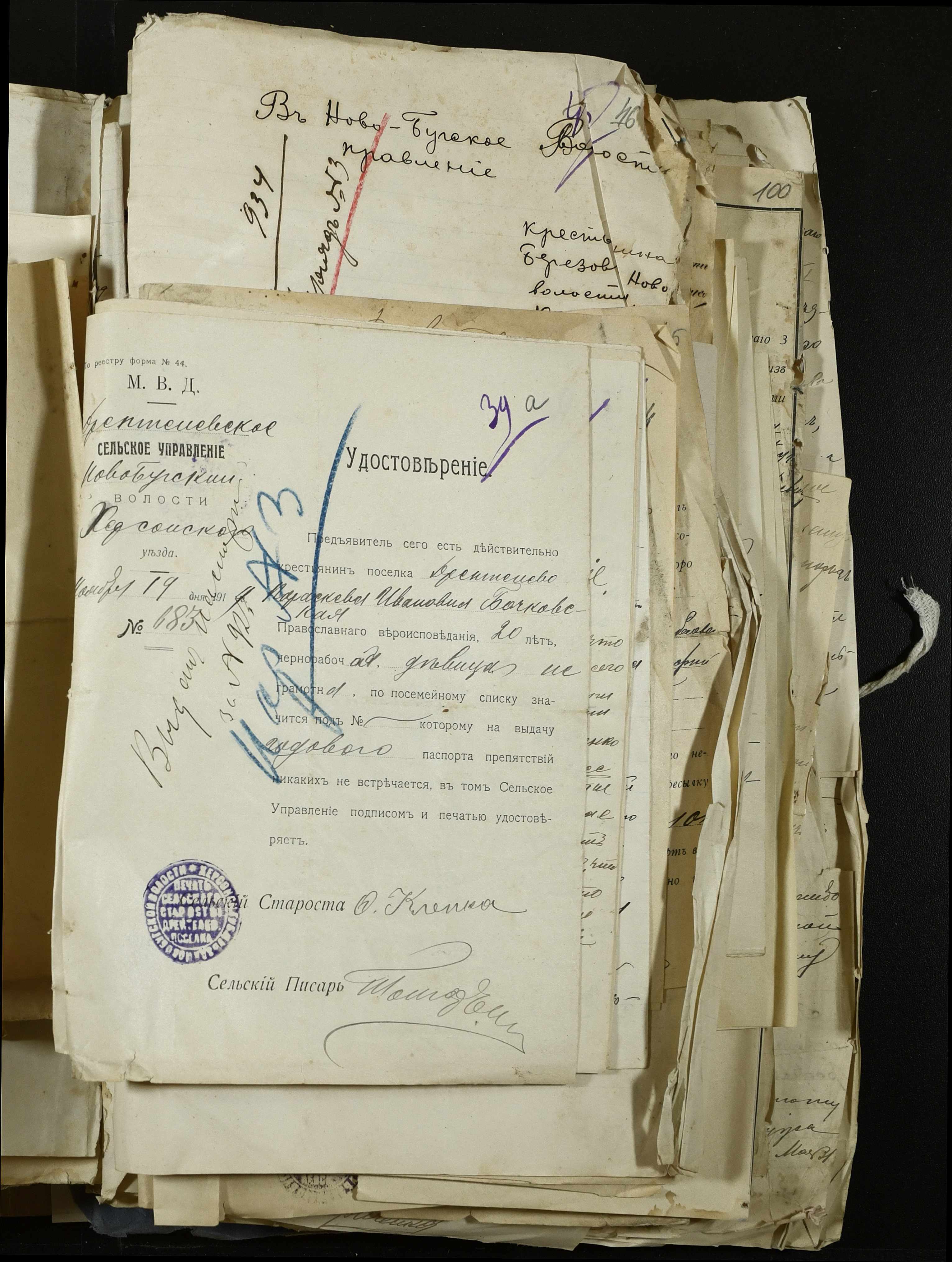 • • • • Справа № 135 “Рапорти сільських старост та посвідчення, видані ними громадянам на право отримання паспортів”