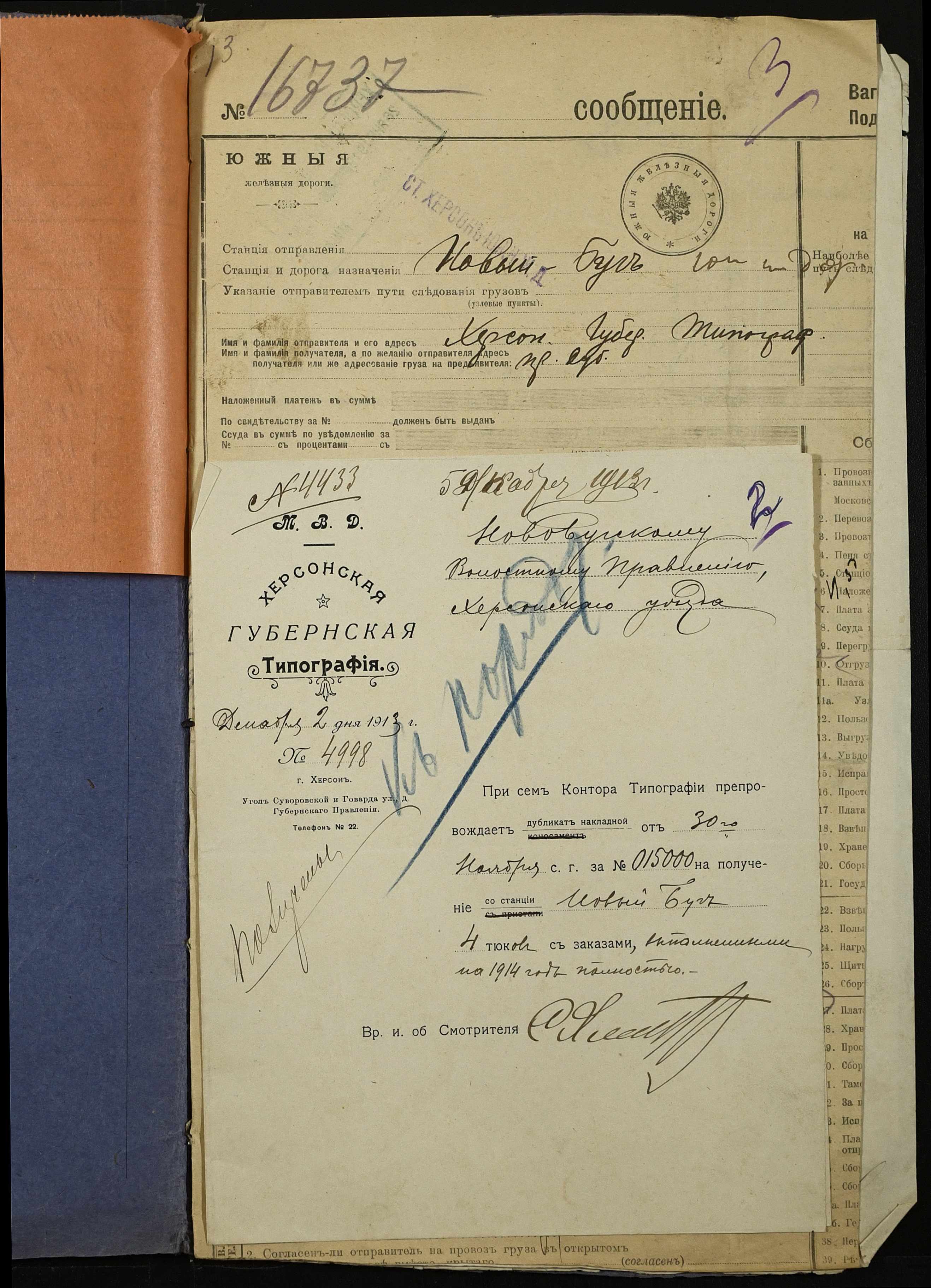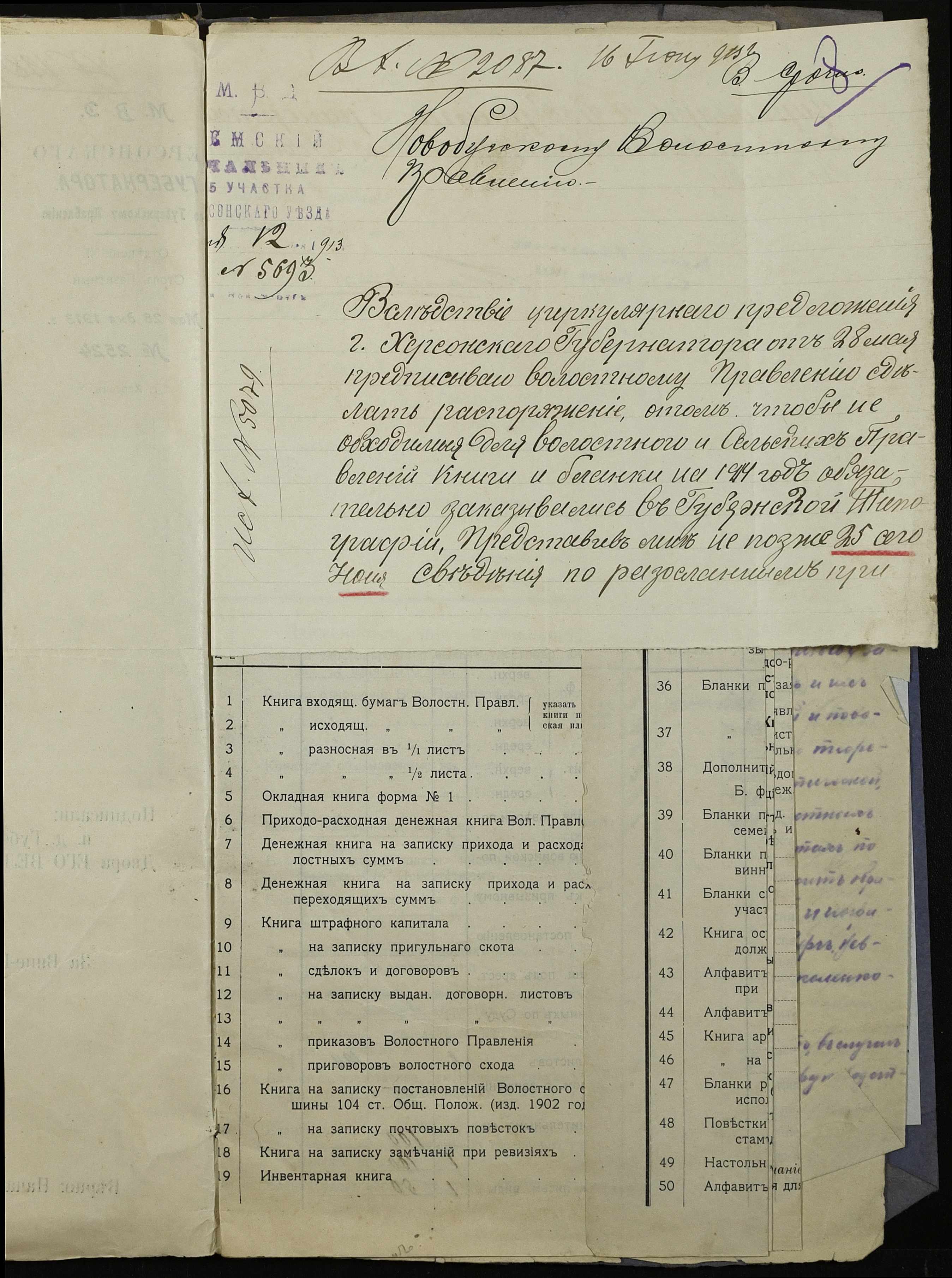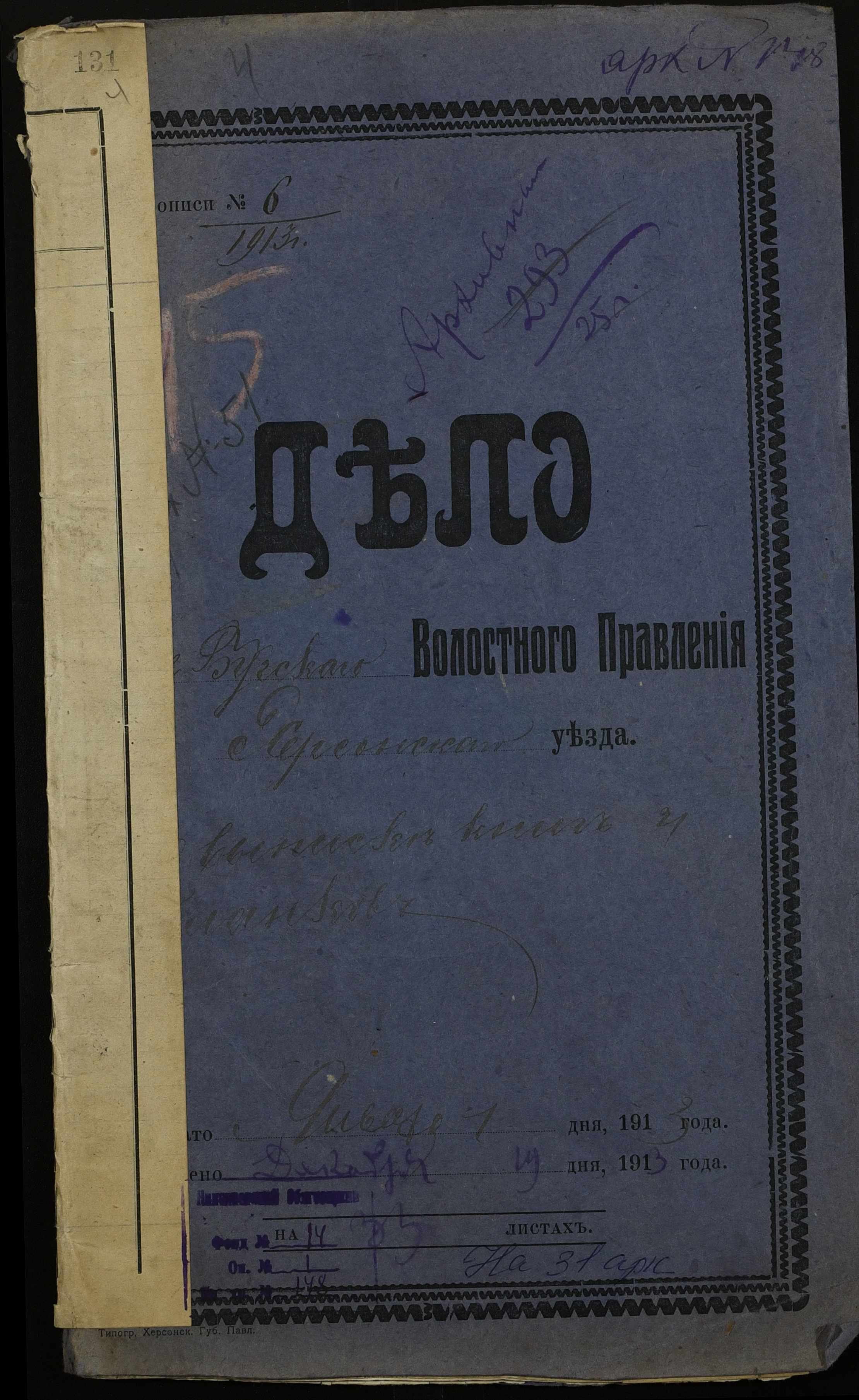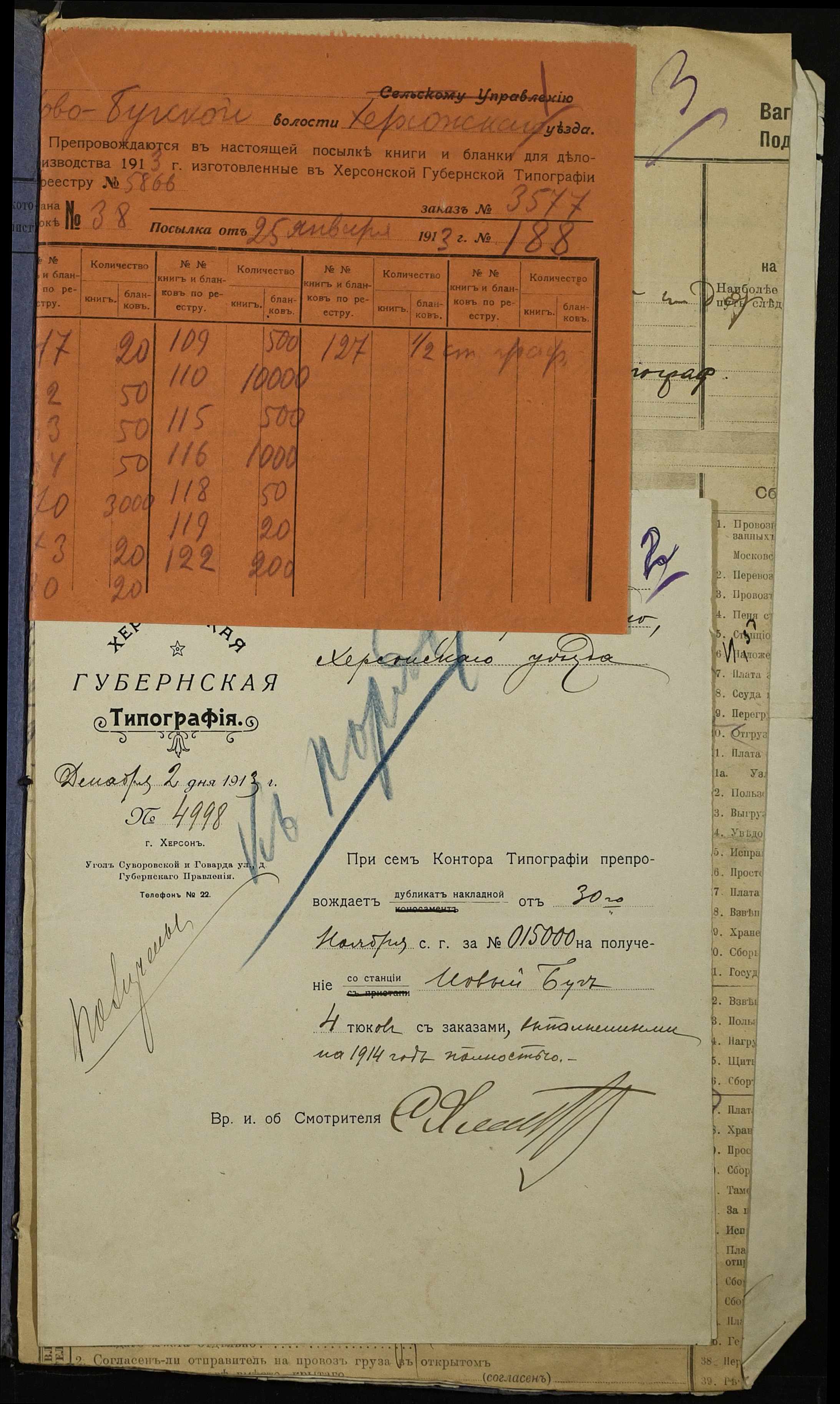 • • • • Справа № 148 “Листування з Херсонським земським начальником та губернською друкарнею про умови замовлення, строки друкування та пересилки конторських книг і бланків для волосного правління”
