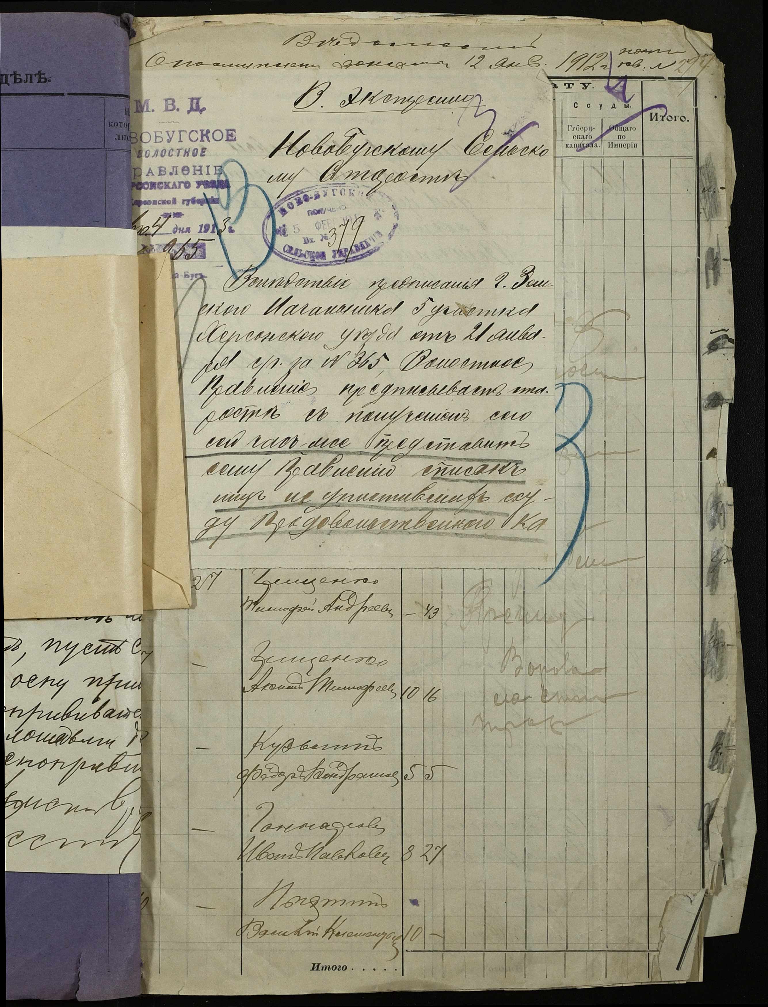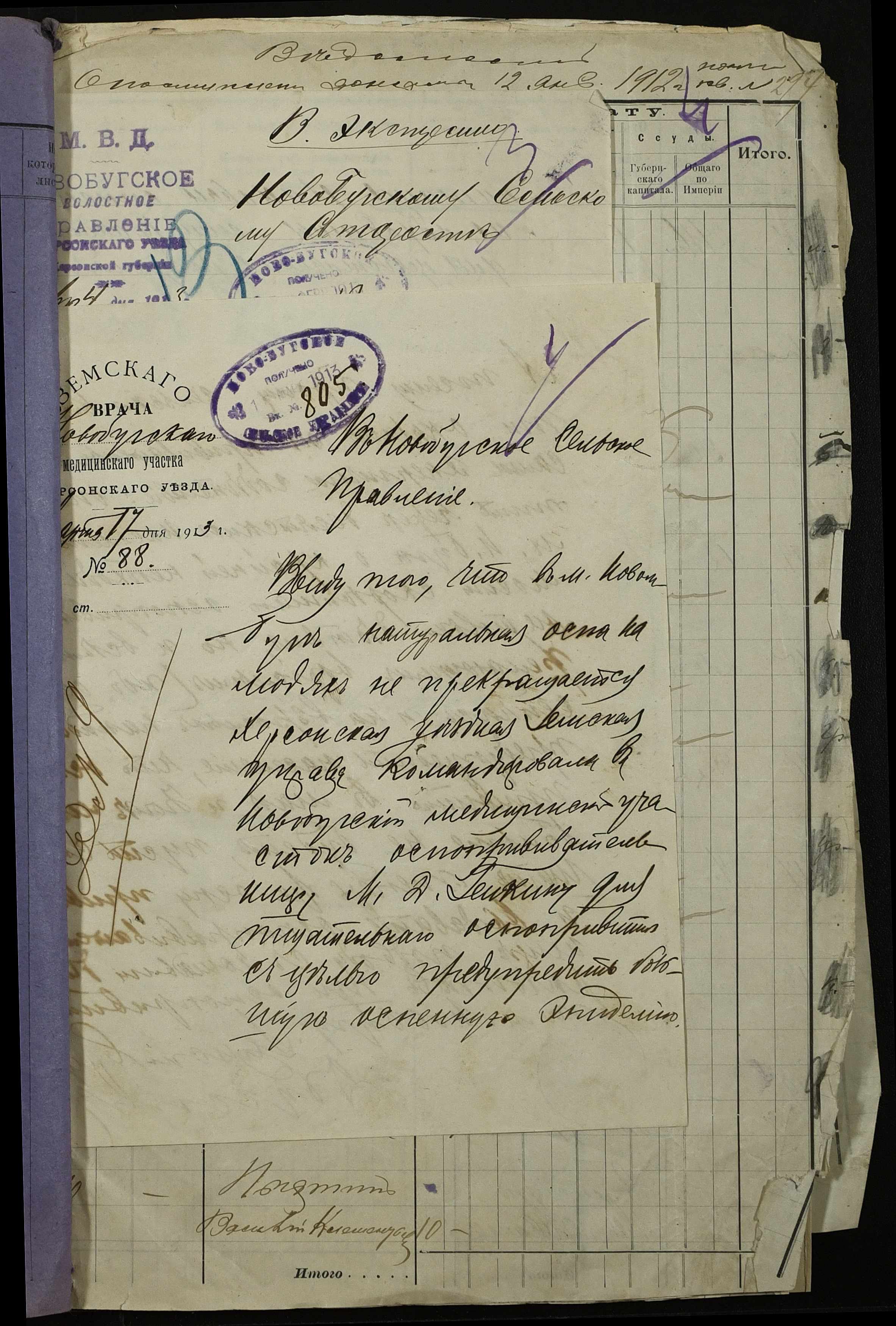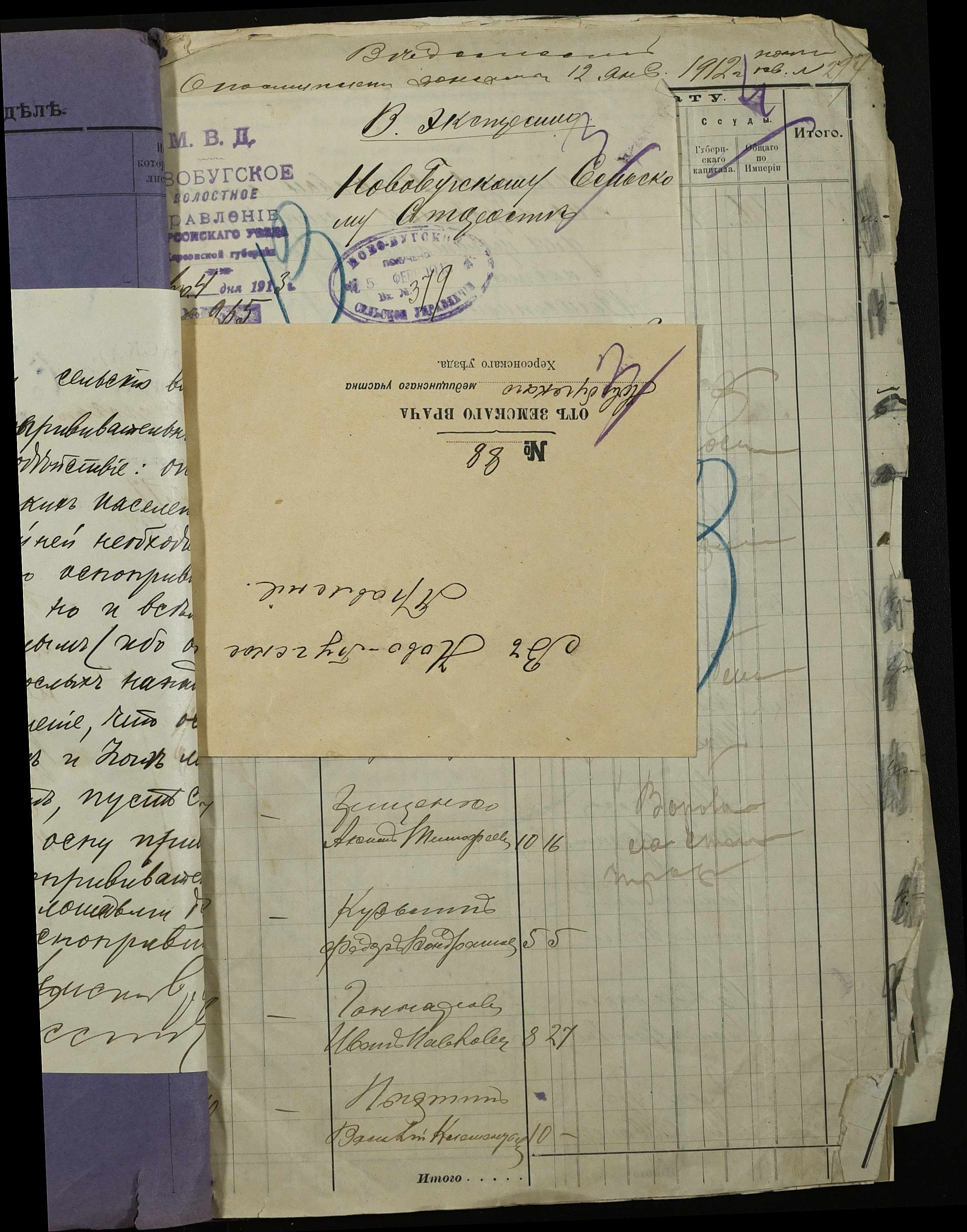• • • • Справа № 149 “Листування з земським лікарем Новобузької медичної дільниці про необхідність щеплень від віспи. Списки осіб, які не сплатили позику продовольчого капіталу. Витяг з рахунку Новобузького сільського товариства про розподіл прибутку за 1912 рік”