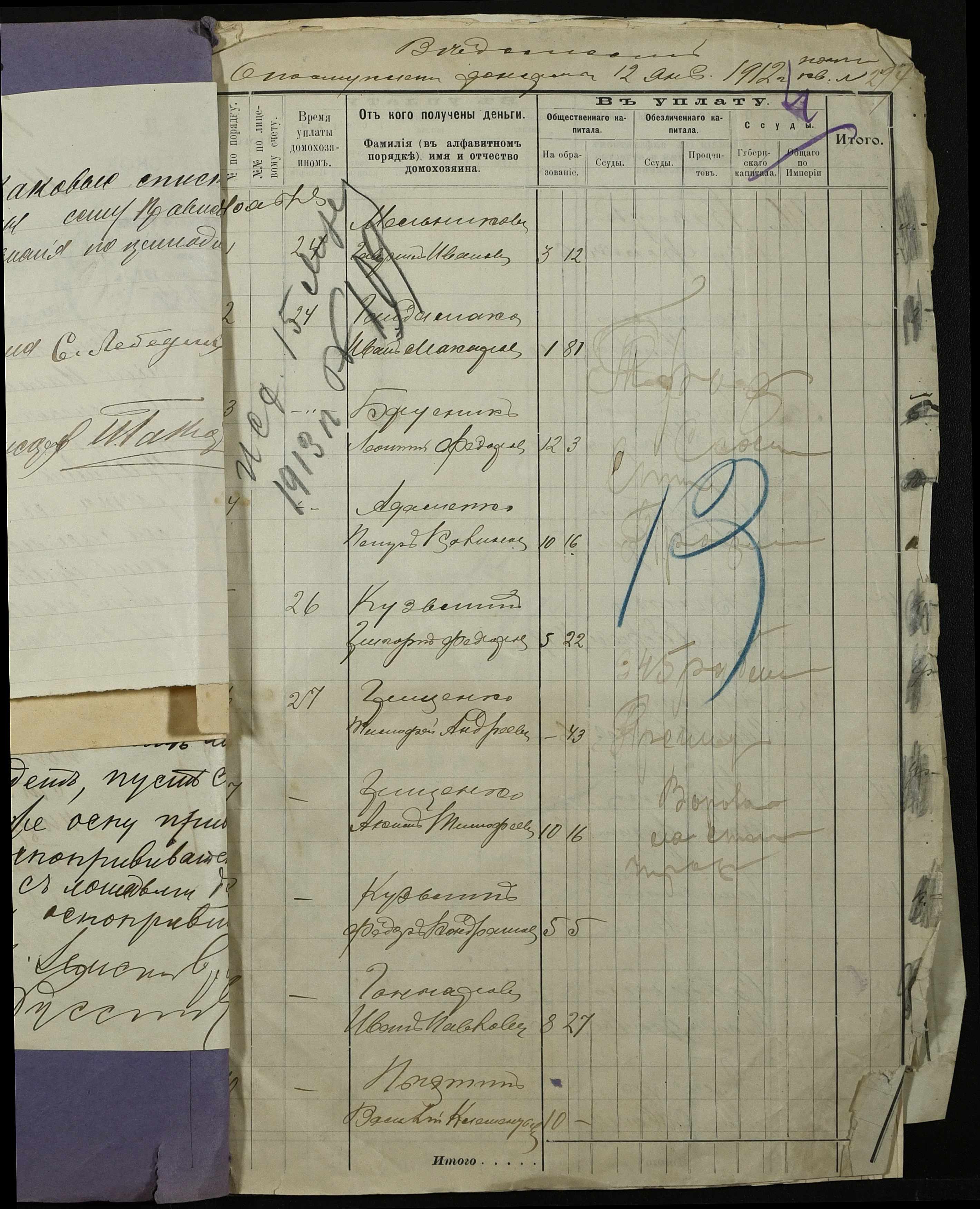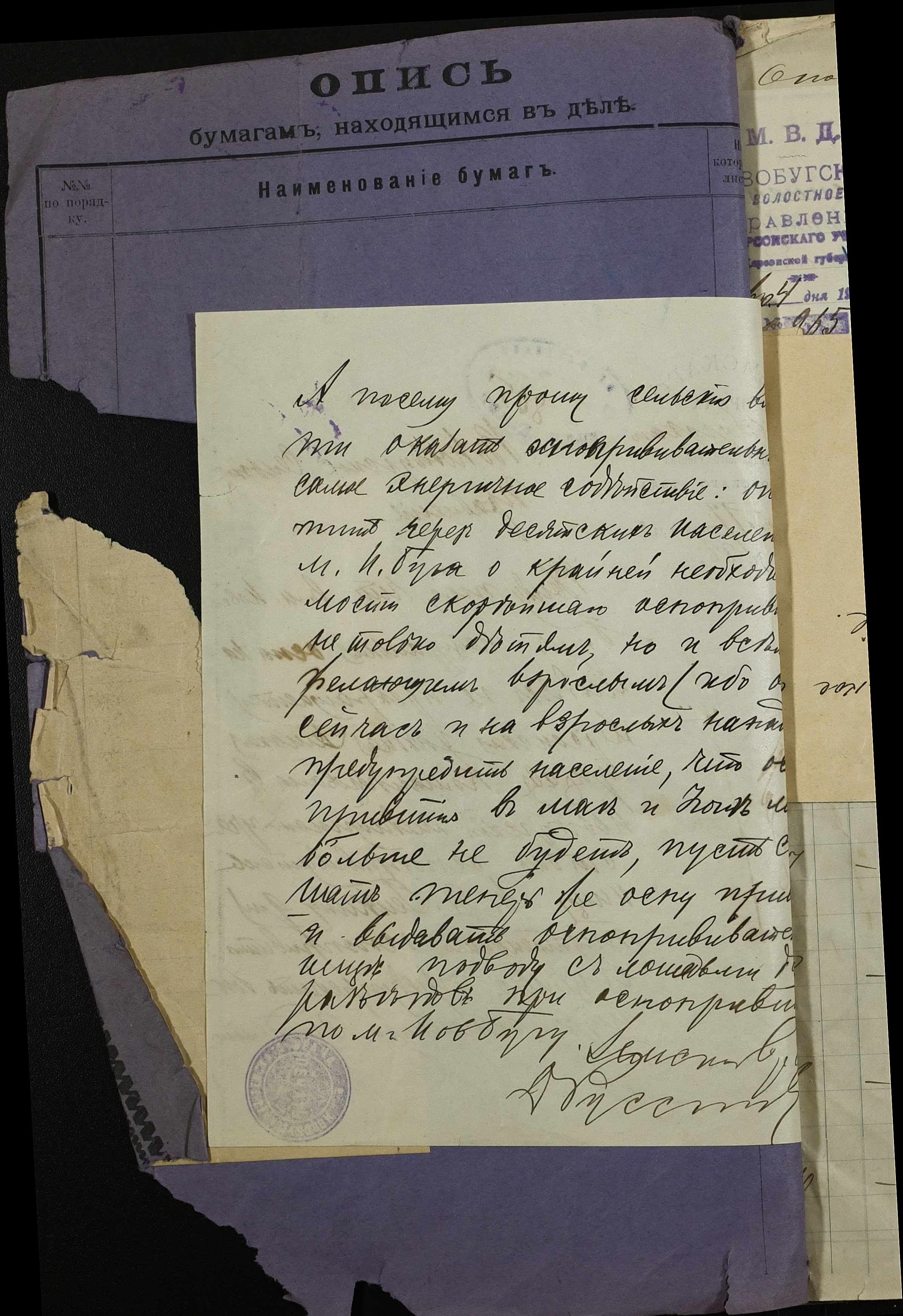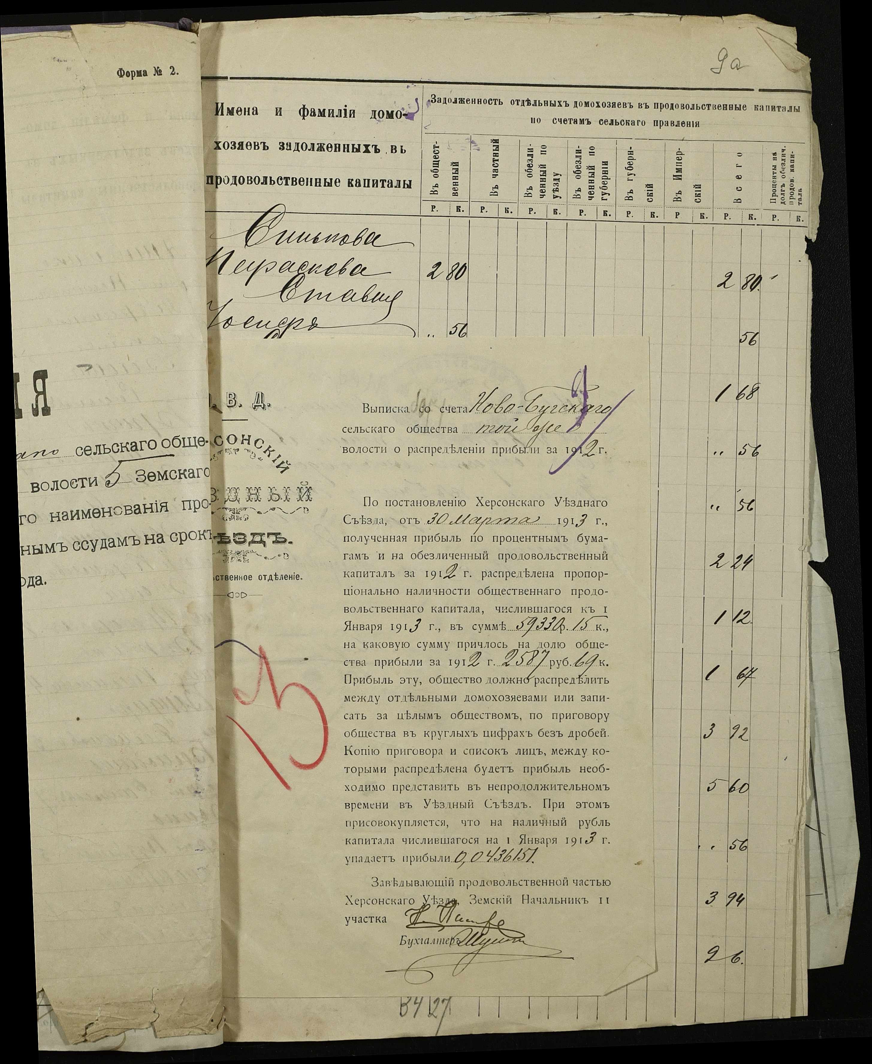 • • • • Справа № 149 “Листування з земським лікарем Новобузької медичної дільниці про необхідність щеплень від віспи. Списки осіб, які не сплатили позику продовольчого капіталу. Витяг з рахунку Новобузького сільського товариства про розподіл прибутку за 1912 рік”