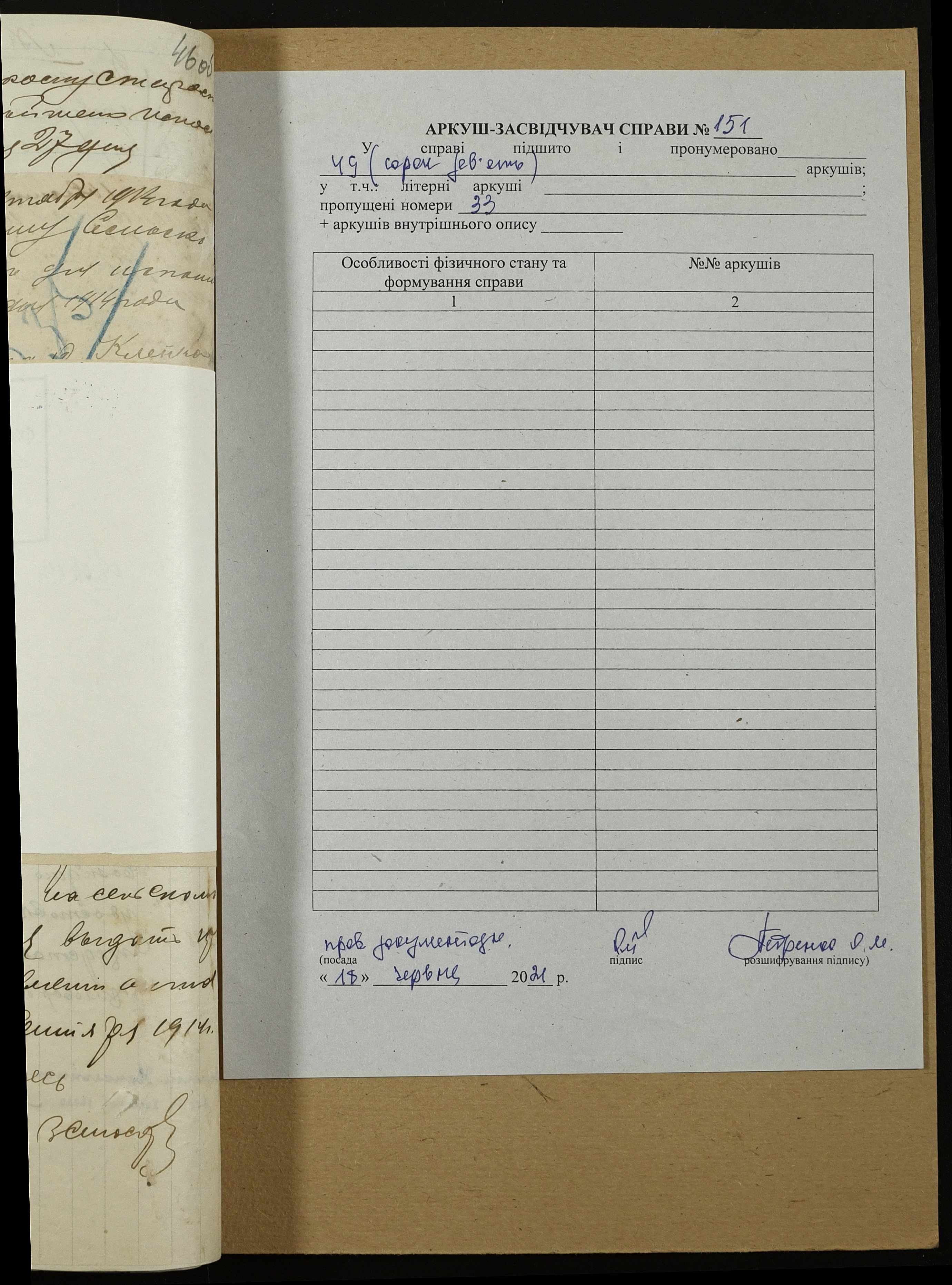 • • • • Справа № 151 “Відомості про наявність у волості надільних земель станом на 01 липня 1913 року, листування з сільськими старостами про порядок та строки надання реєстраційних списків землекористувачів, про порядок надання селянам документів на право володіння надільною землею”