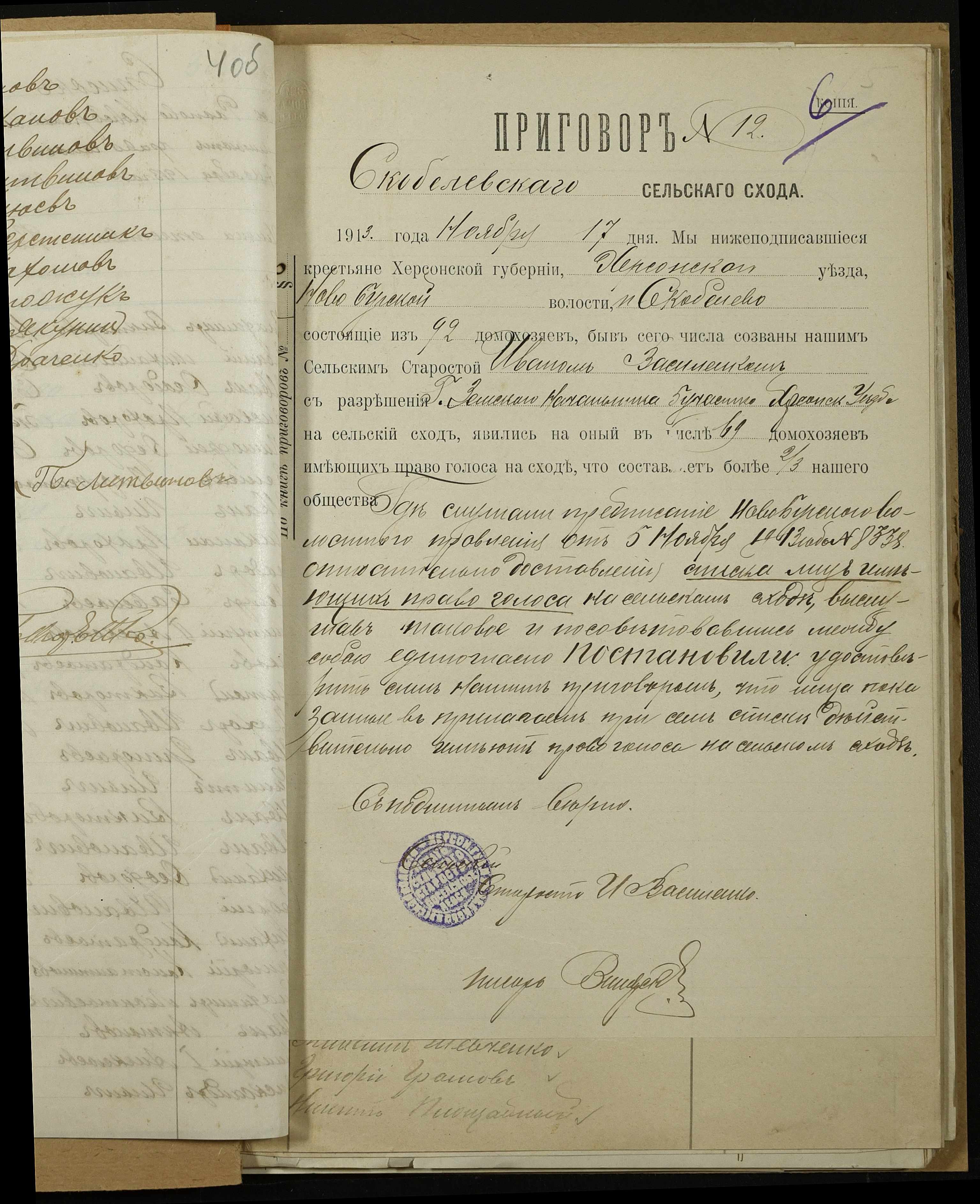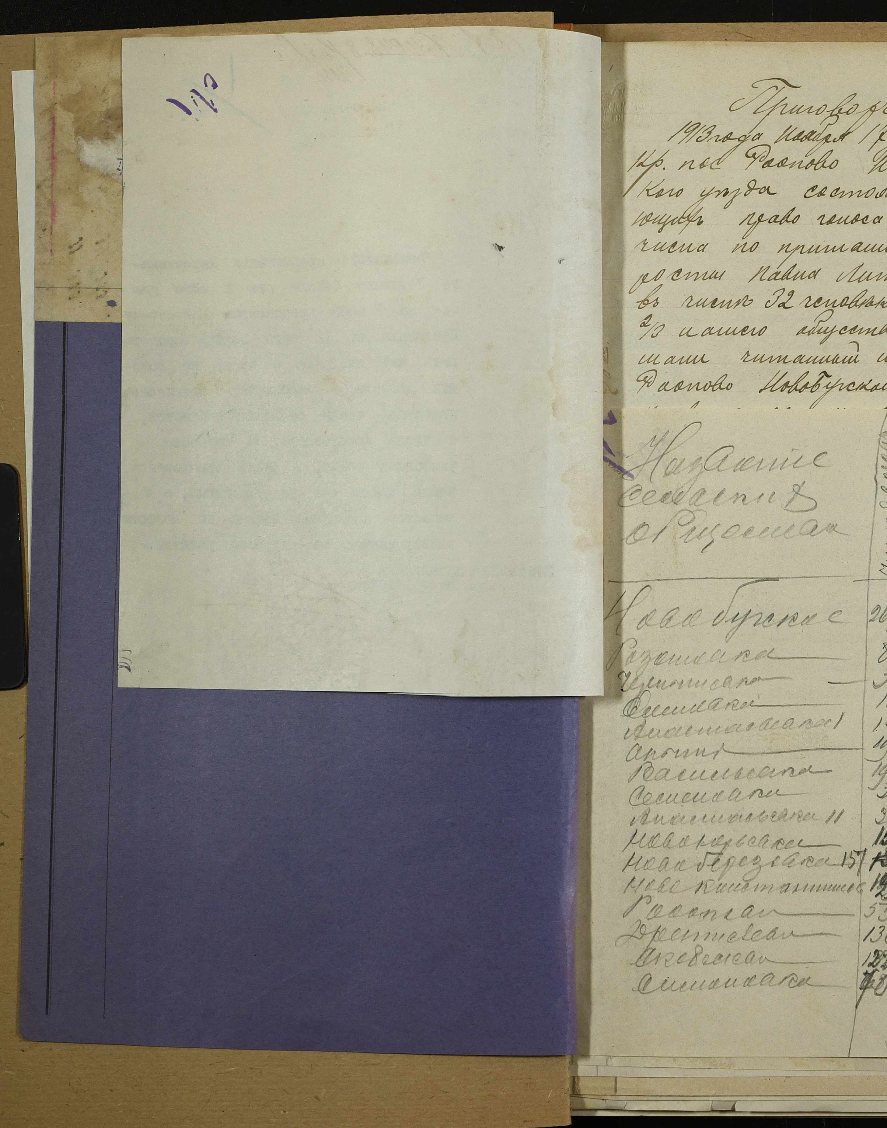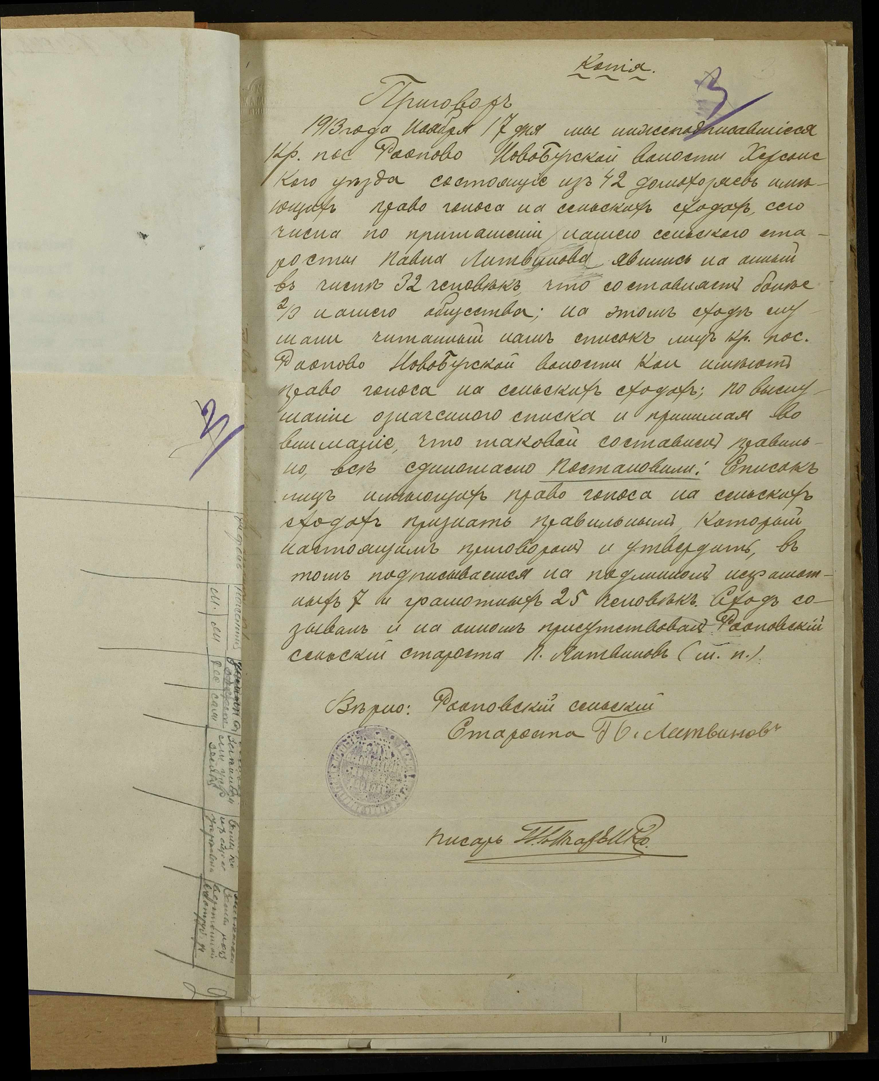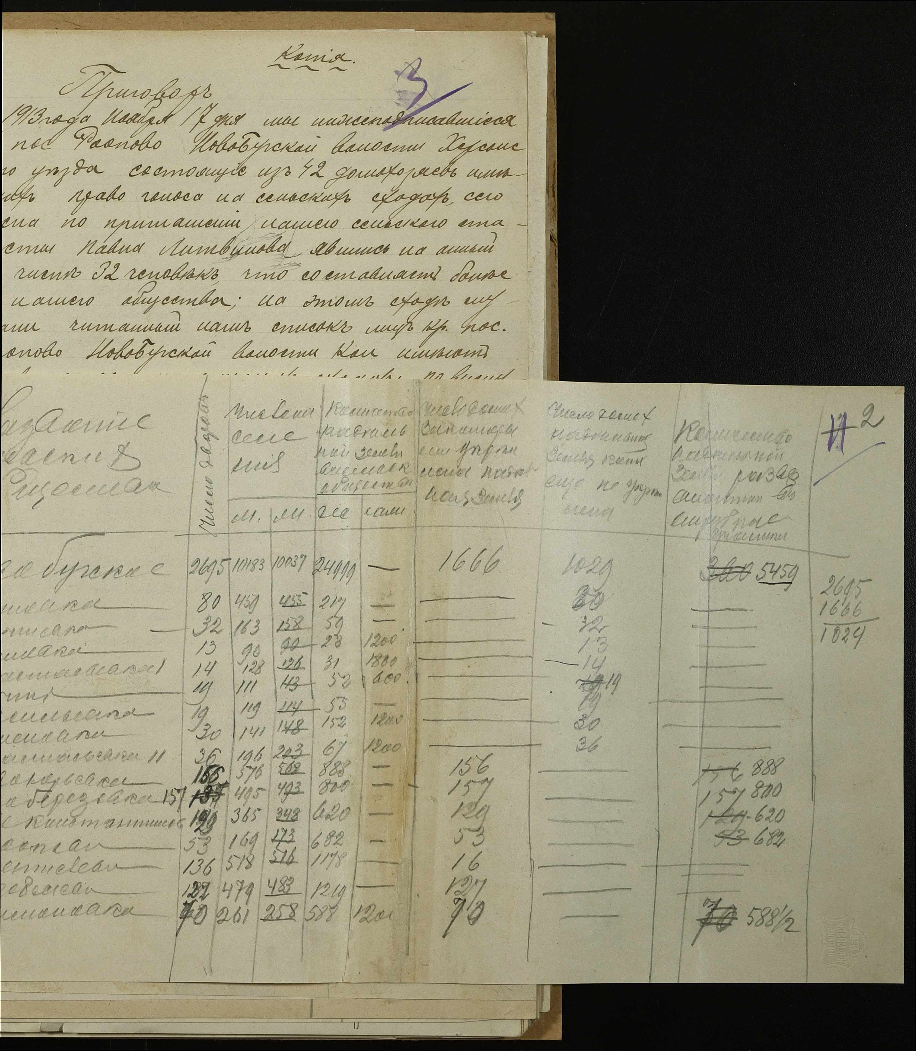 • • • • Справа № 152 “Присуди сільських сходів про затвердження списків осіб, які мають право голосу на сходах, відомості про чисельність у волості дворів, населення; про кількість надільної та відрубної землі”