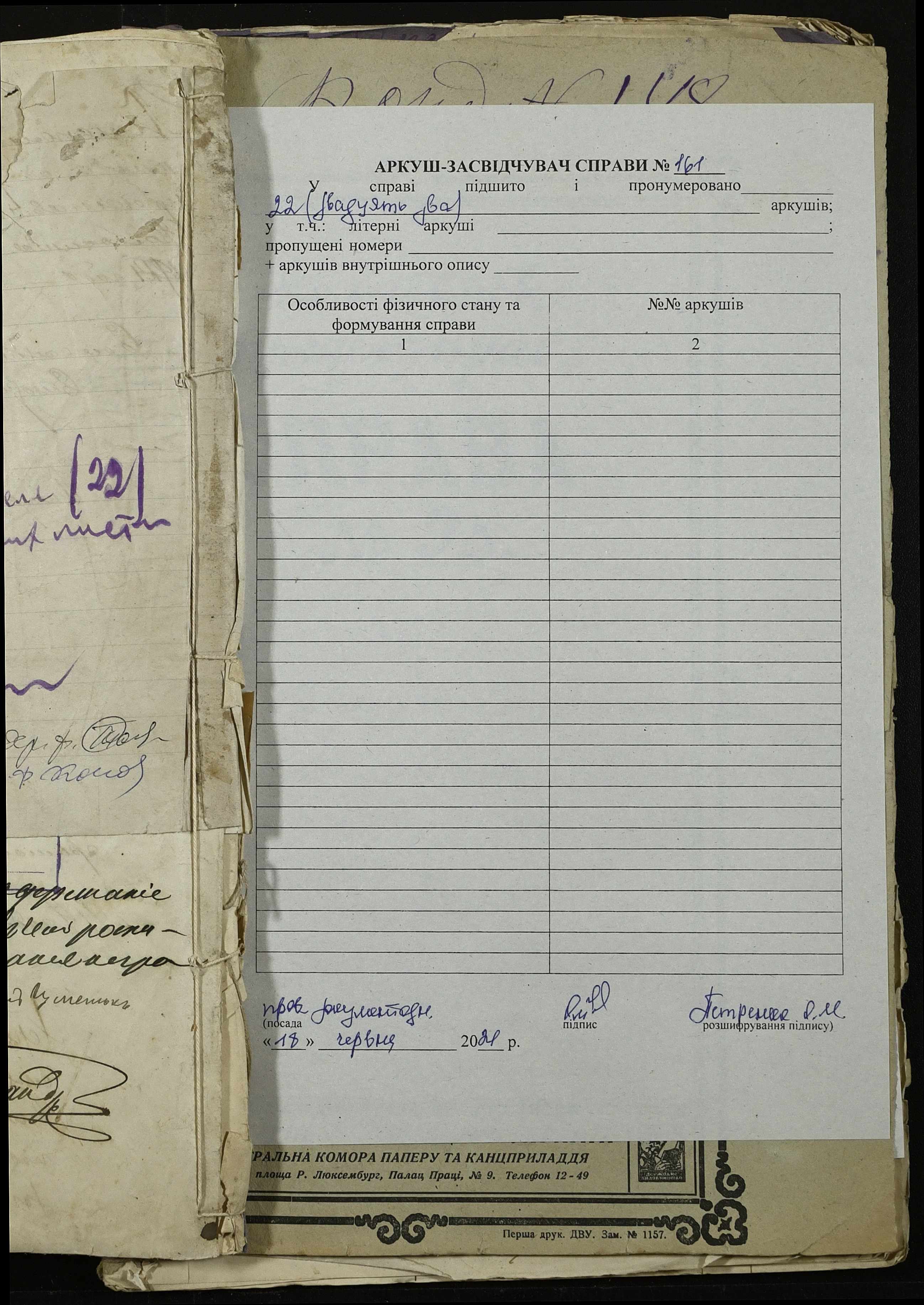 • • • • Справа № 161 “Обіжники Херсонського повітового з військової повинності присутствія та волосного правління про надання списків військовозобов’язаних запасу та ратників, списки осіб, які перебувають в запасі та покликаних по мобілізації на війну 1914 року”