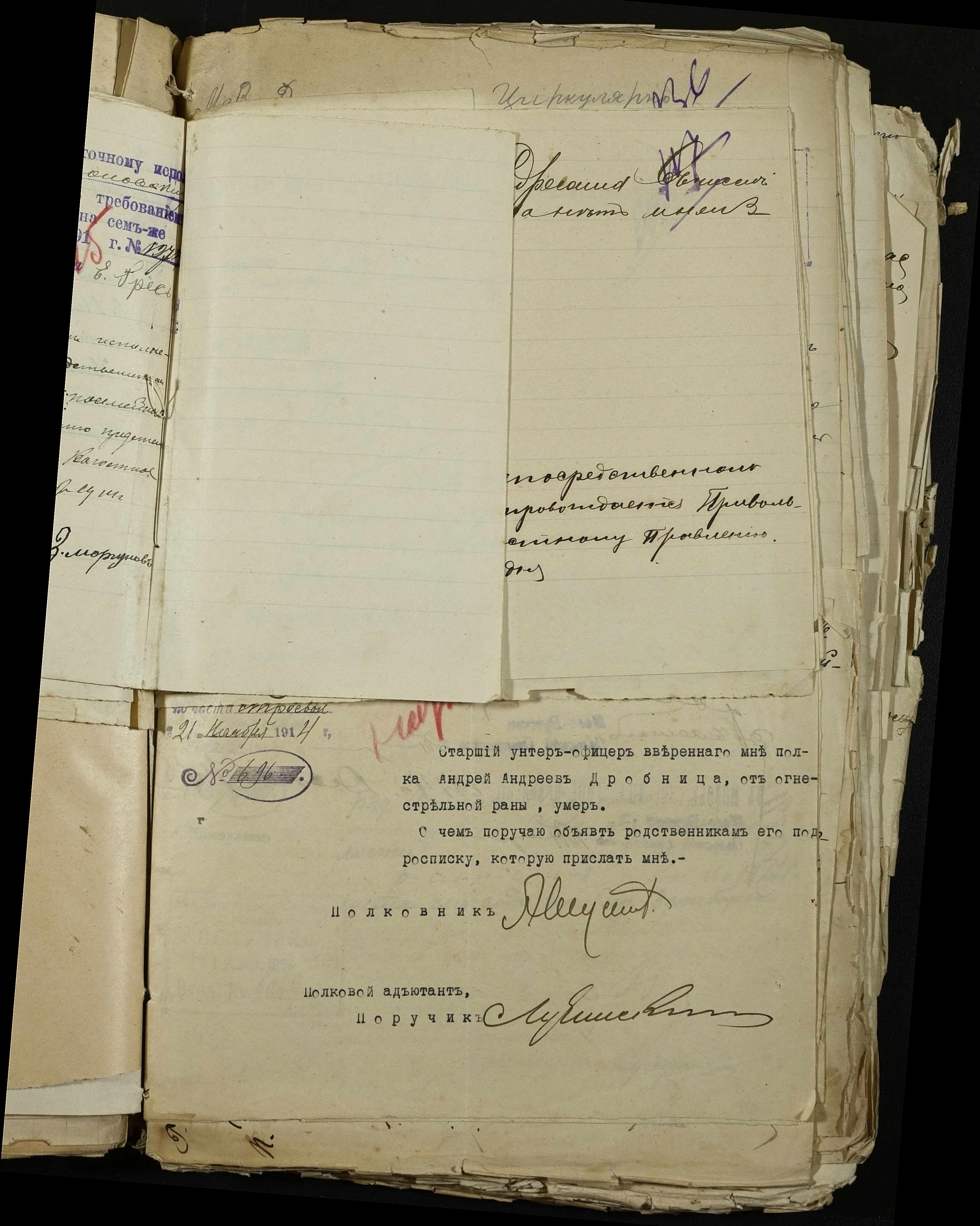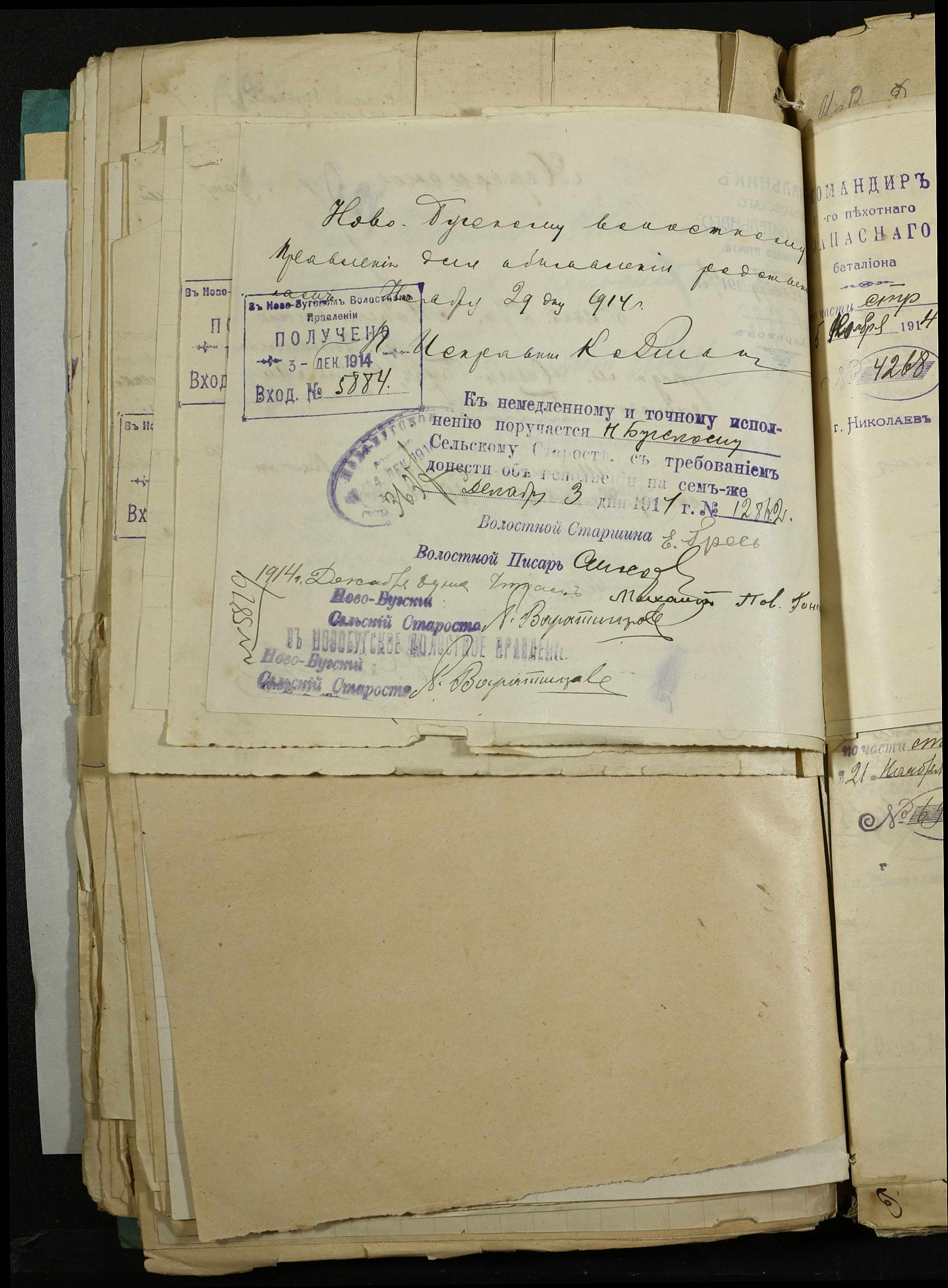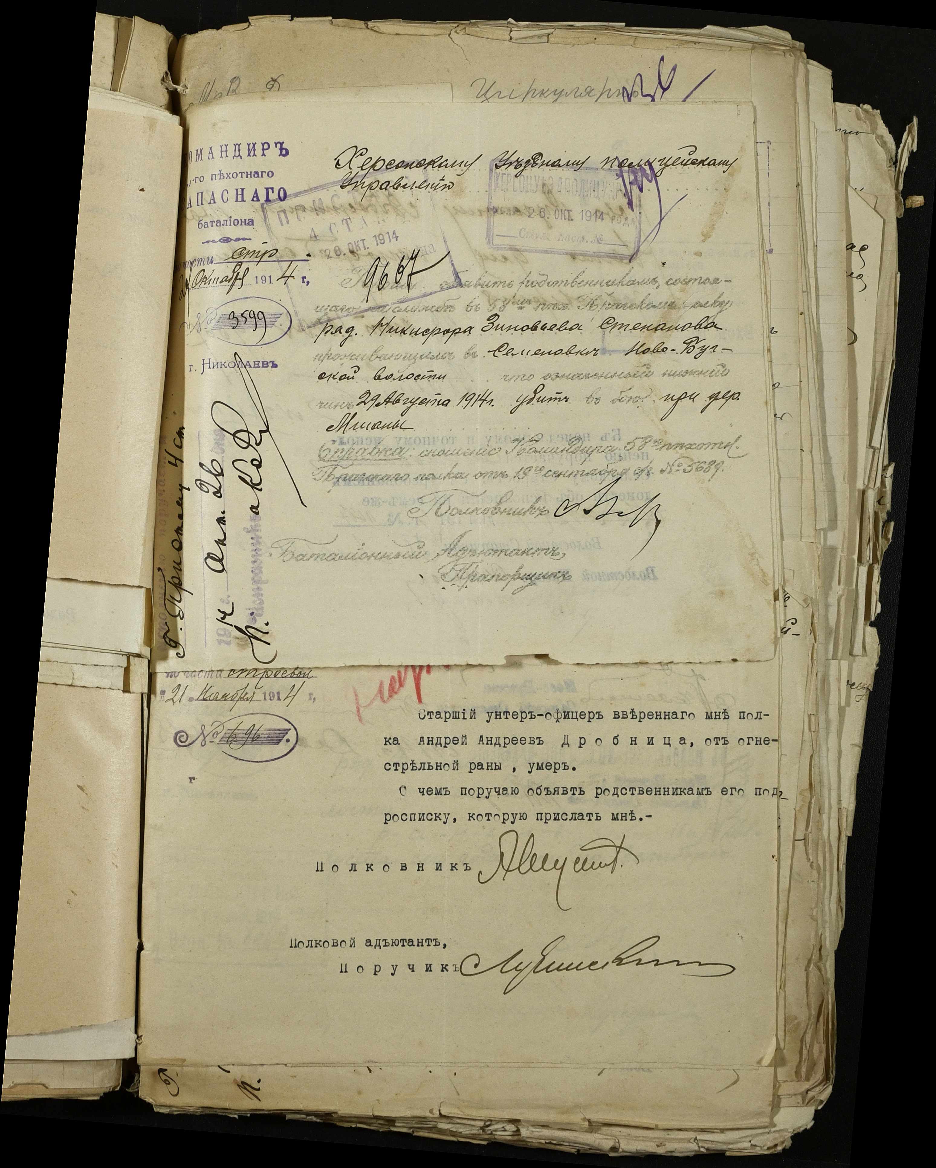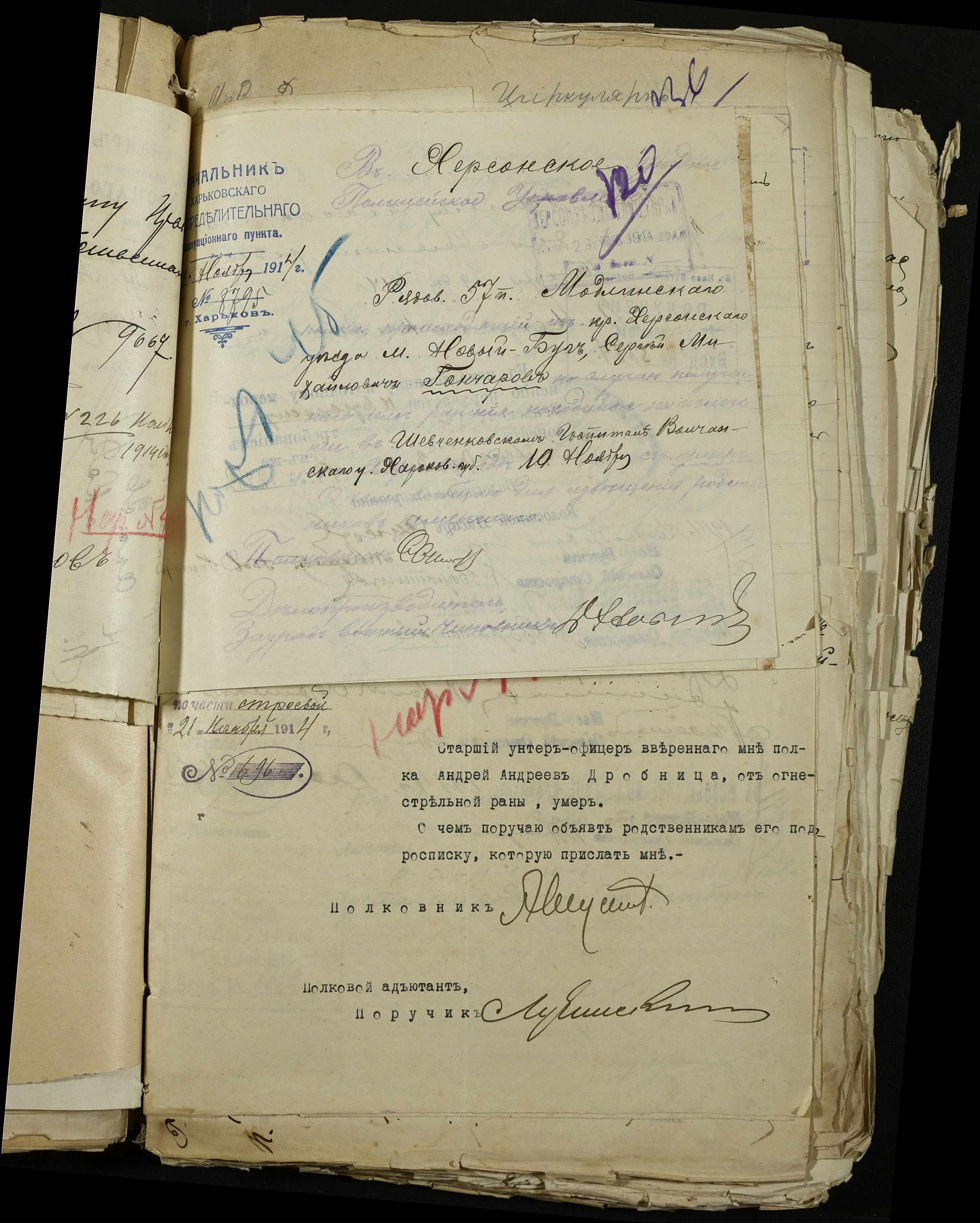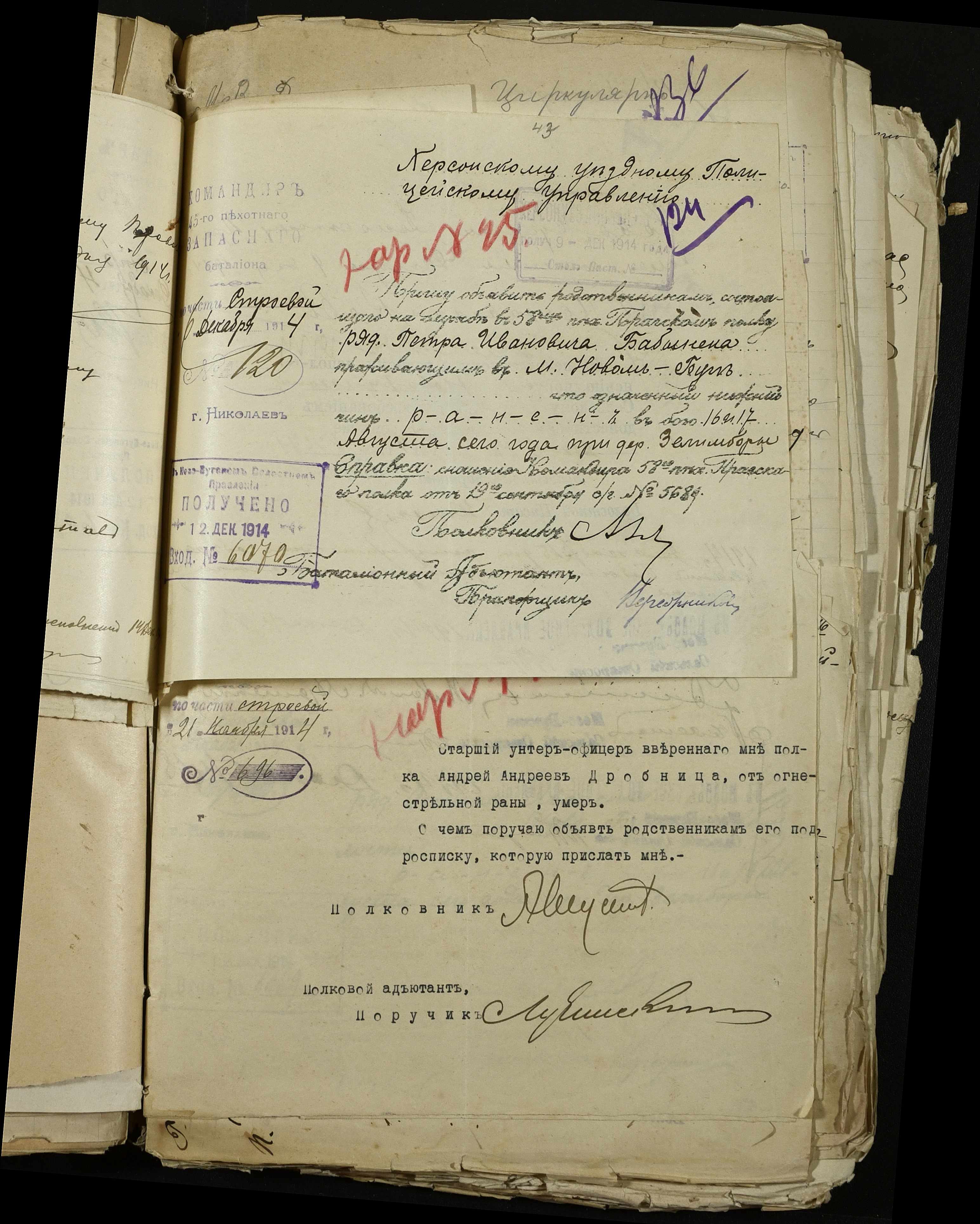 • • • • Справа № 163 “Розпорядження дільничного земського начальника Херсонського повіту, листування з ним та сільськими старостами про порядок обліку та розміщення до лікувальних закладів поранених, що прибувають з фронту, відомості про поранених та повідомлення на вбитих воїнів, покликаних із волості”