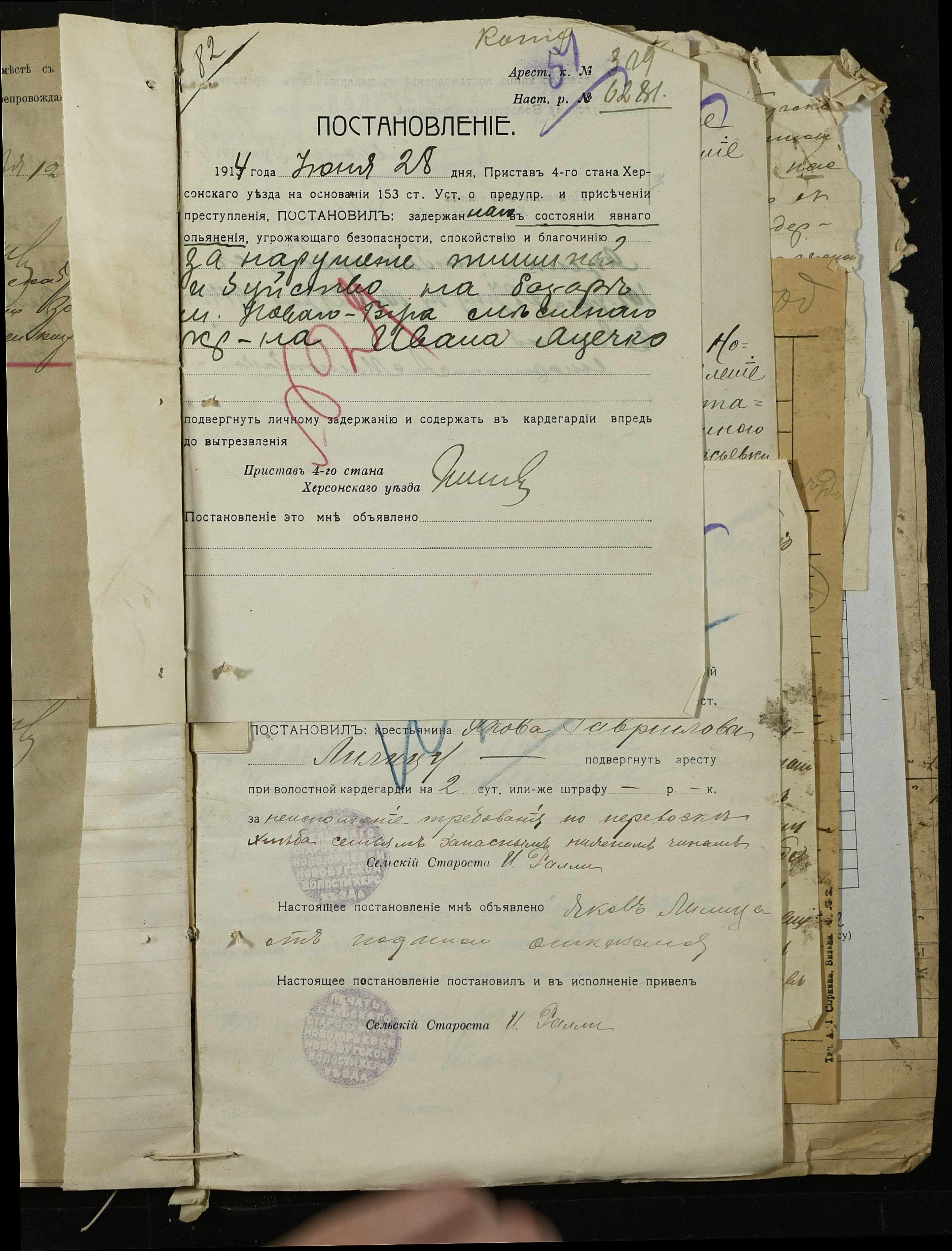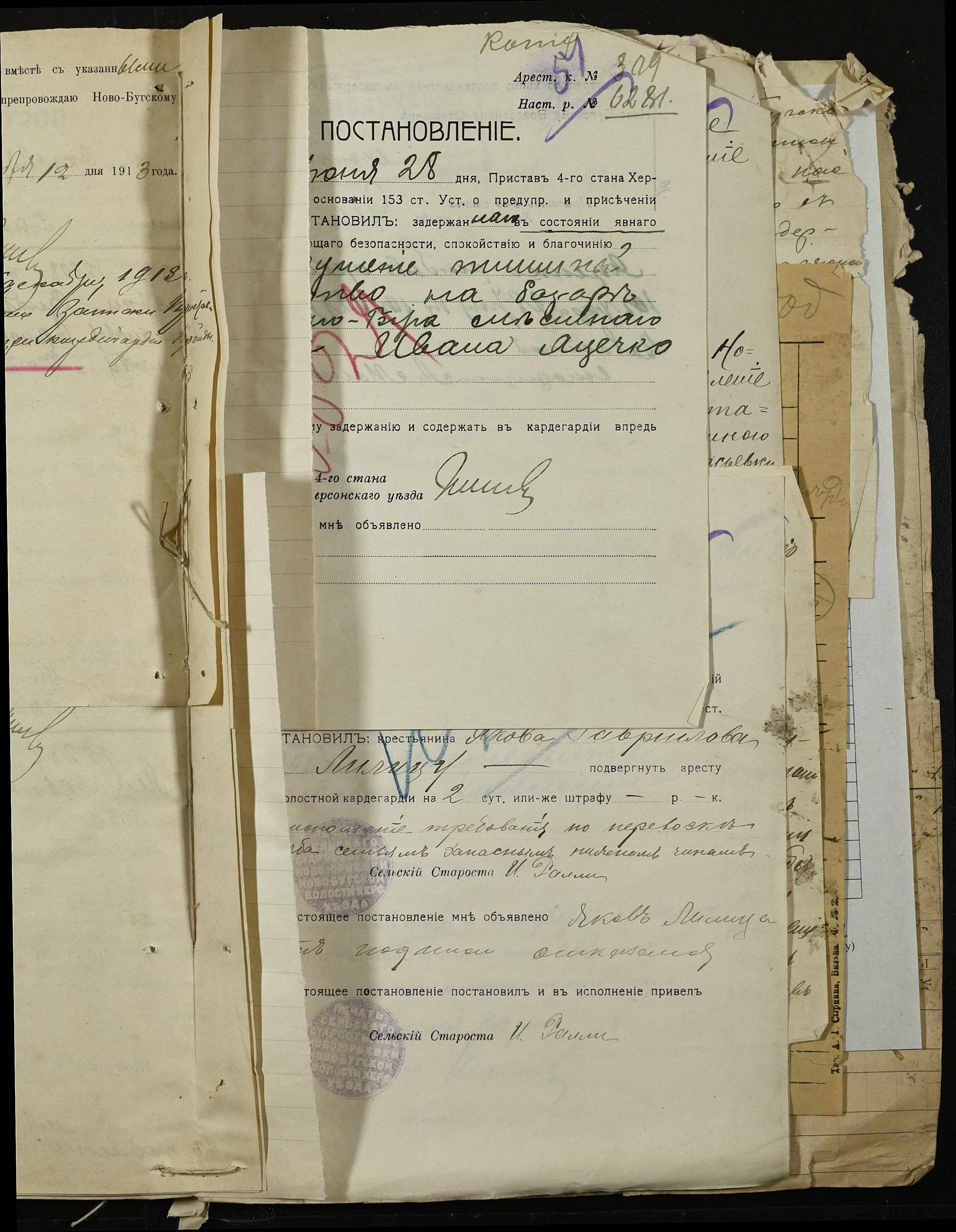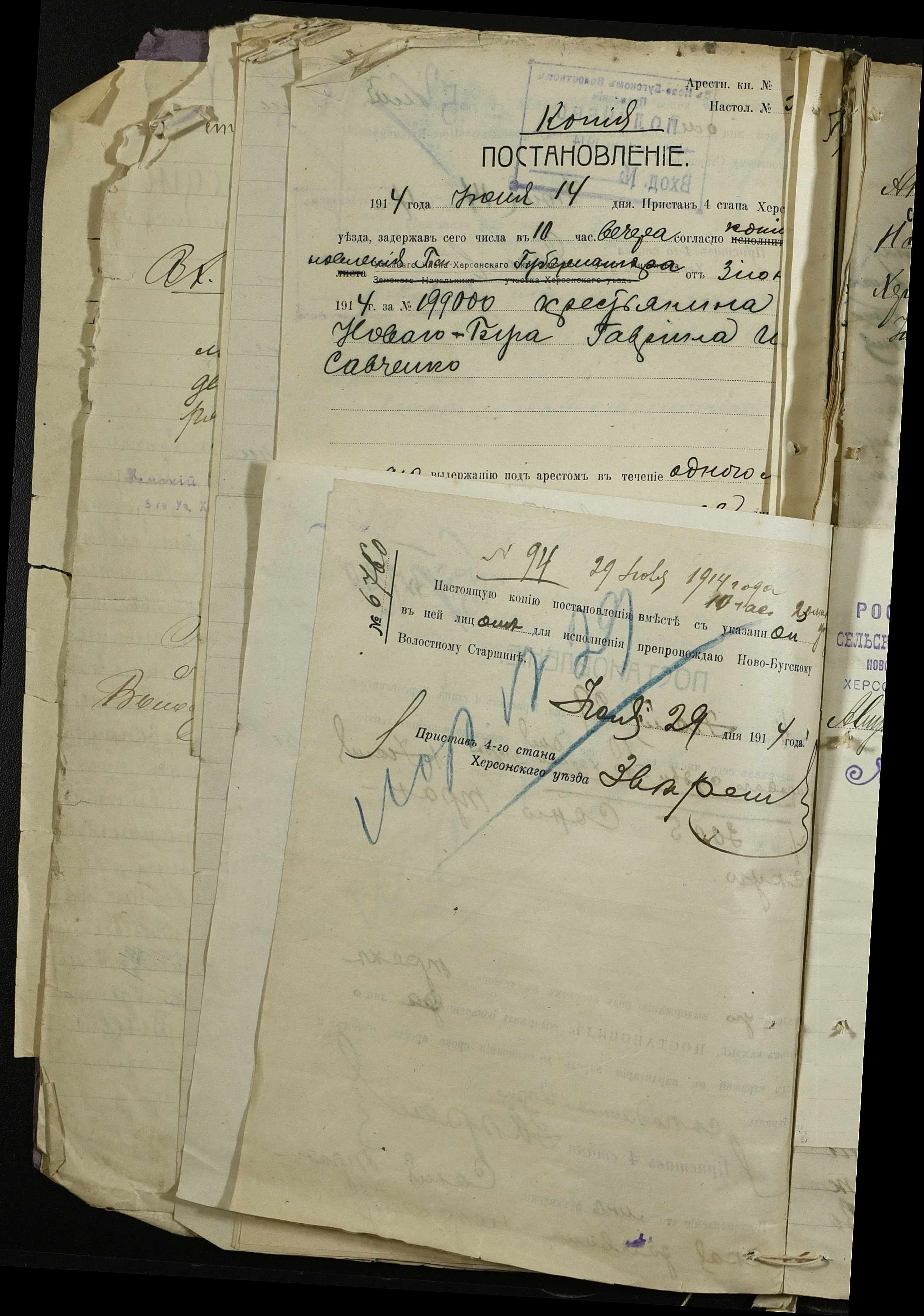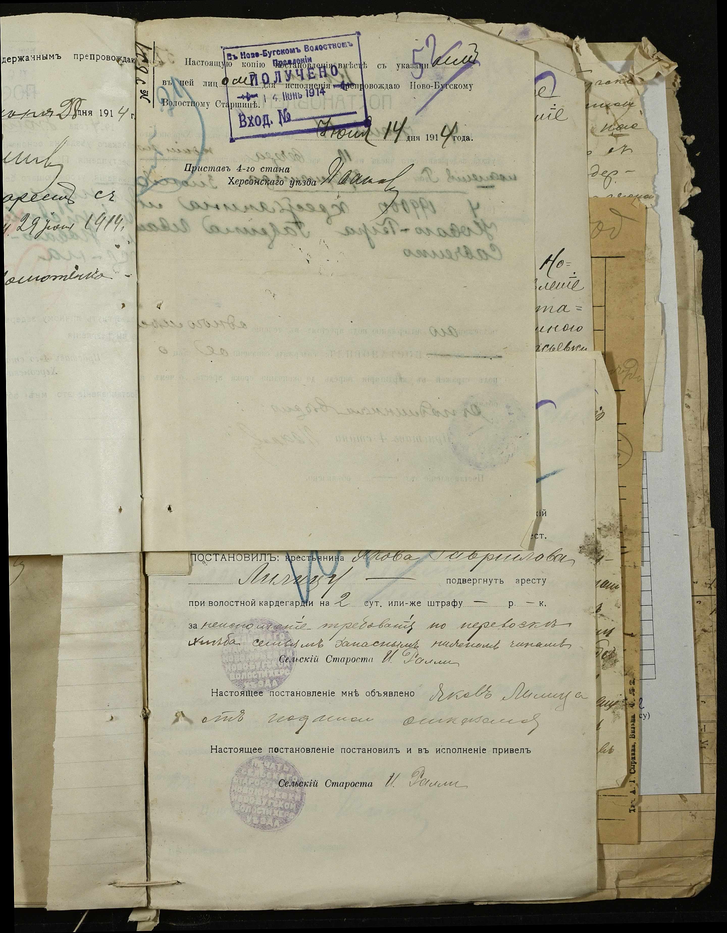 • • • • Справа № 169 “Постанови та рапорти сільського старости м. Новий Буг про арешти та утримання під вартою селян за образу посадових осіб, відмову від виконання різних повинностей”