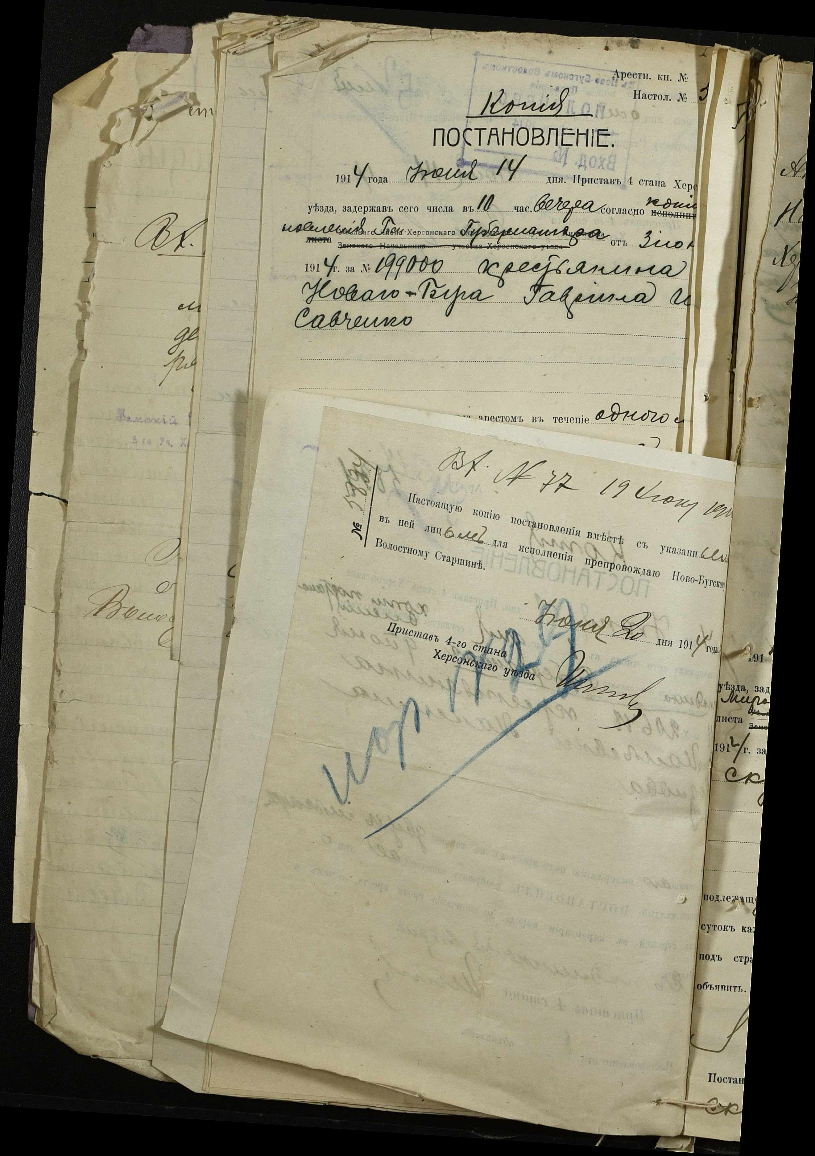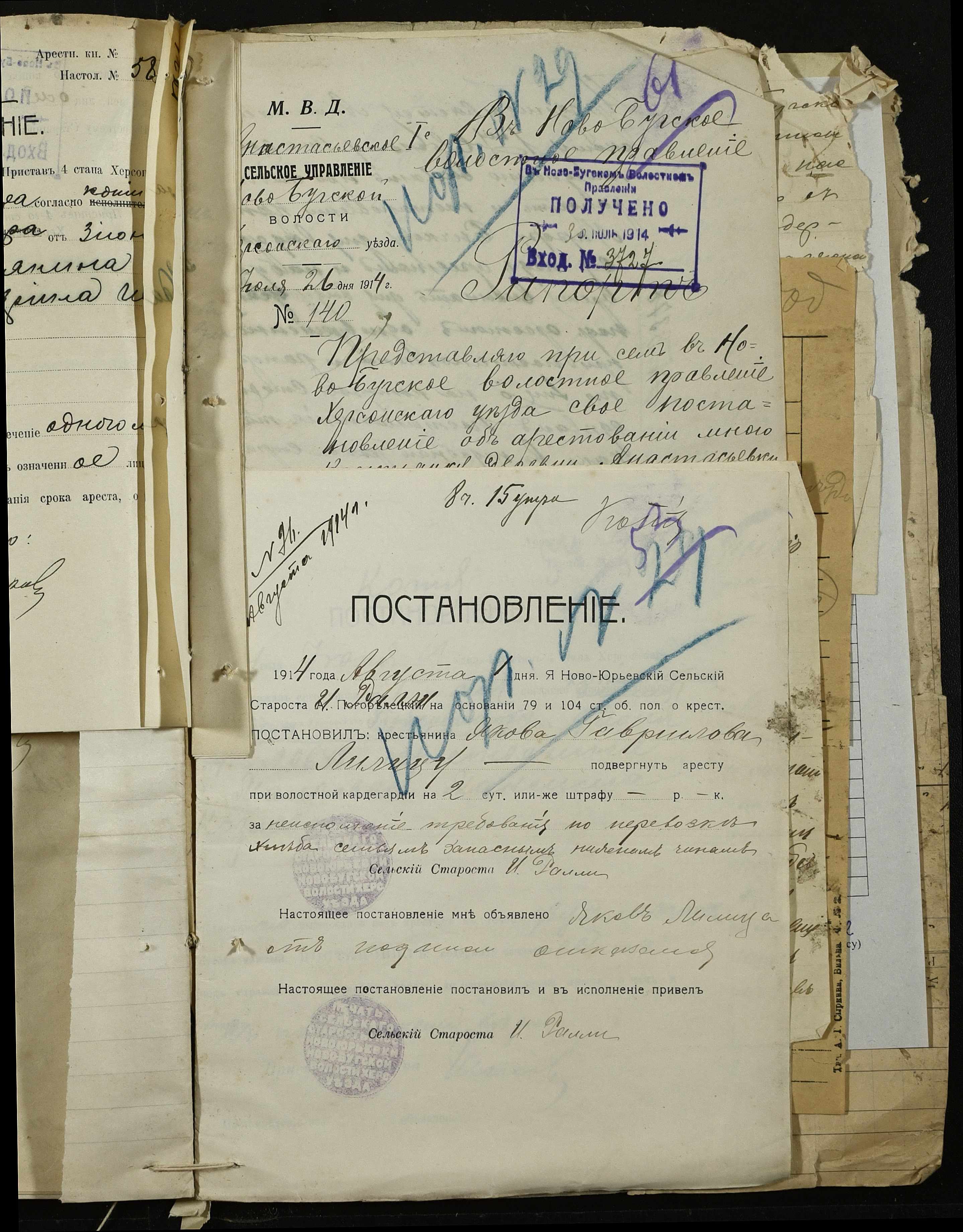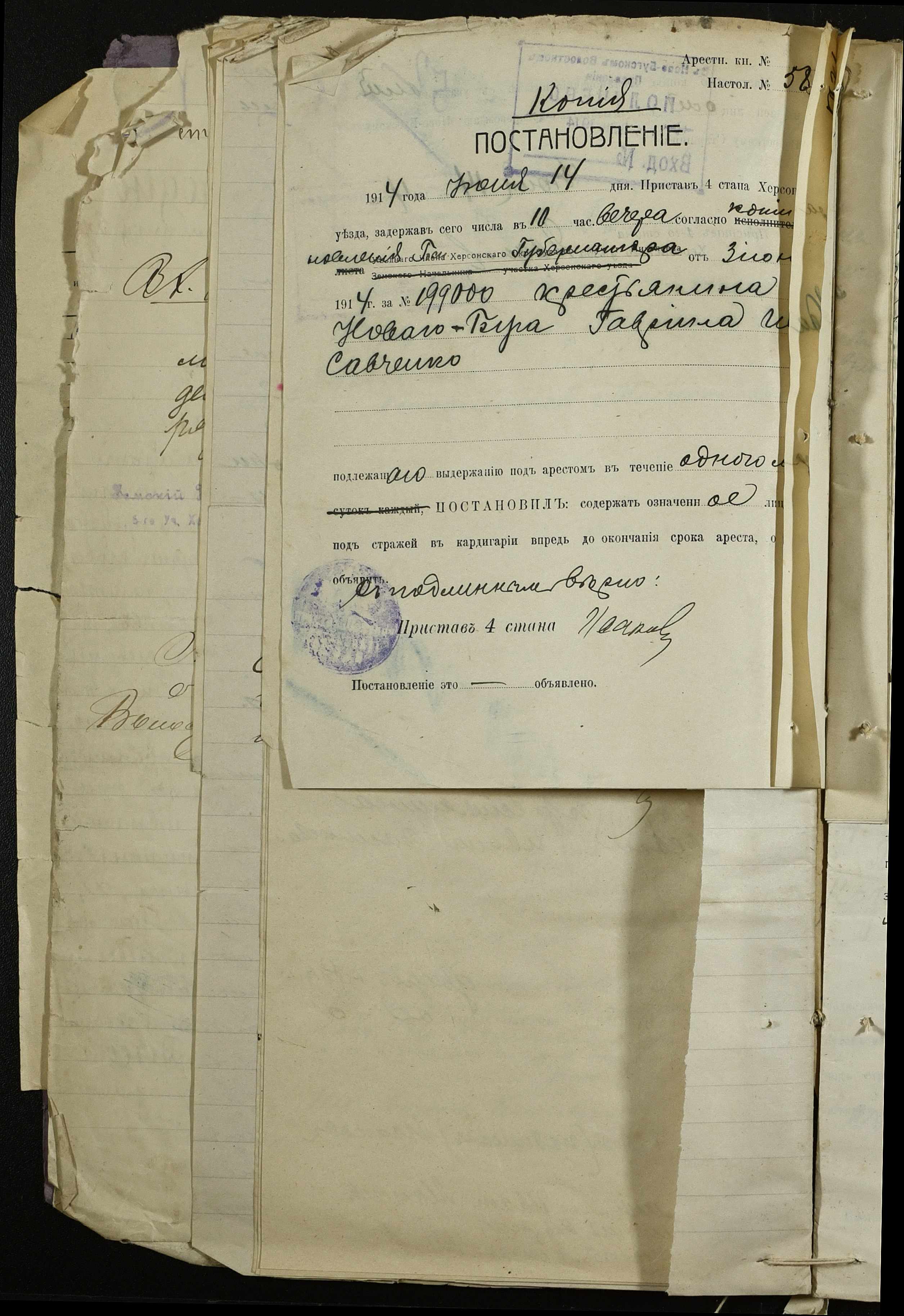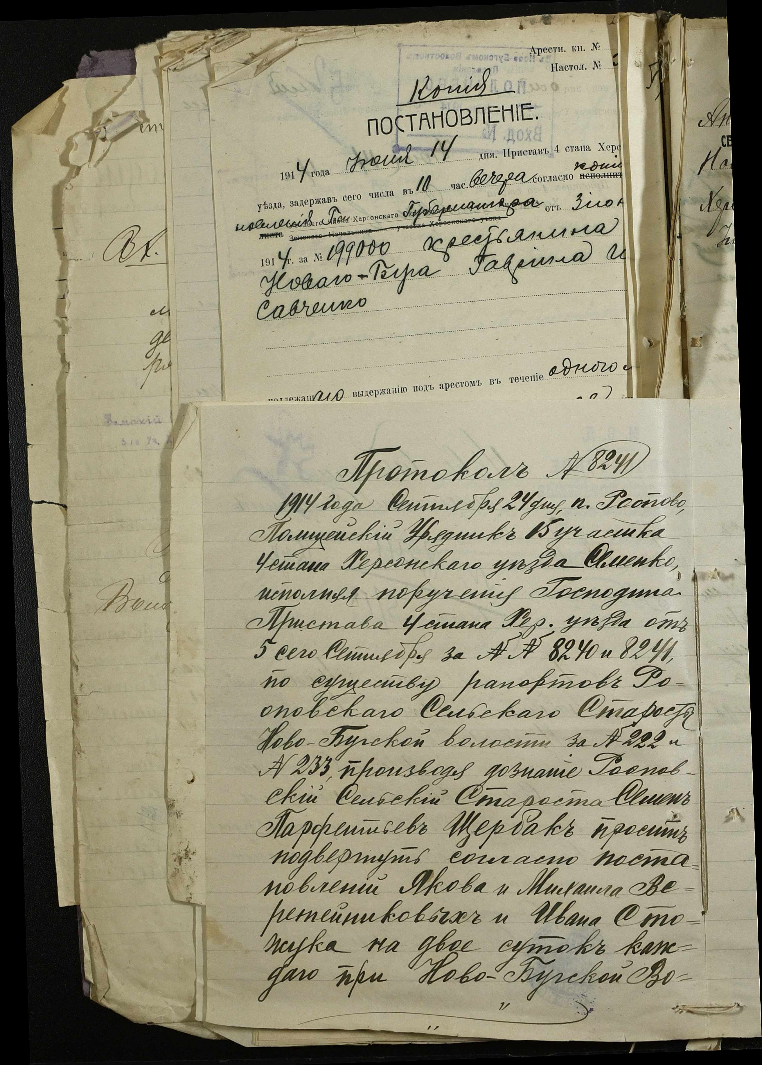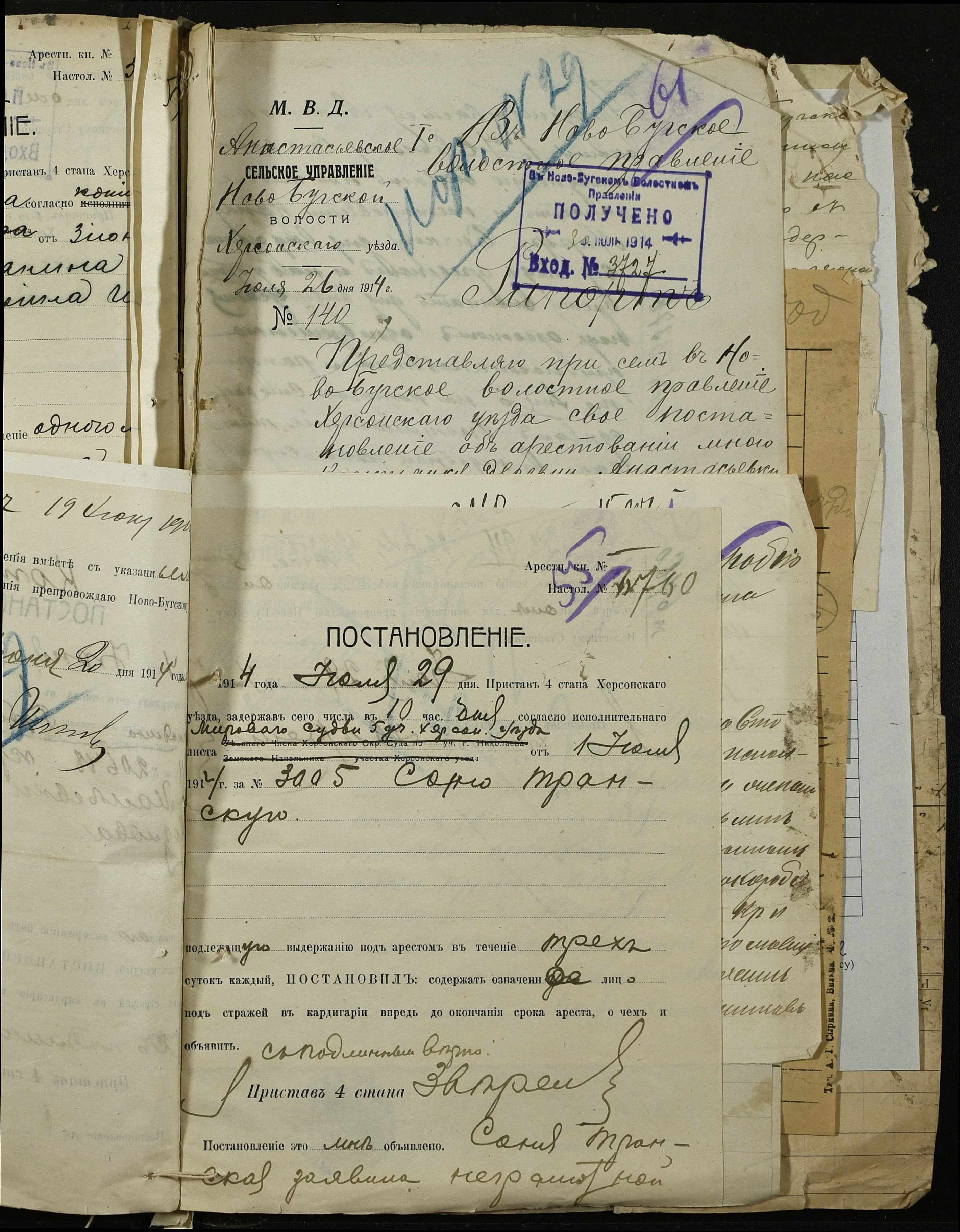 • • • • Справа № 169 “Постанови та рапорти сільського старости м. Новий Буг про арешти та утримання під вартою селян за образу посадових осіб, відмову від виконання різних повинностей”